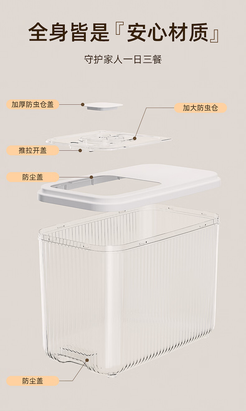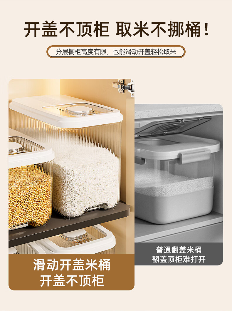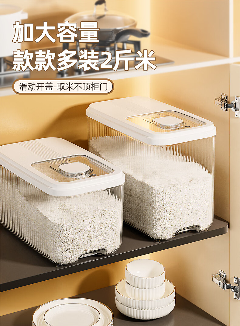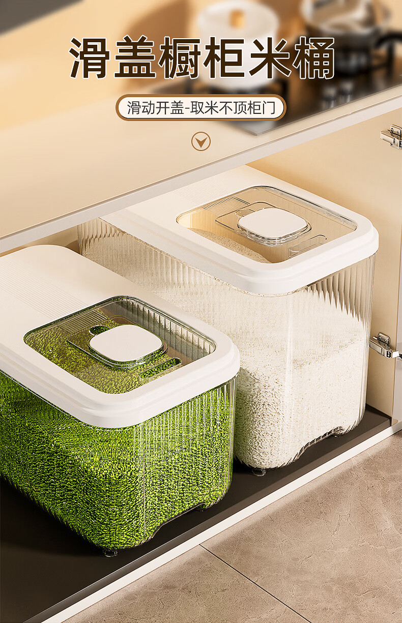 稻草熊厨房收纳防潮米桶带盖密封面粉桶家用厨房收纳大米储存桶食品级 滑盖米桶【小号】