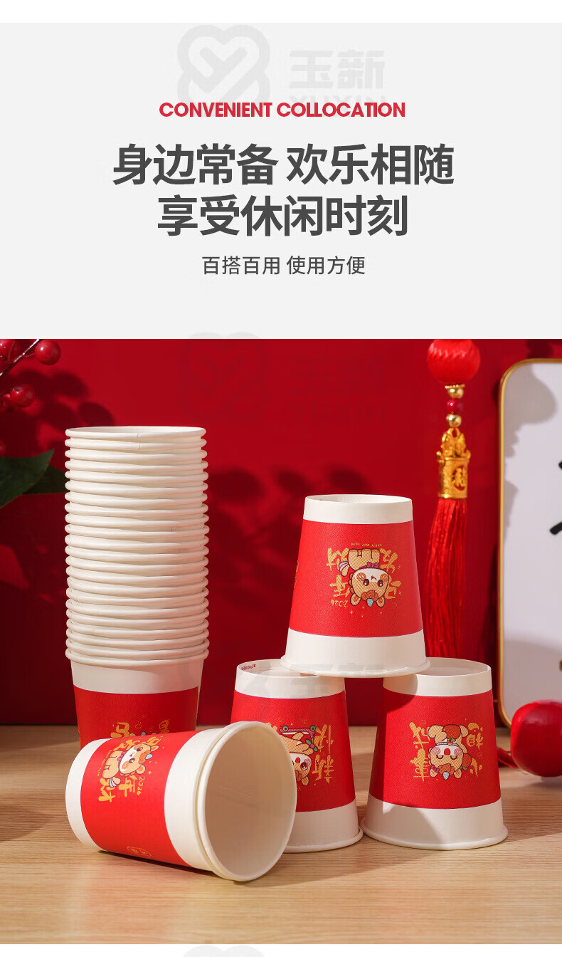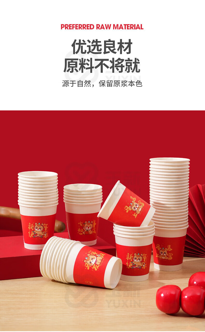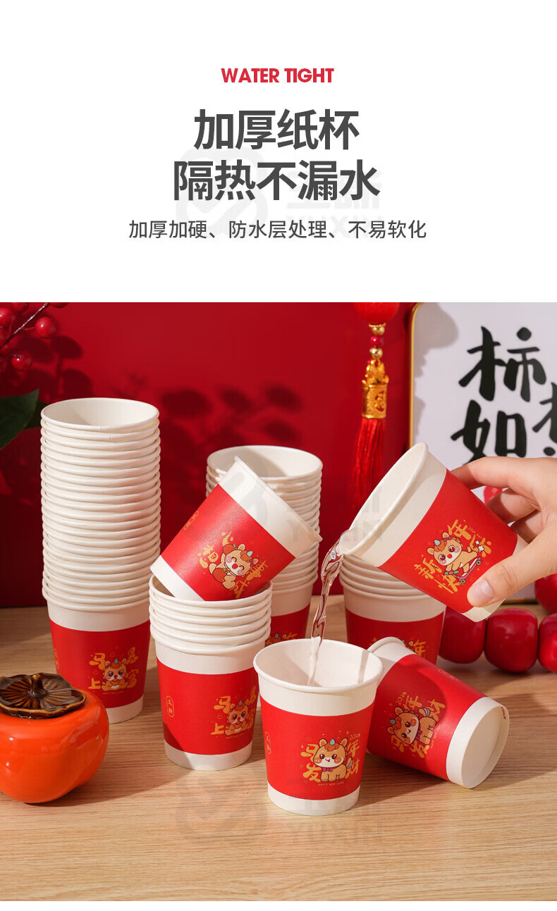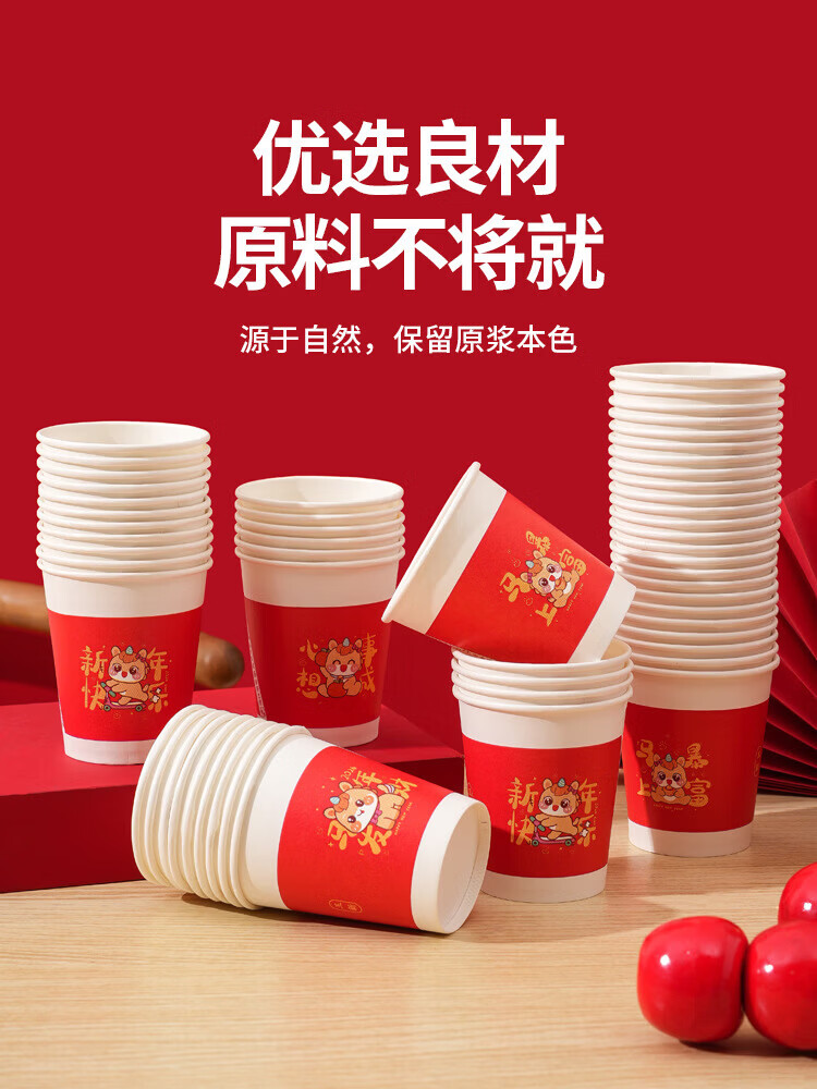 Kaooseen纸杯子一次性水杯加厚家用茶杯高档新年春节过年2026新款马年 一次性纸杯50只【马年大吉】