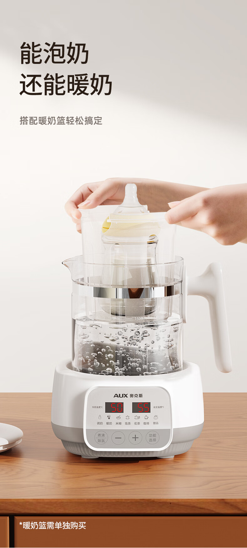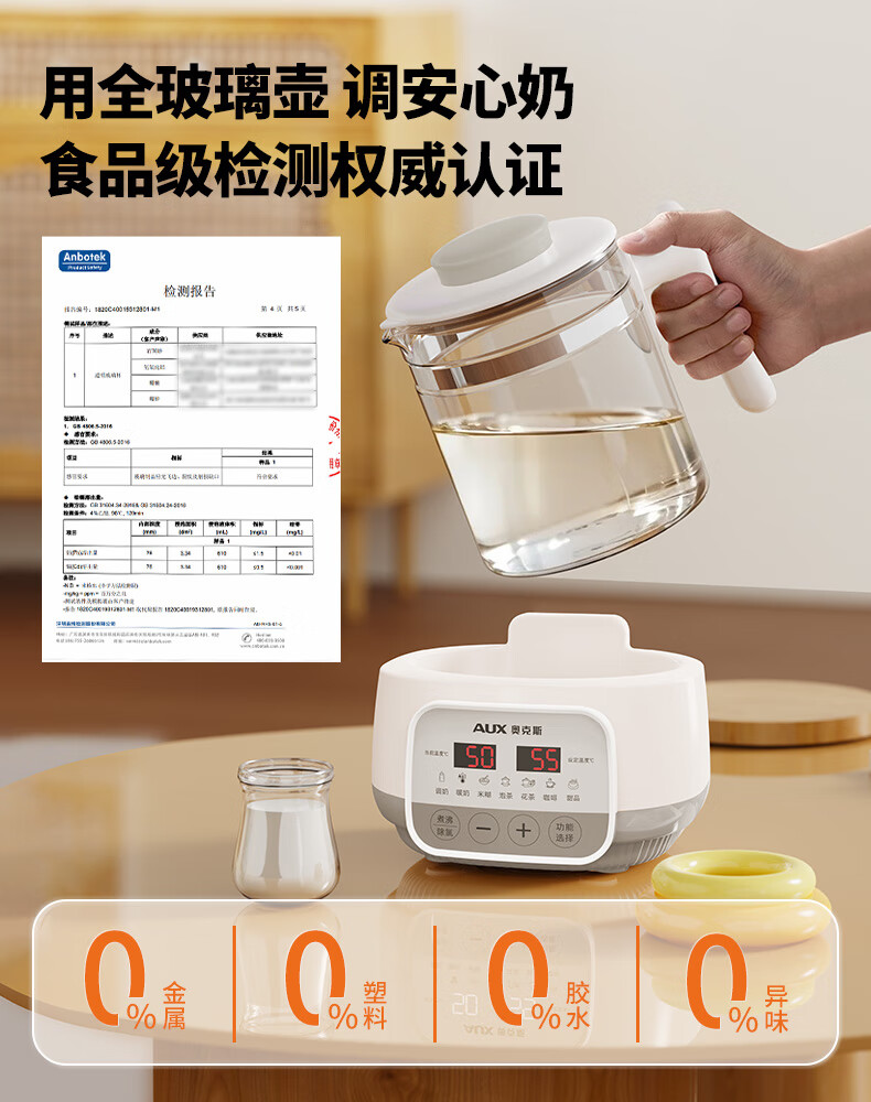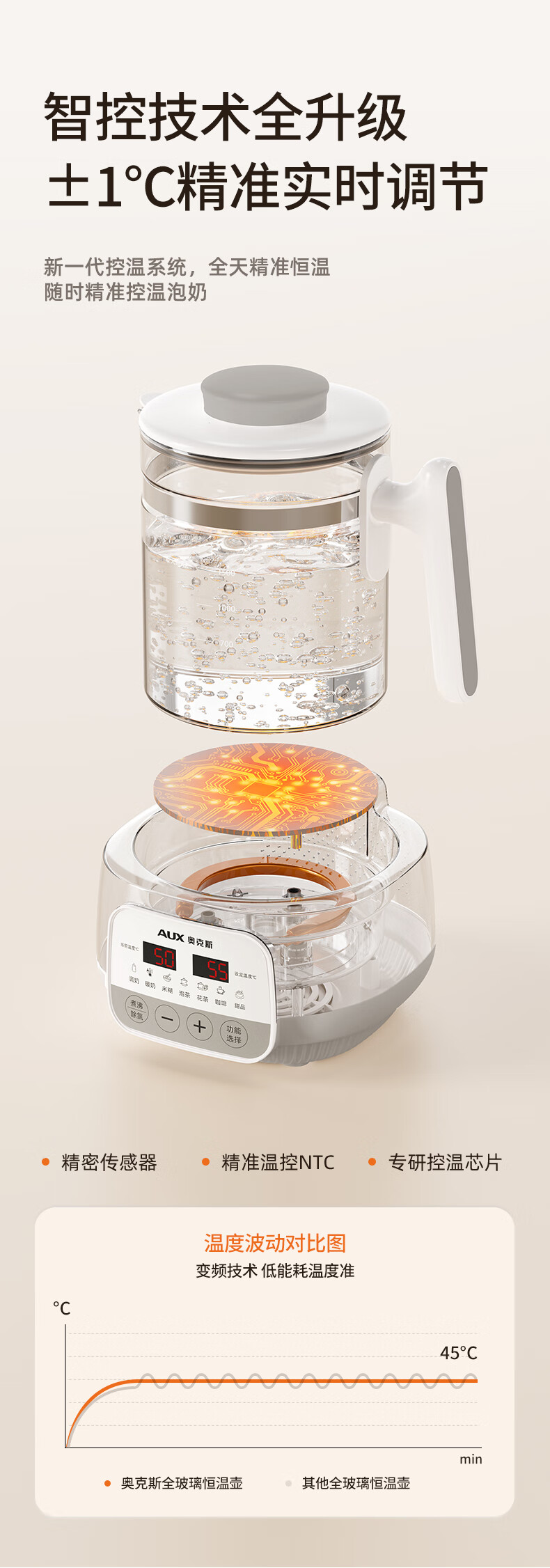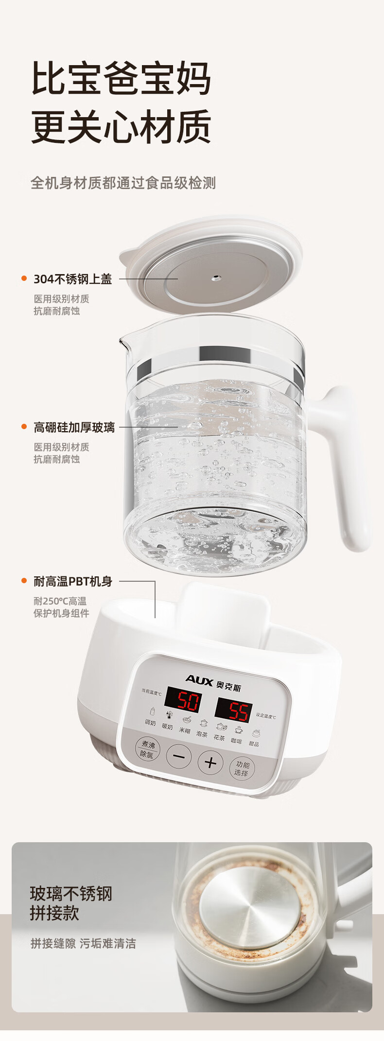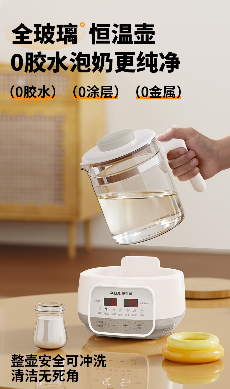 奥克斯全玻璃恒温壶 0胶水恒温调奶器冲奶水壶 母婴级养生壶烧水壶