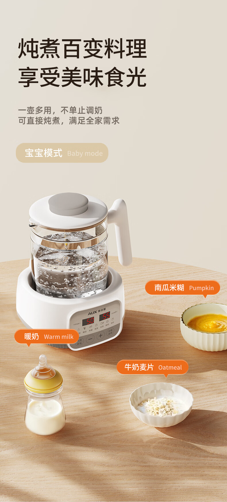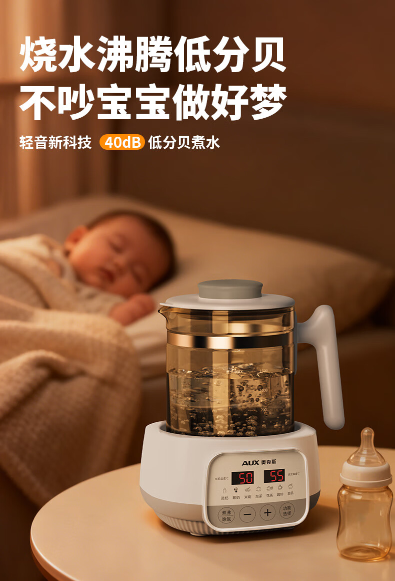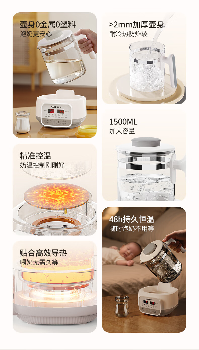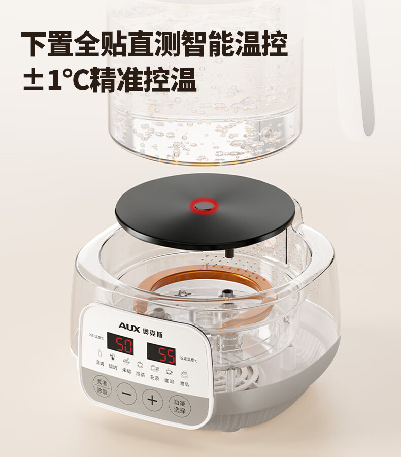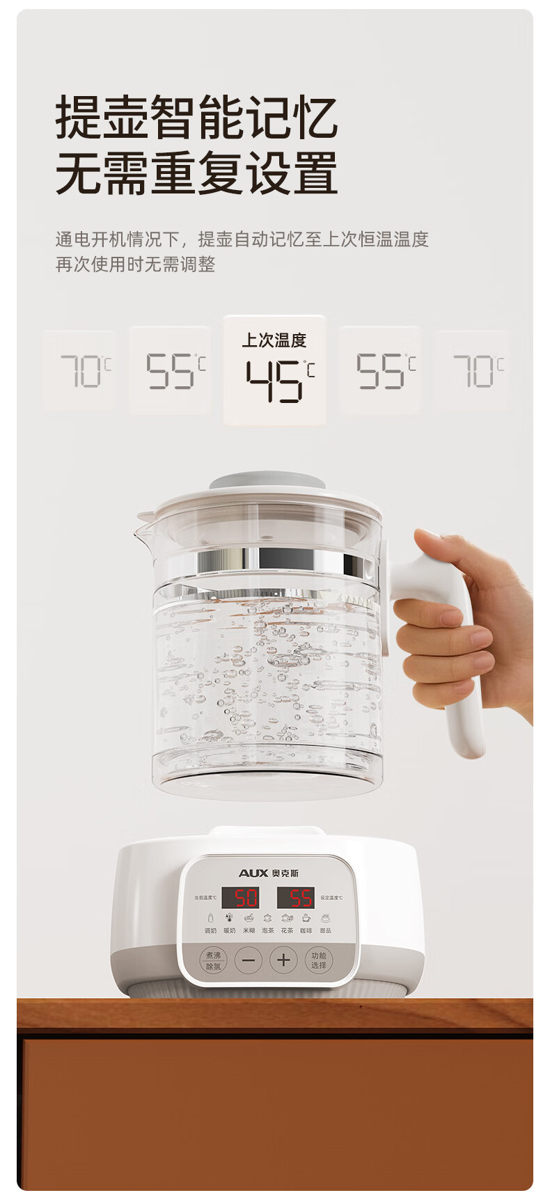 奥克斯全玻璃恒温壶 0胶水恒温调奶器冲奶水壶 母婴级养生壶烧水壶