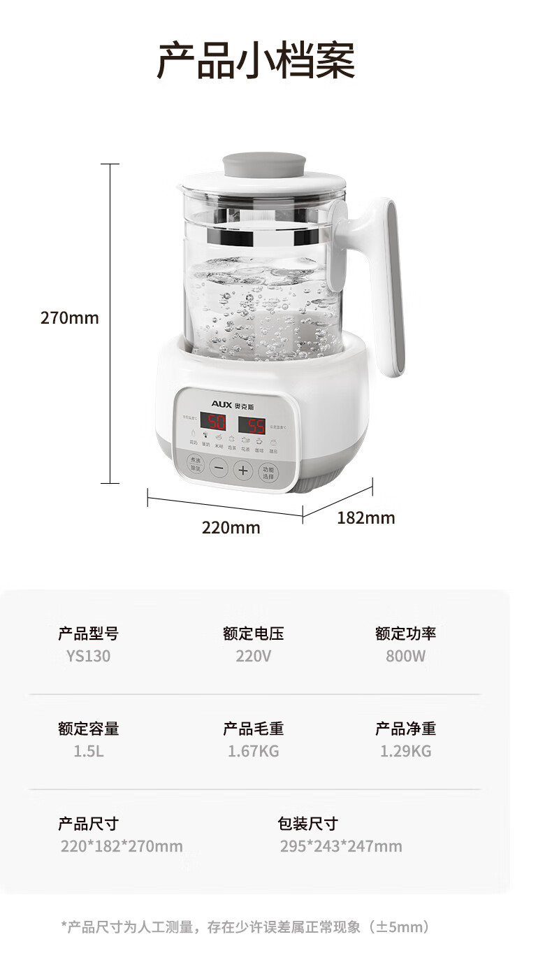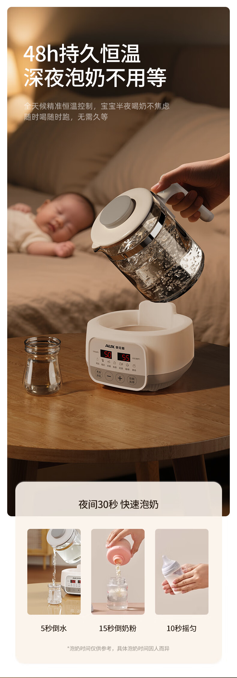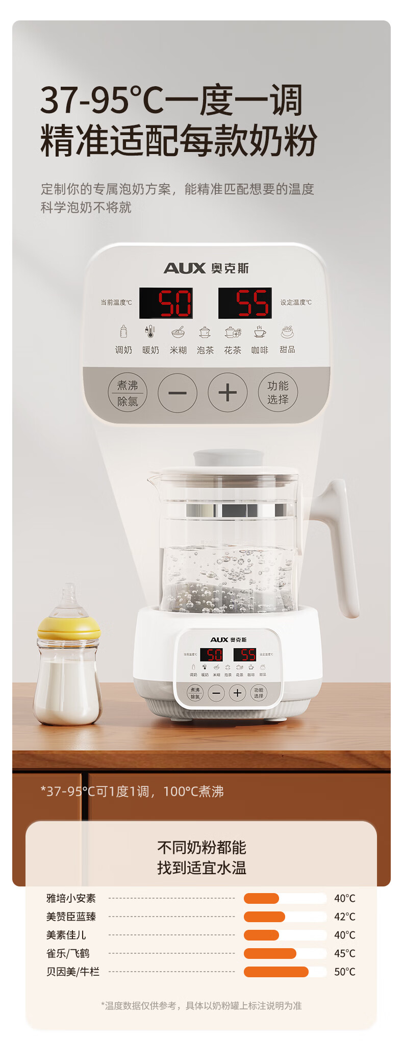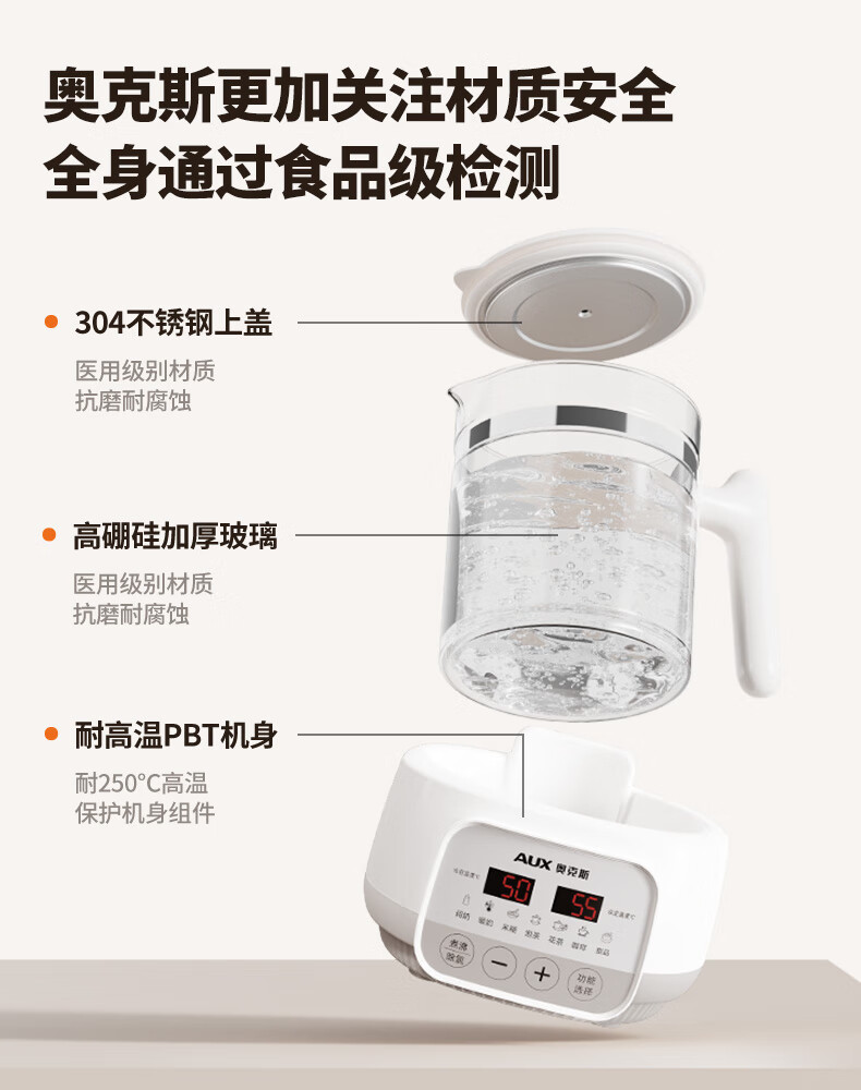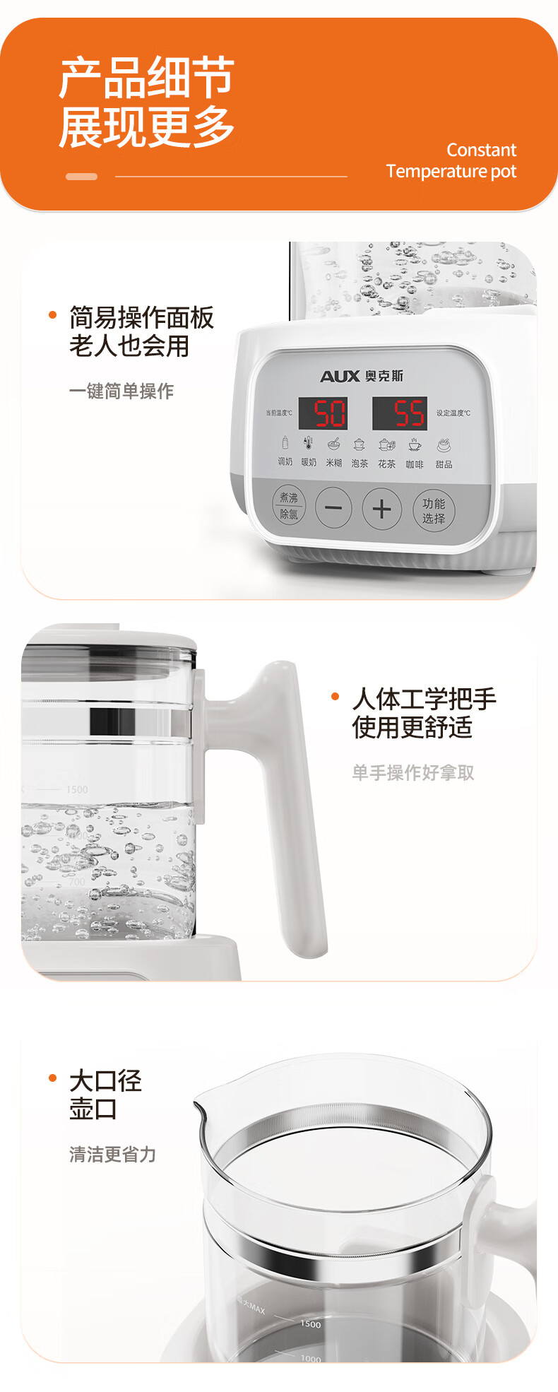 奥克斯全玻璃恒温壶 0胶水恒温调奶器冲奶水壶 母婴级养生壶烧水壶