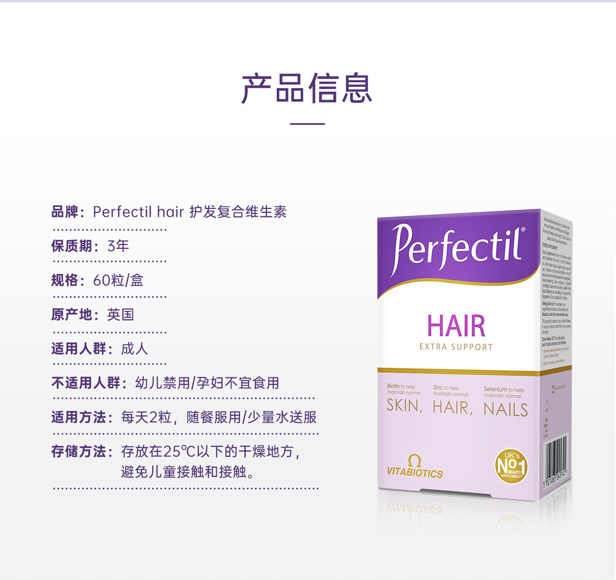 VITABIOTICS薇塔贝尔护发复合维生素 亮肤护发胶原蛋白葡萄籽提取物生物素锌 【26年4月到期】亮肤护发 60粒*1盒