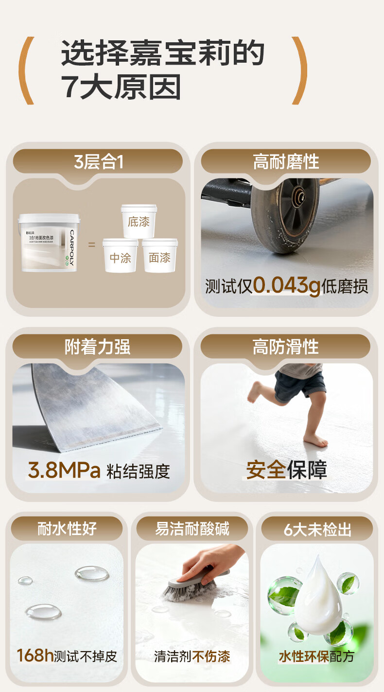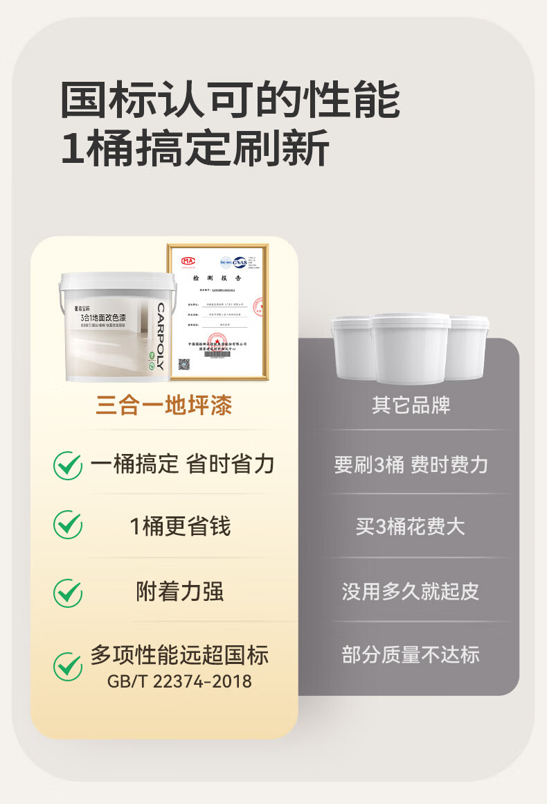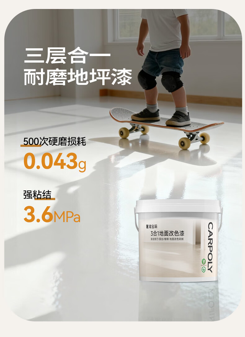 嘉宝莉(CARPOLY)三合一地坪漆水泥地面漆耐磨防水家用室外水性油漆月表灰5KG