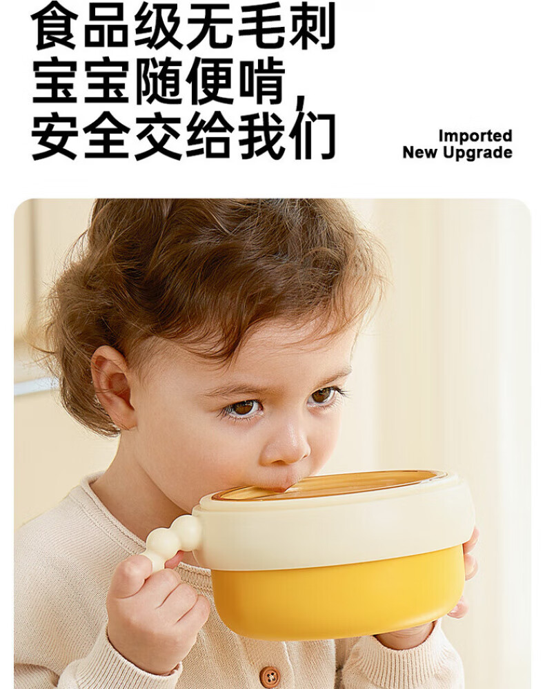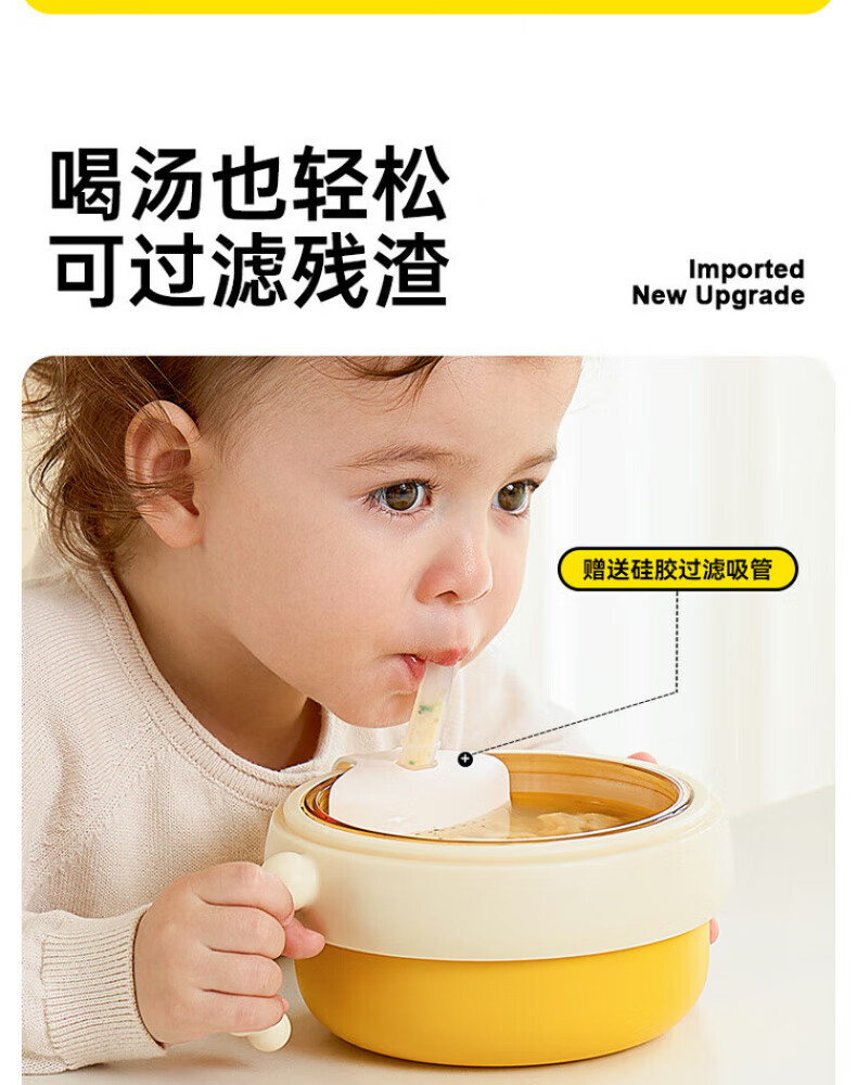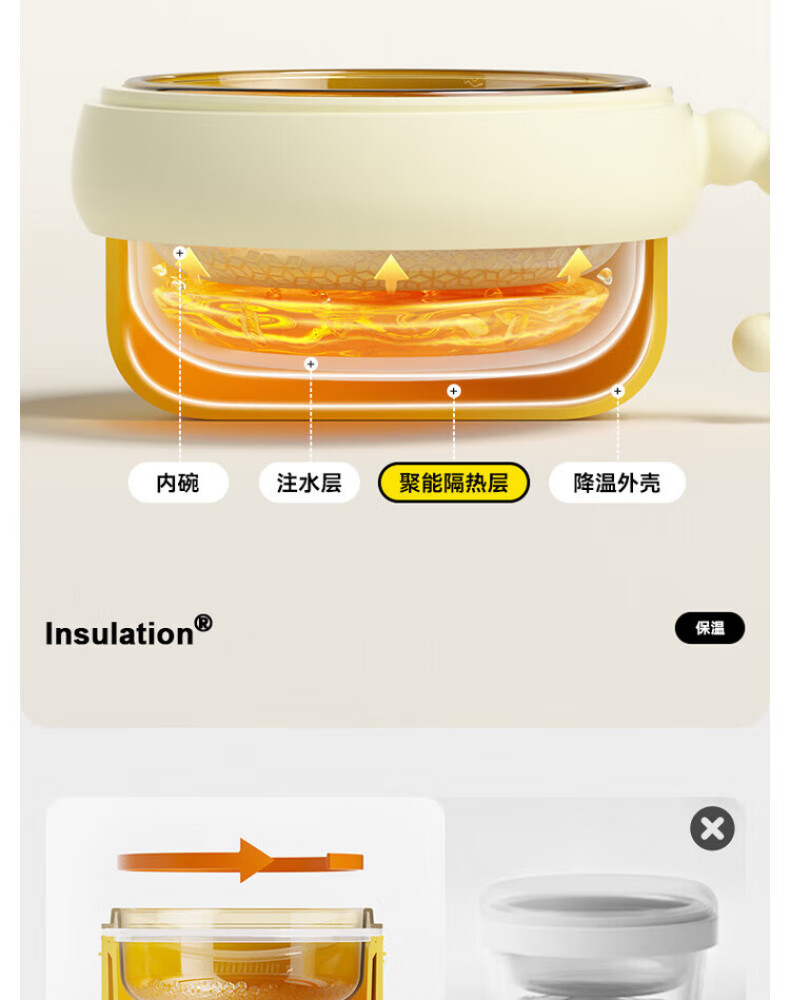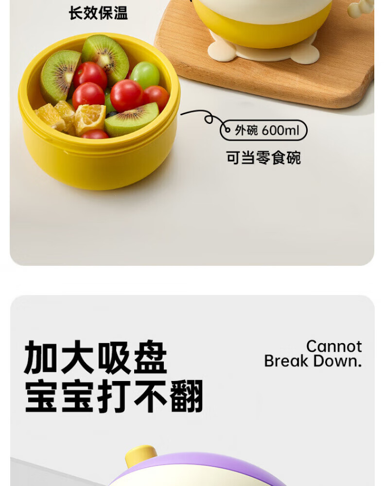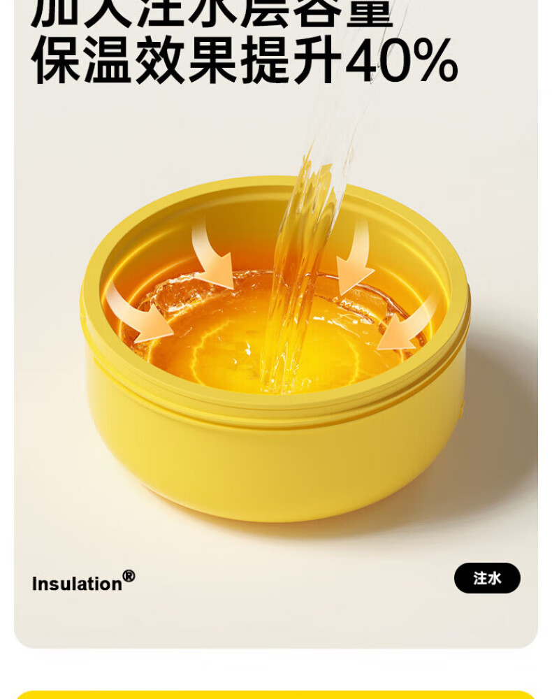 煦凛日本注水保温碗婴儿ppsu内胆大容量儿童餐具宝宝防摔婴幼儿恒温 米卡黄-【双内胆-防刮款】-随心换
