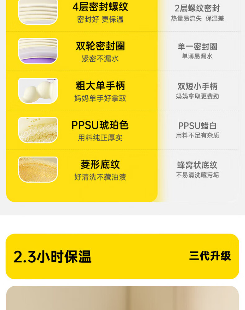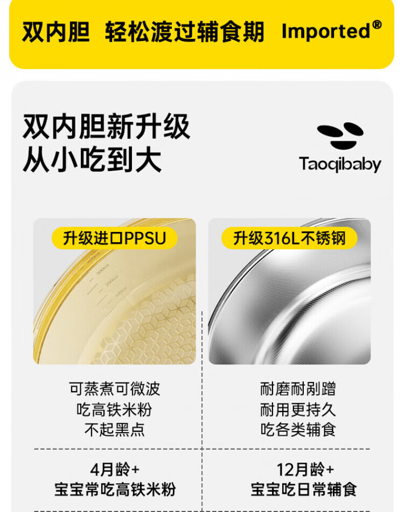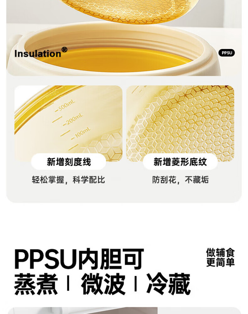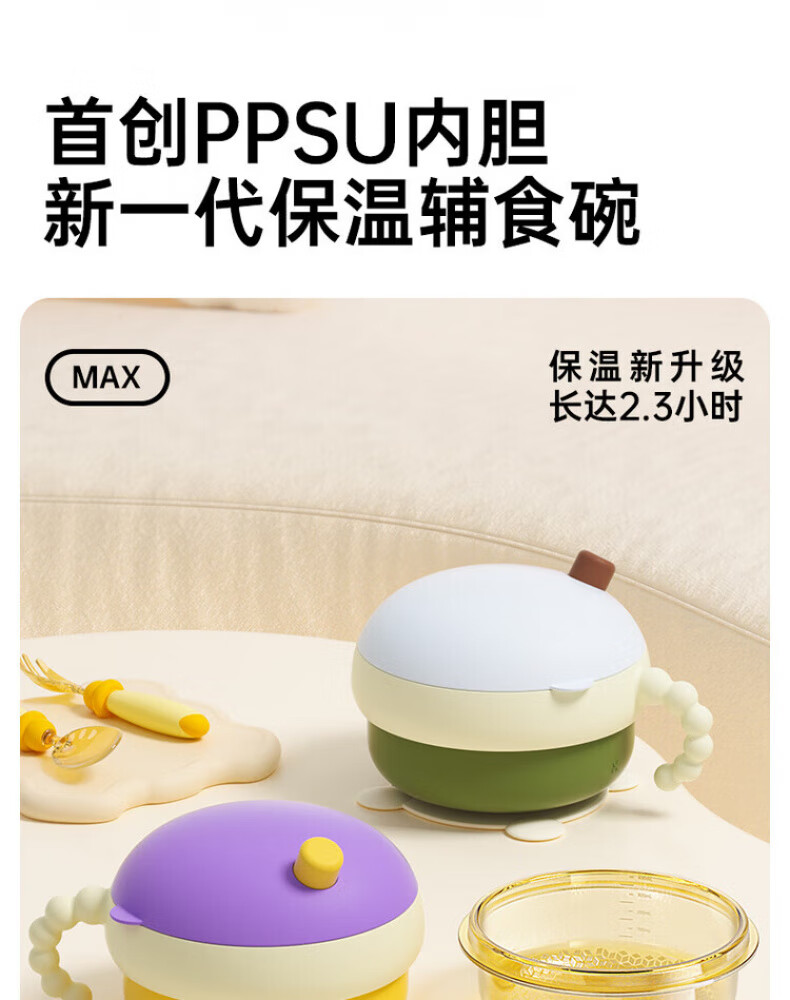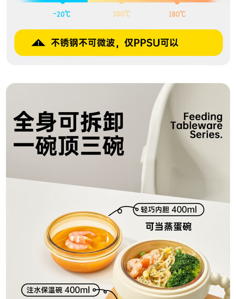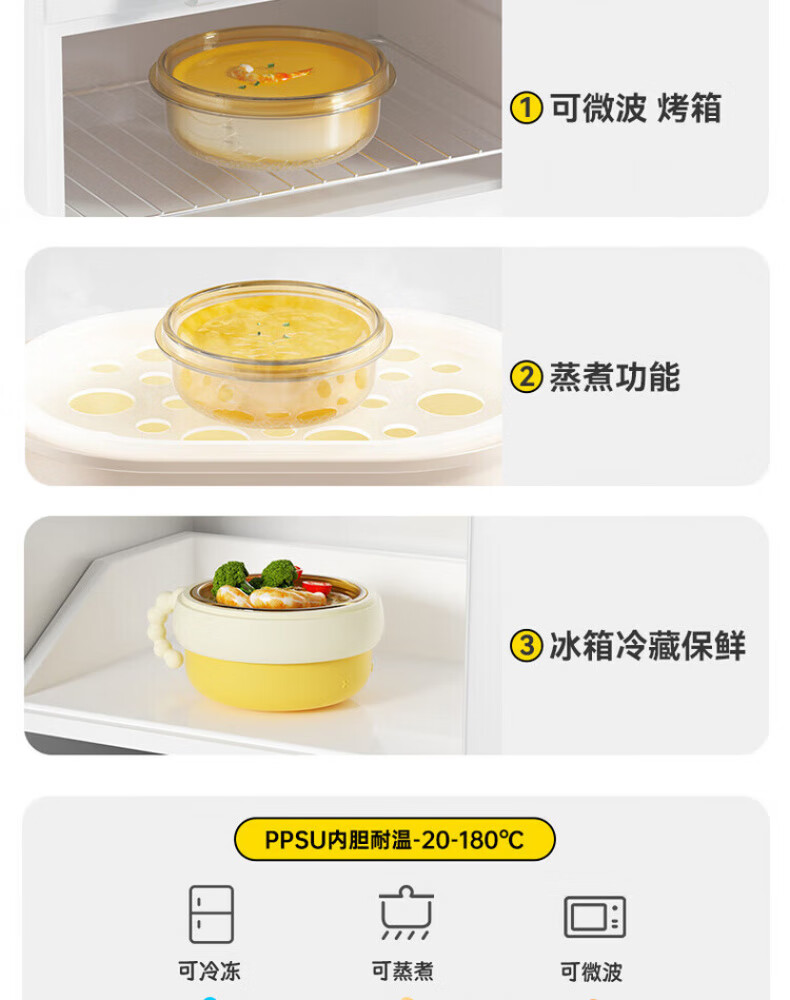 煦凛日本注水保温碗婴儿ppsu内胆大容量儿童餐具宝宝防摔婴幼儿恒温 米卡黄-【双内胆-防刮款】-随心换