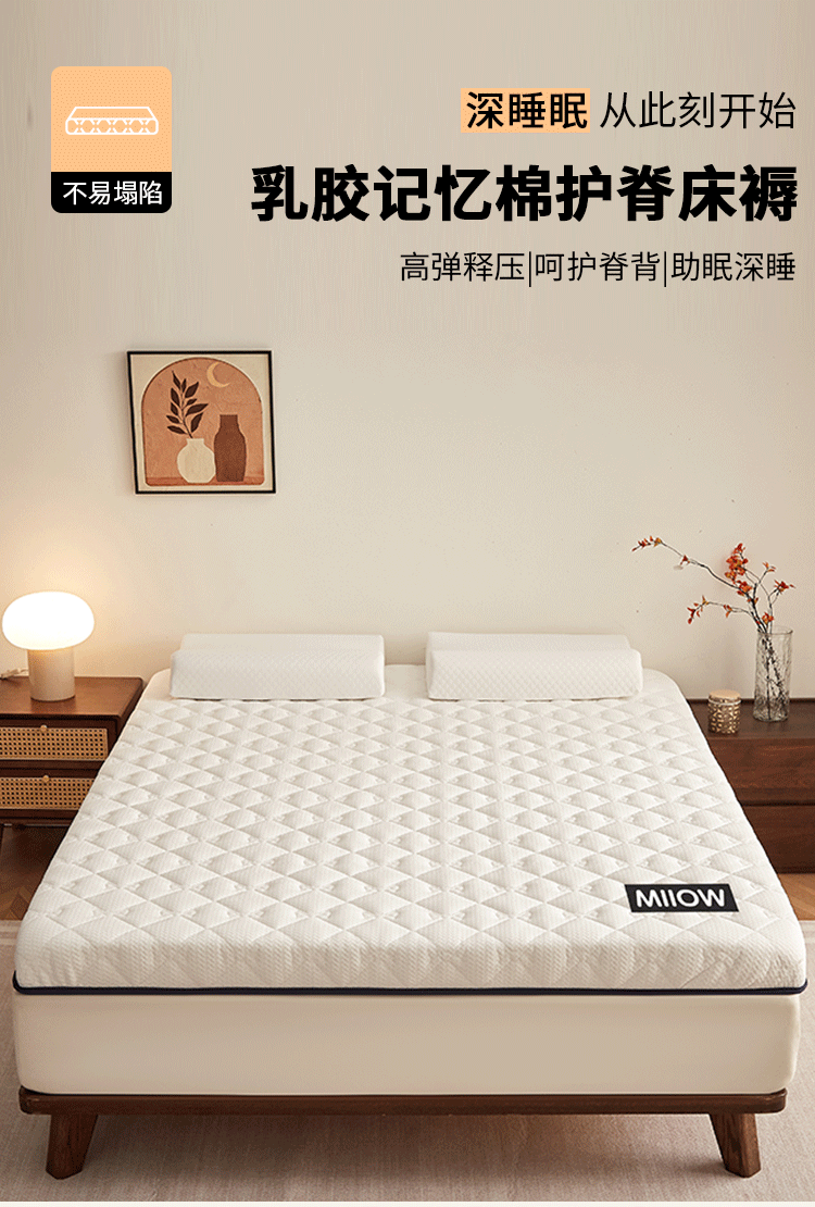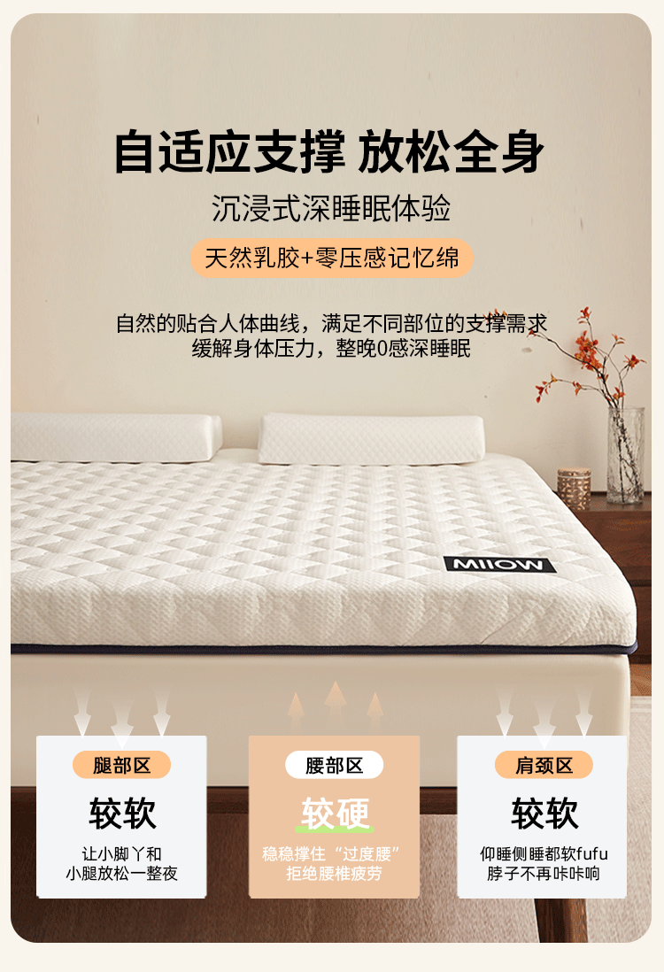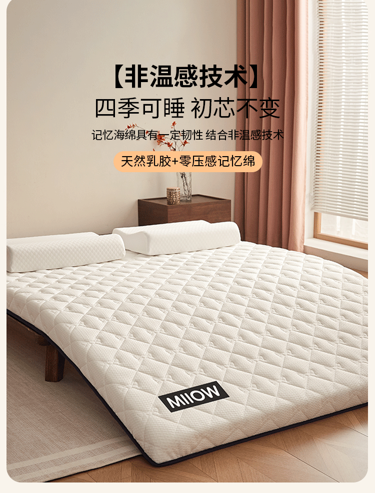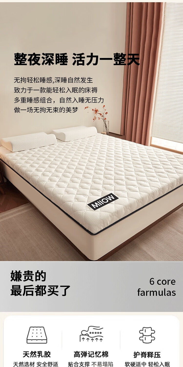 猫人(MiiOW)乳胶床褥垫子床垫遮盖物软垫榻榻米垫海绵垫宿舍单双人褥子垫背 猫猫元气白-约6cm厚 80x190cm宿舍床