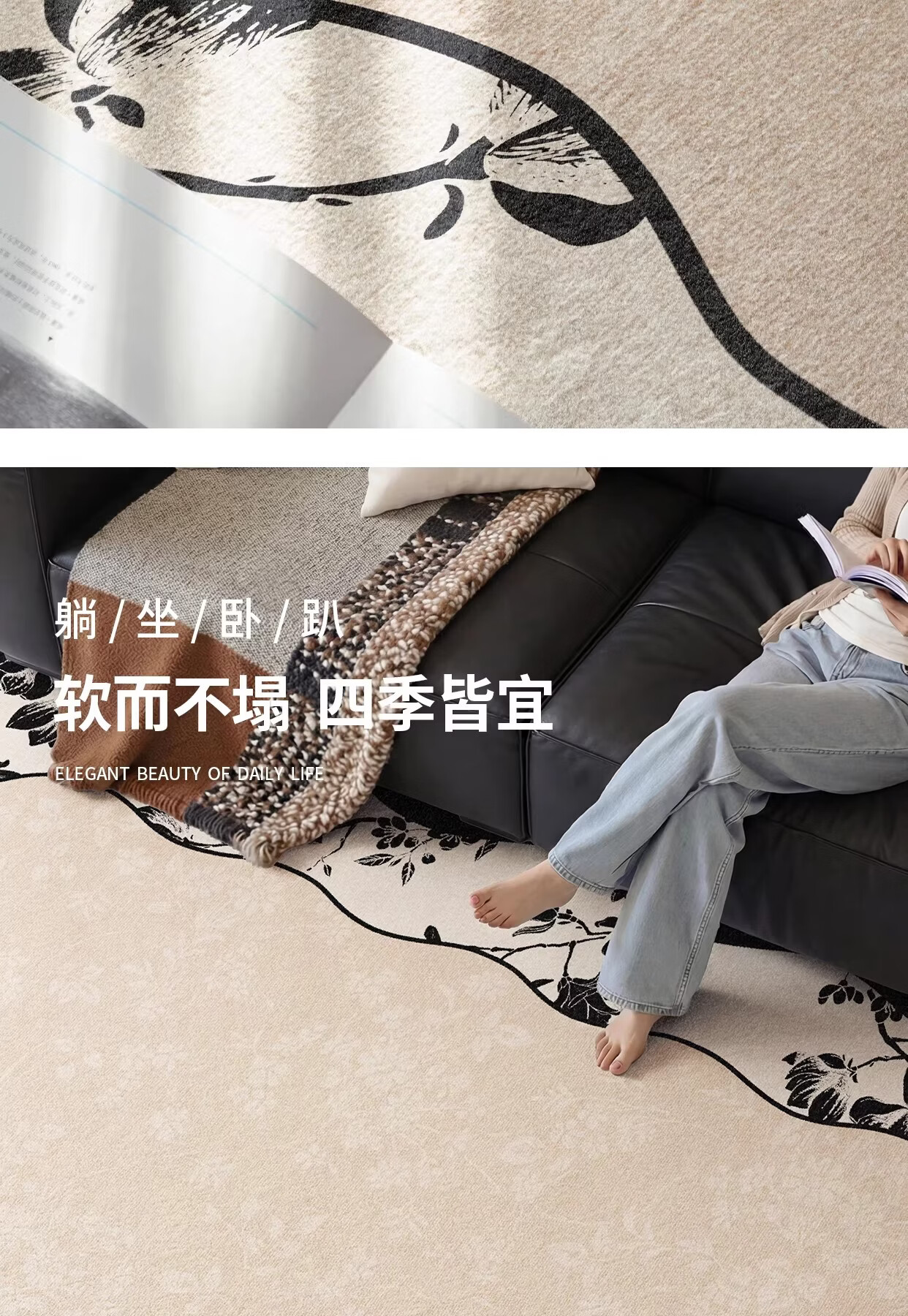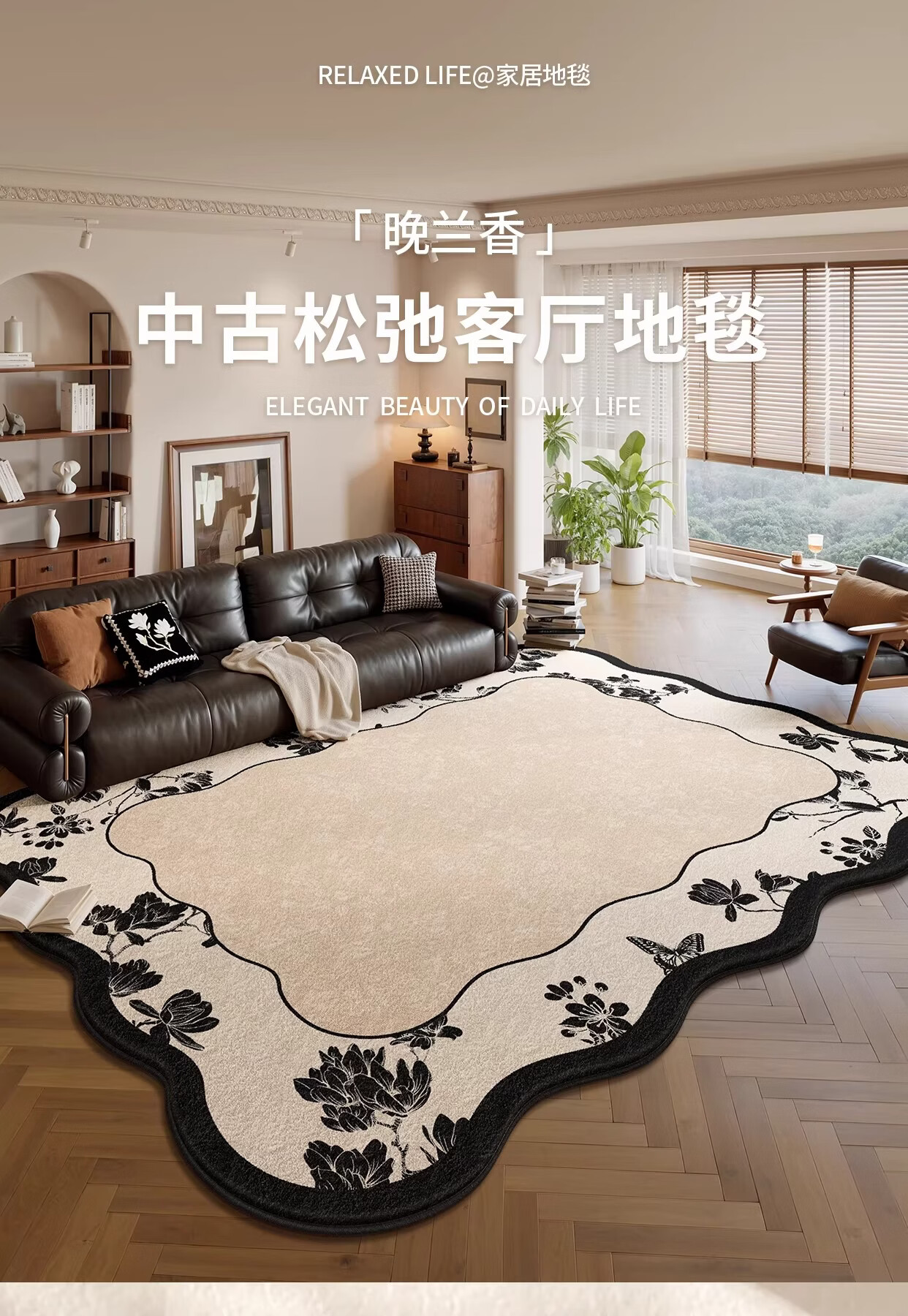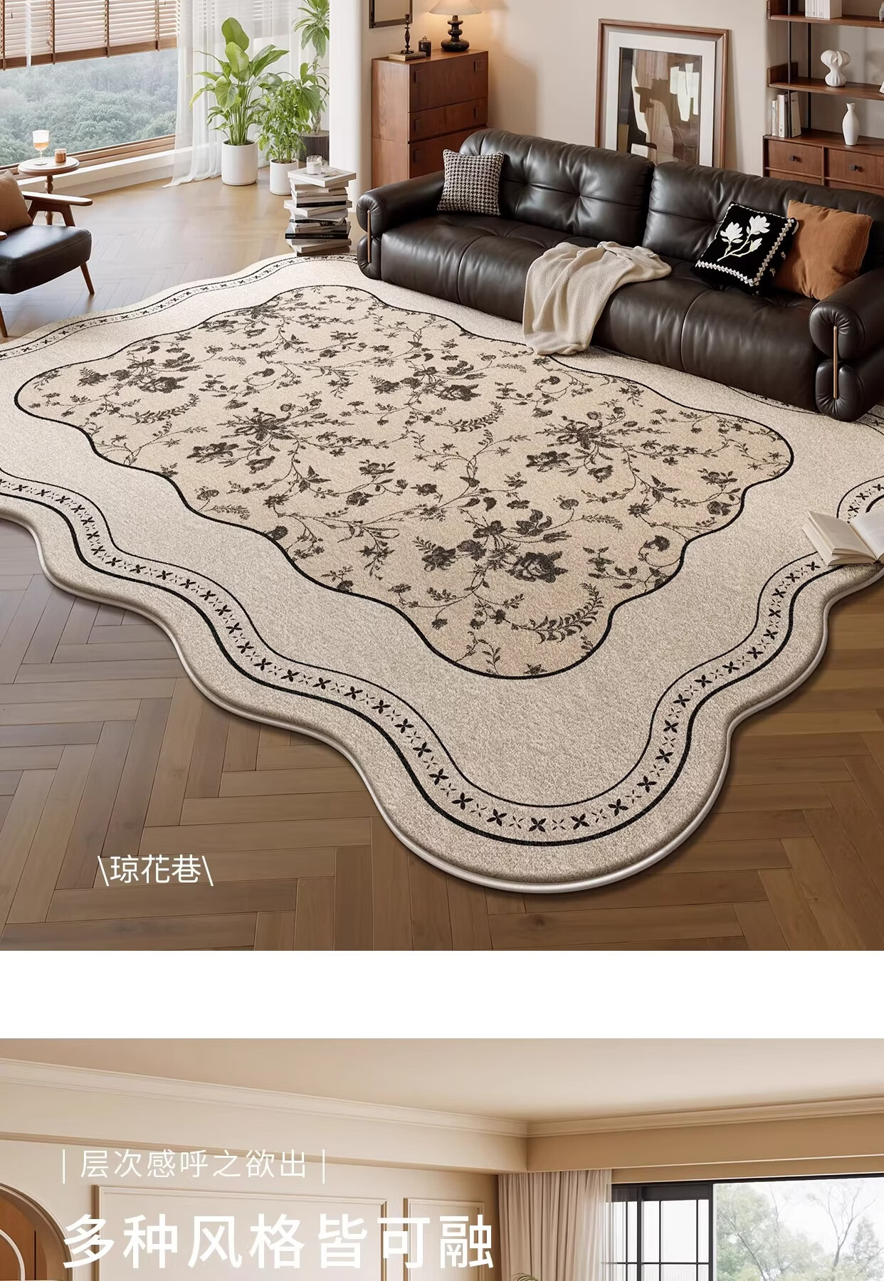 Y U-LIVE地毯客厅中古风2026新款异形法式复古免洗可擦沙发卧室免打理 S仿羊绒-云漫山间异形 200*300CM 【客厅优选尺寸】