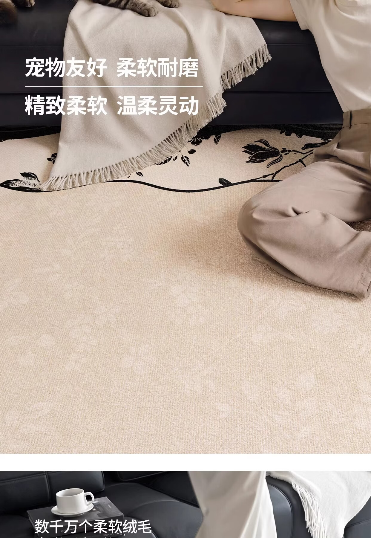 Y U-LIVE地毯客厅侘寂风2026新款轻奢高级全铺大面积免洗可擦沙发卧室 S仿羊绒-逐浪 200*300CM【客厅优选尺寸】