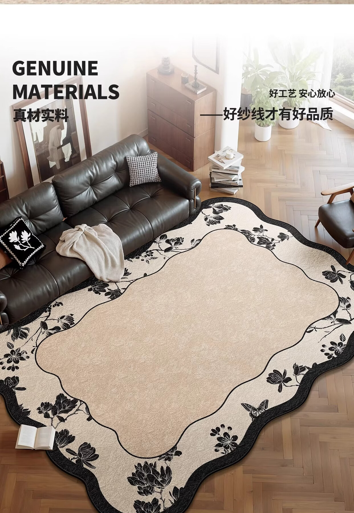 Y U-LIVE地毯客厅异形2026新款中古风免洗可擦不规则法式复古地垫沙发 S仿羊绒-云雾海棠 定制请联系客服【享优惠】