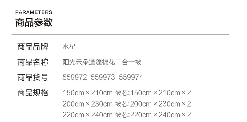 水星家纺阳光云朵蓬蓬棉花二合一被 阳光云朵蓬蓬棉花二合一被 150cm*210cm