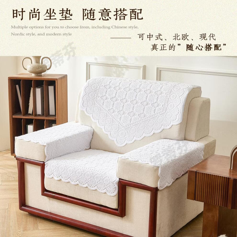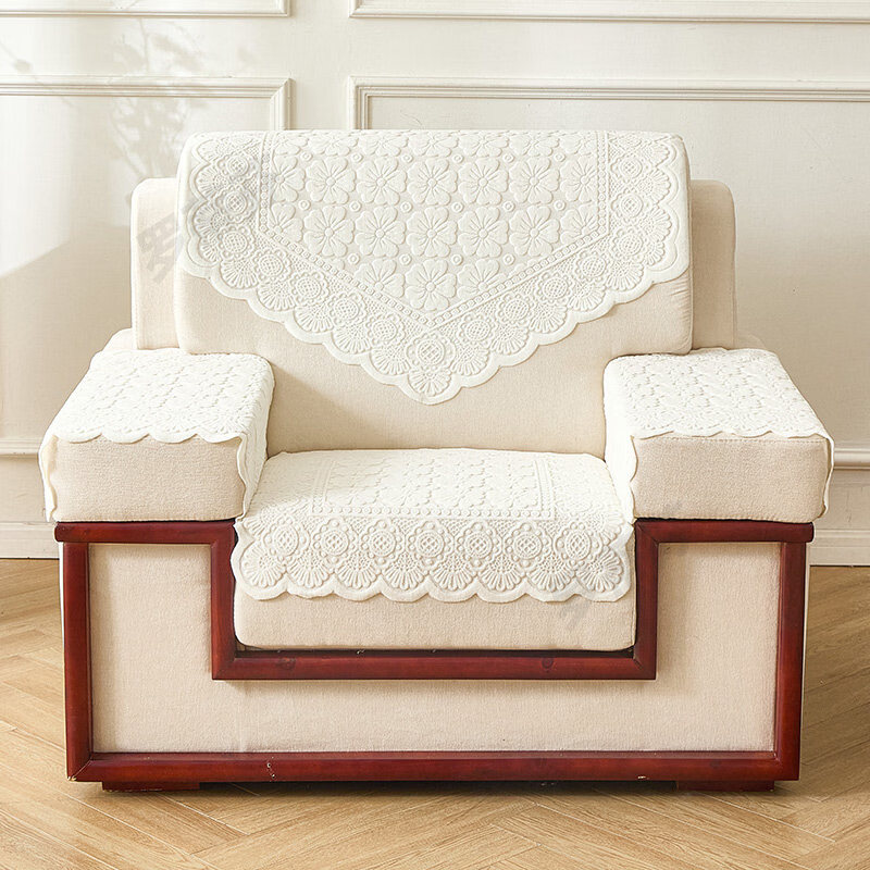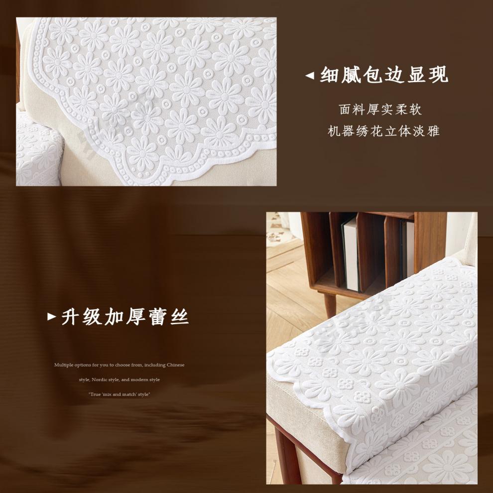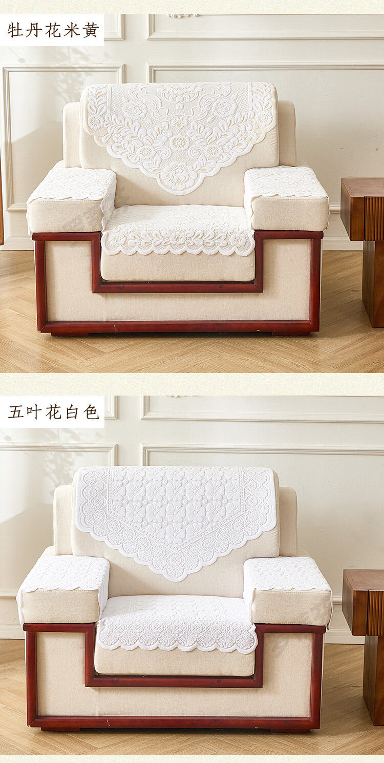 正圣会议接待室沙发巾办公单人坐垫扶手巾沙发靠背垫白色四季款四件套 吉祥花白色 【36针高品质加厚】 65cm*70cm 三角巾