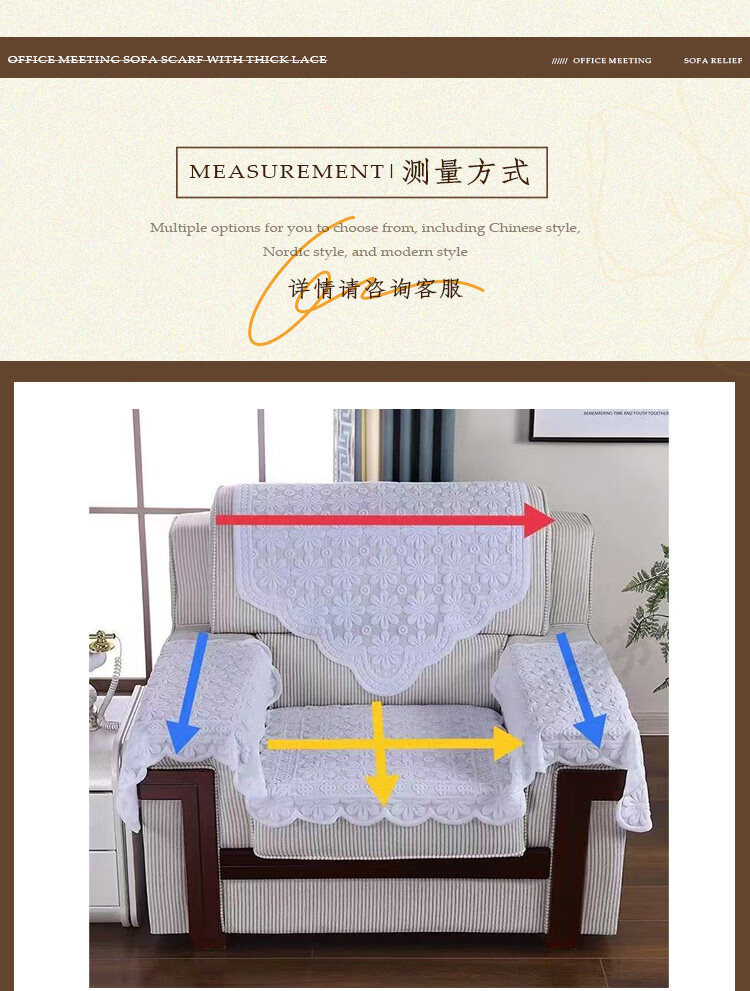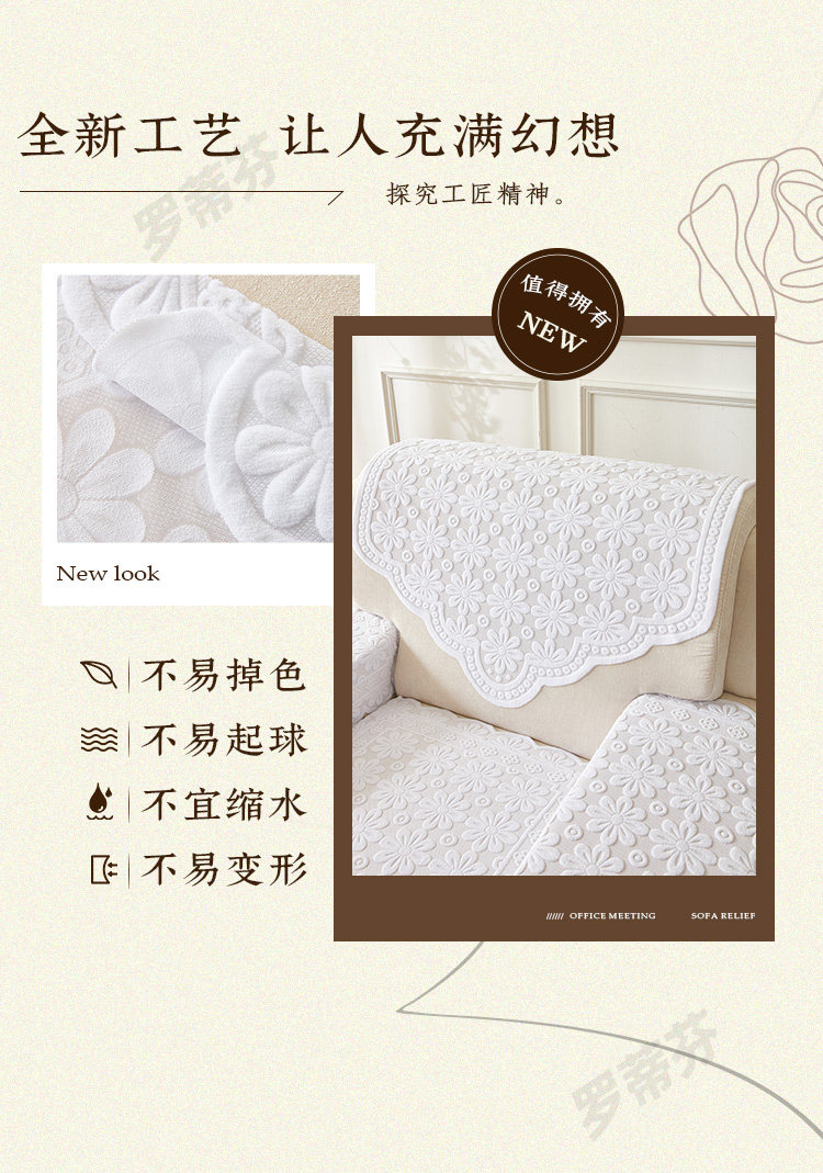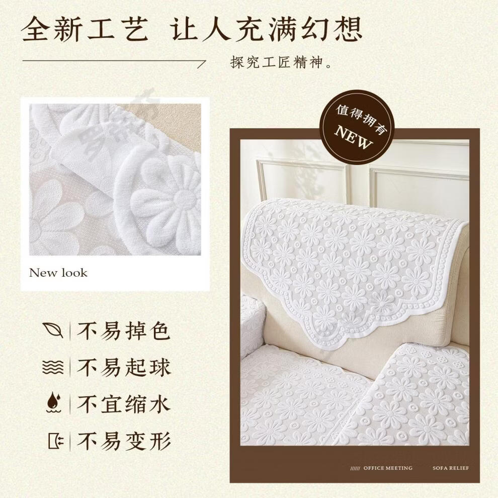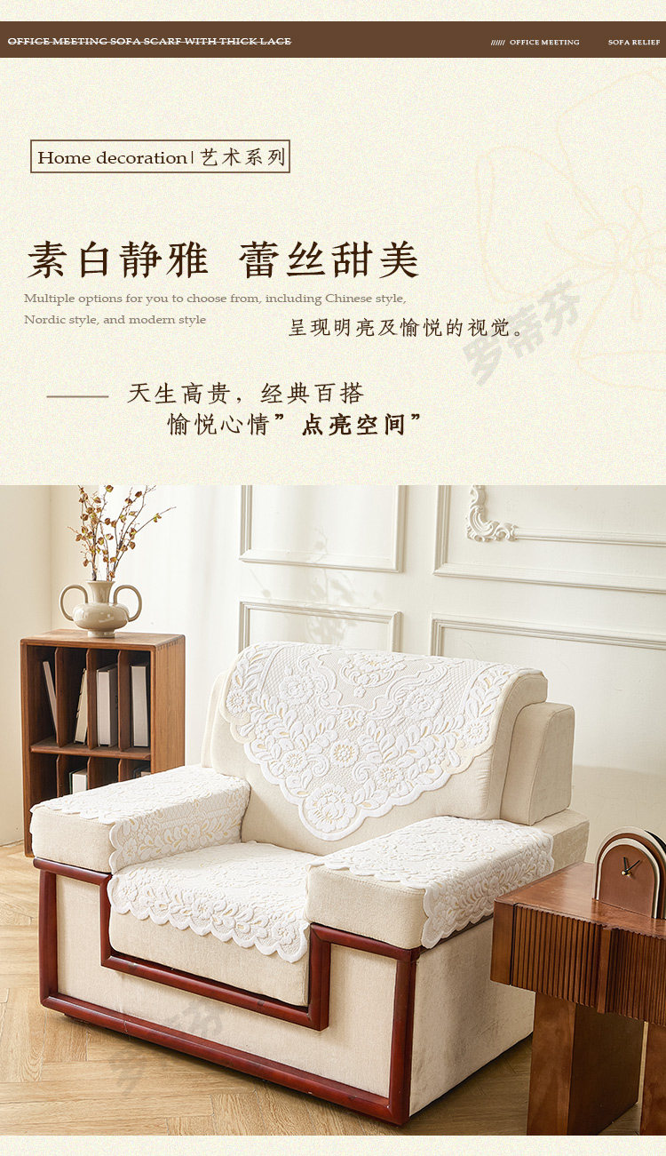 正圣会议接待室沙发巾办公单人坐垫扶手巾沙发靠背垫白色四季款四件套 吉祥花白色 【36针高品质加厚】 65cm*70cm 三角巾