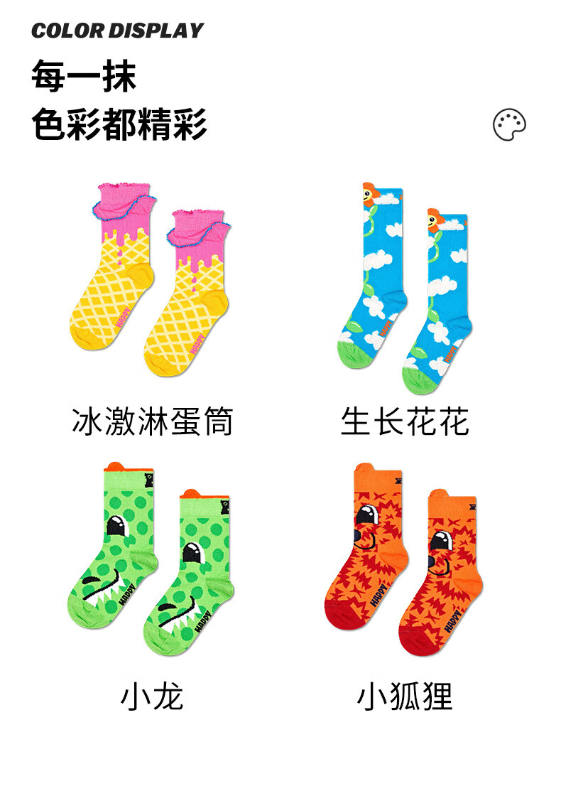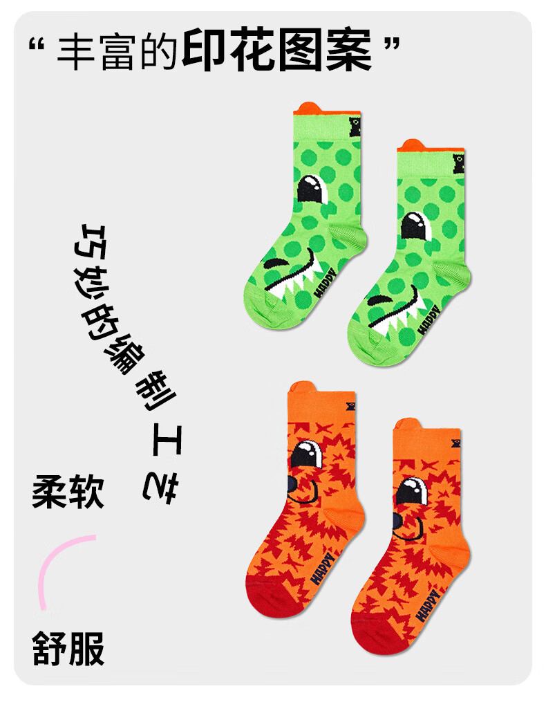 Happy Socks【新品】Happy Socks立体中筒袜儿童袜子秋冬季儿童女童 小龙 1双 均码 7-9Y