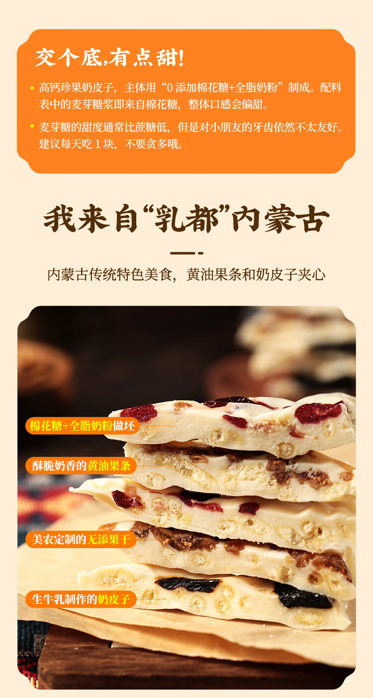 西域美农高钙珍果奶皮子 0反式脂肪酸三种口味内蒙古特产零食 280g
