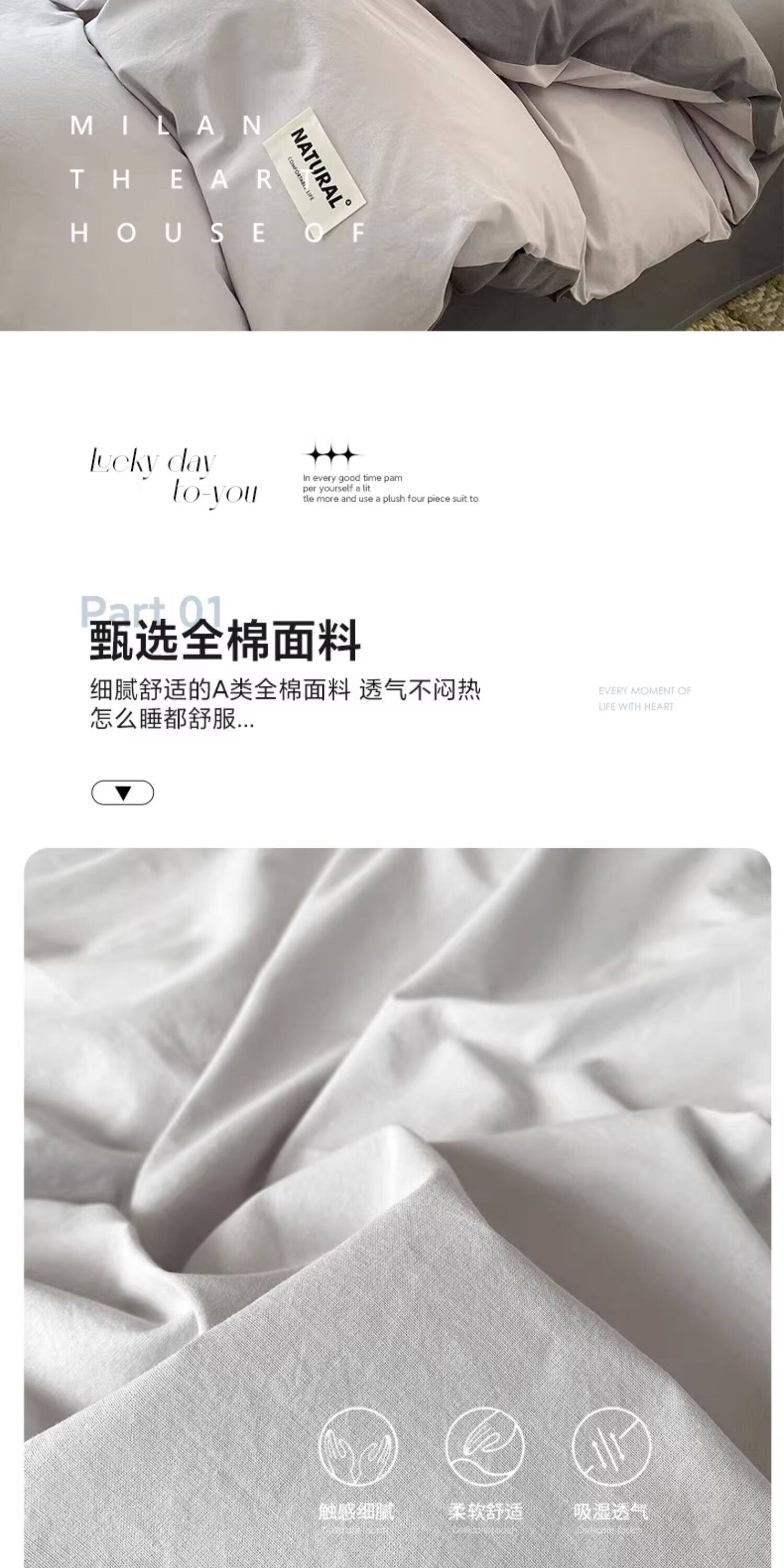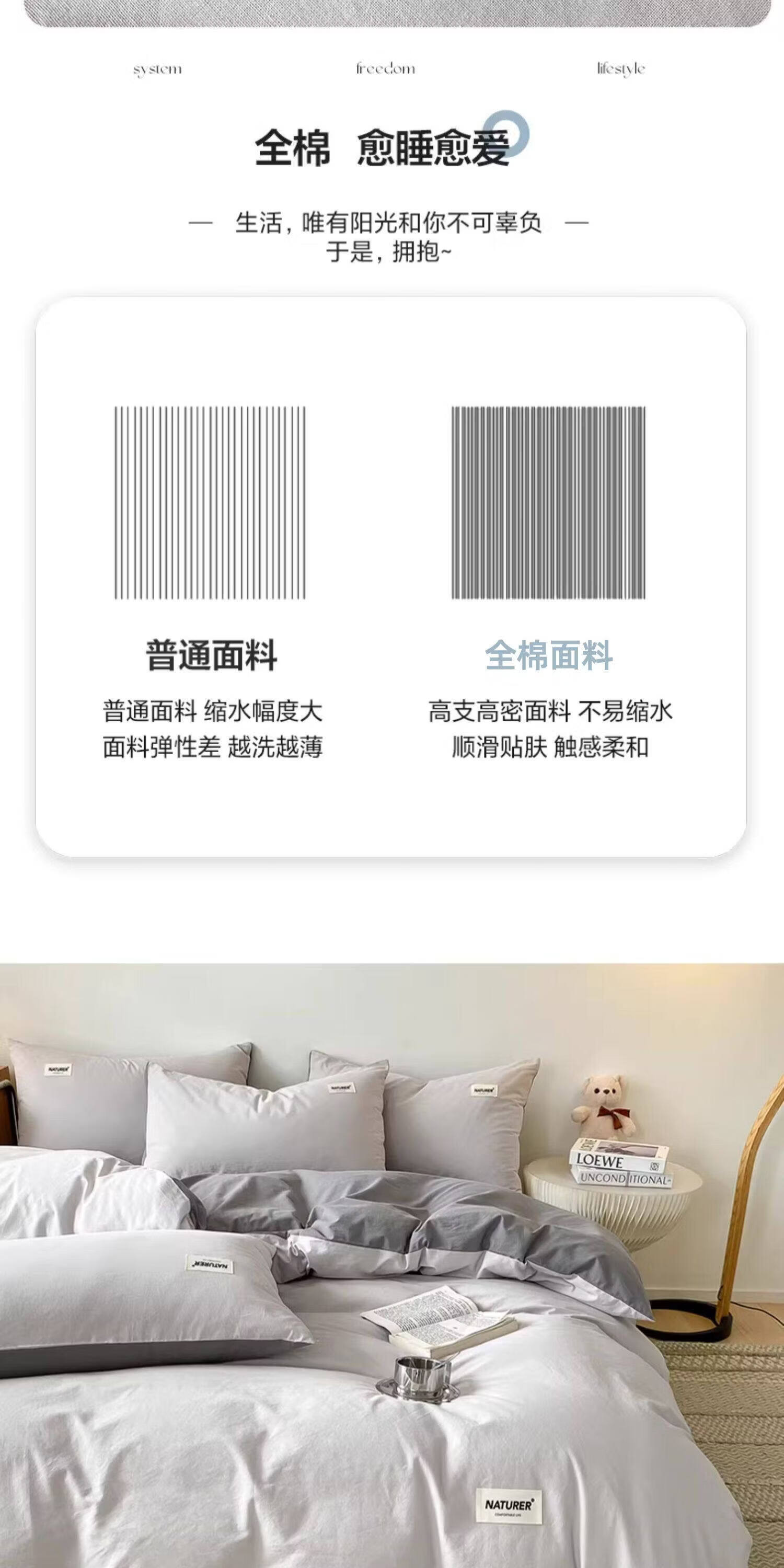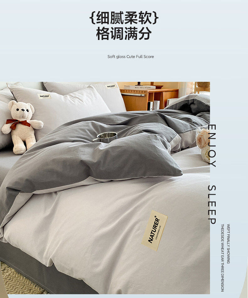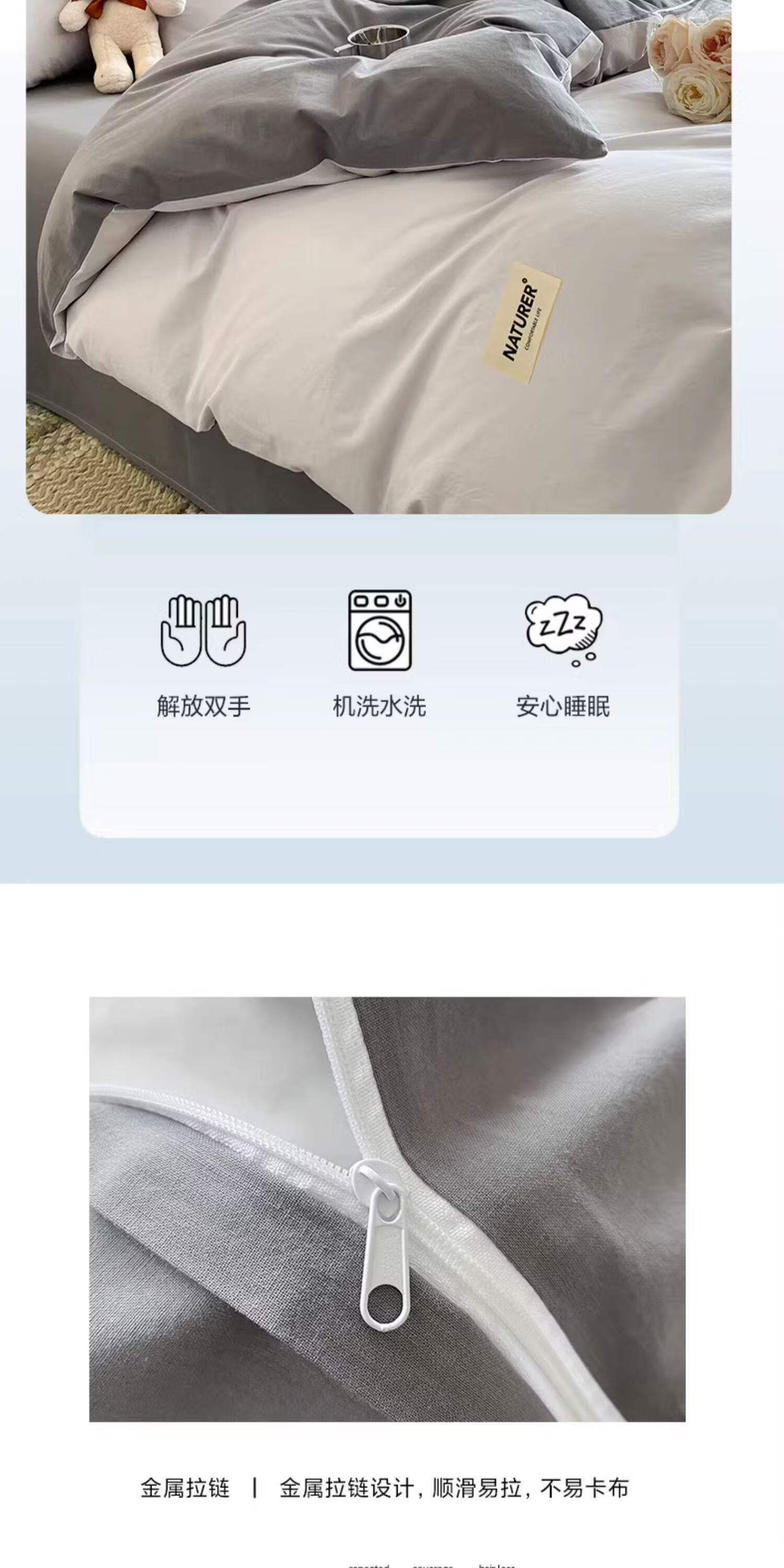 猫人(MiiOW)纯棉被套200x230cm100%全棉被罩单件床单床笠款床上用品四件套罩 山灰+中灰【A类品质面料 健康裸睡】 150x200cm被套单件【全棉面料 舒适透气】