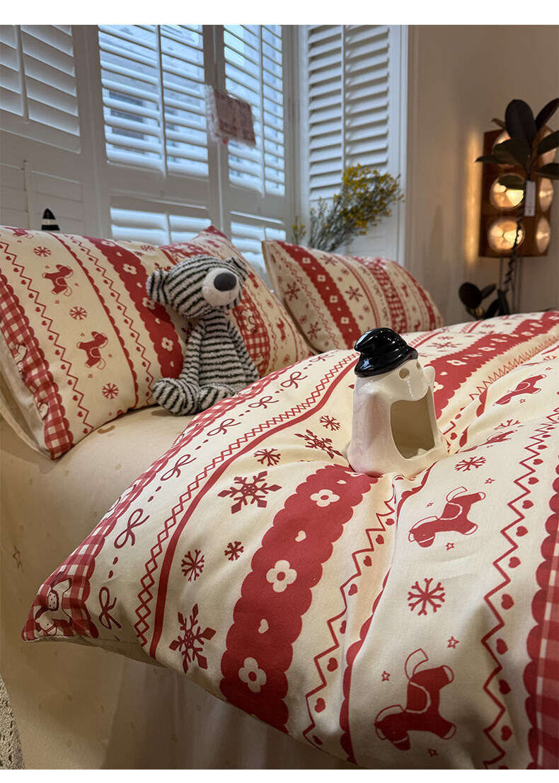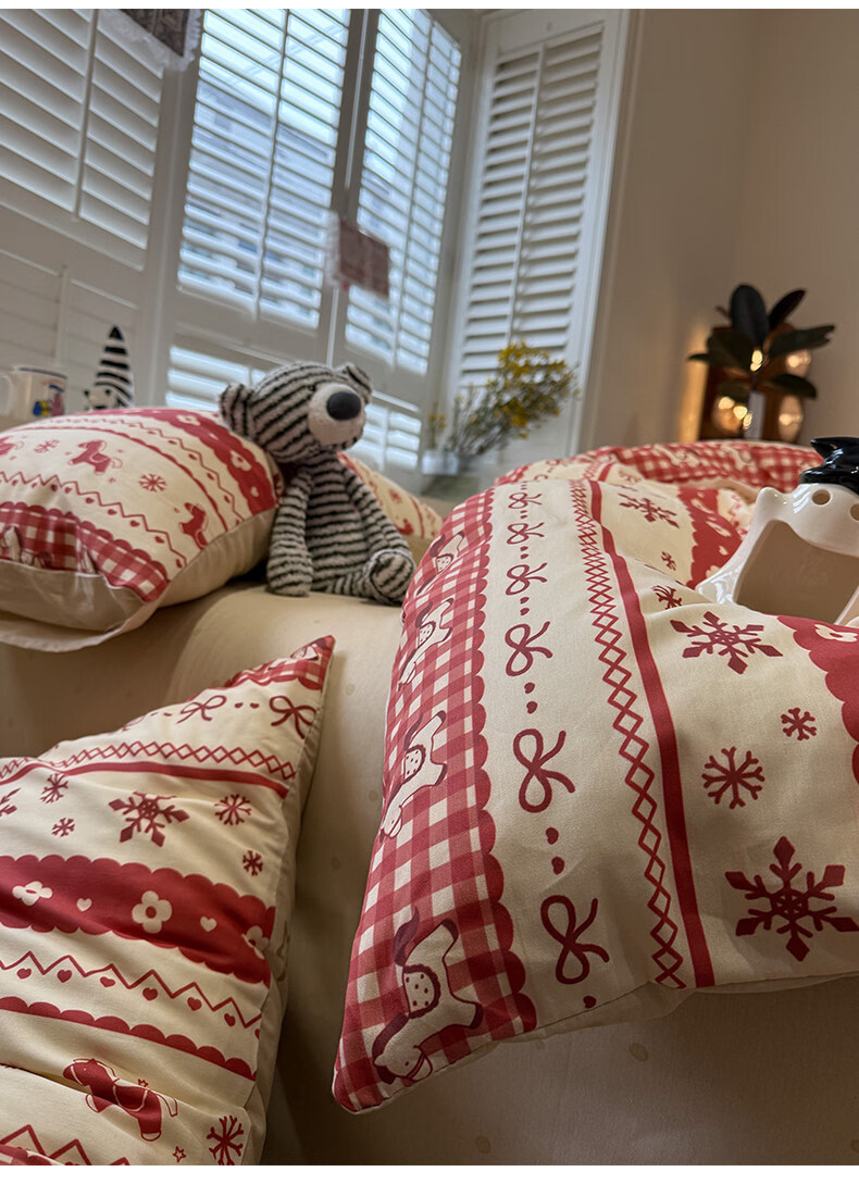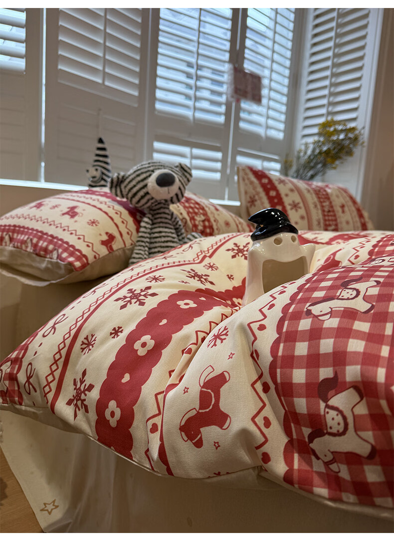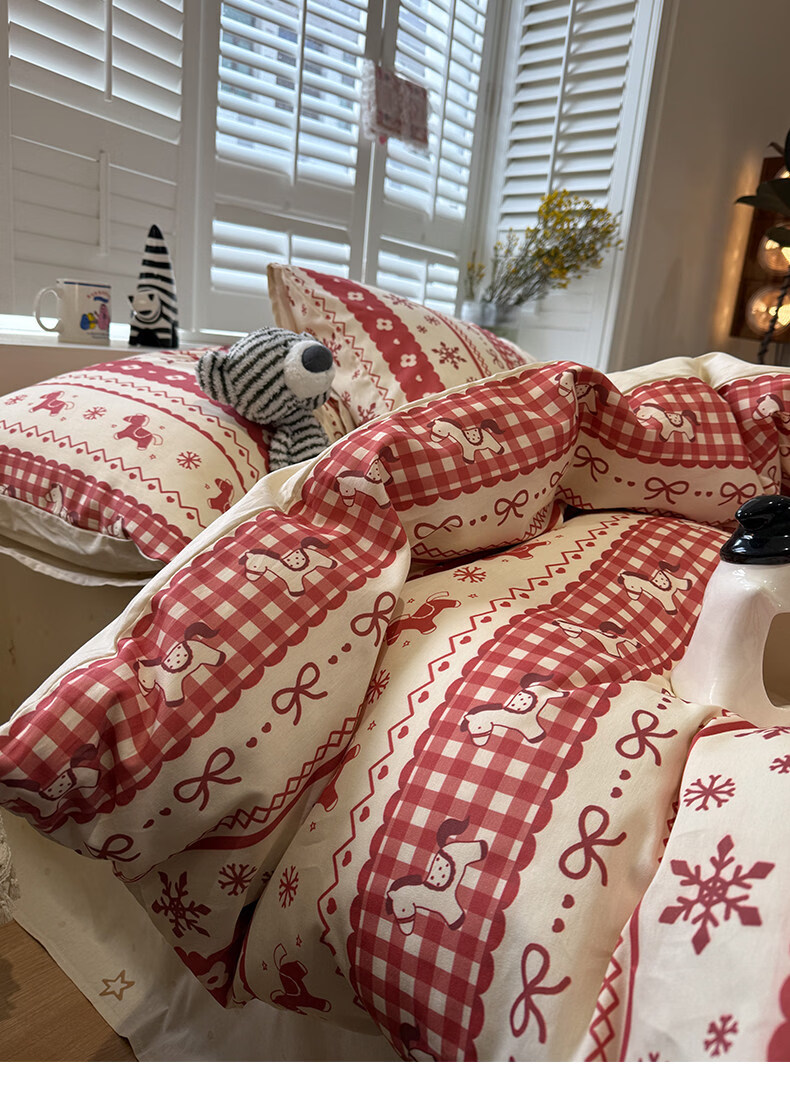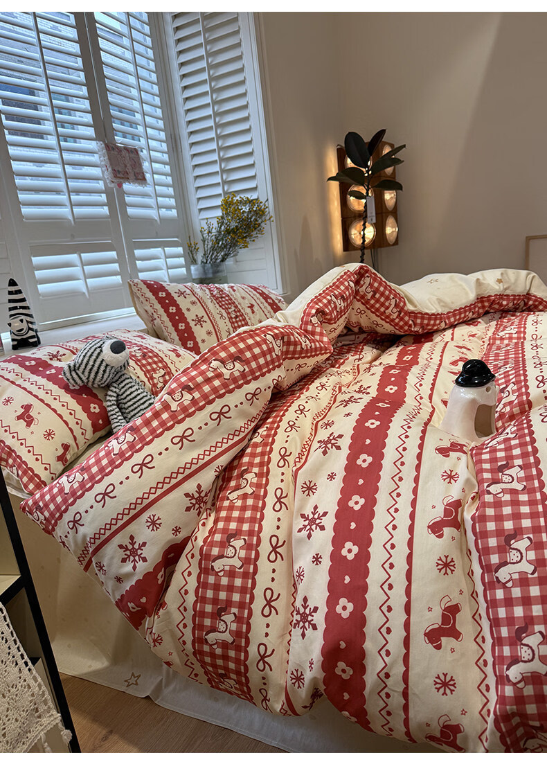 苏萱新年费尔岛小马纯棉床上四件套全棉卡通红色1.8m被套床单品三件套 熊猫总动员 1.8m 床笠款 四件套-被套200x230cm