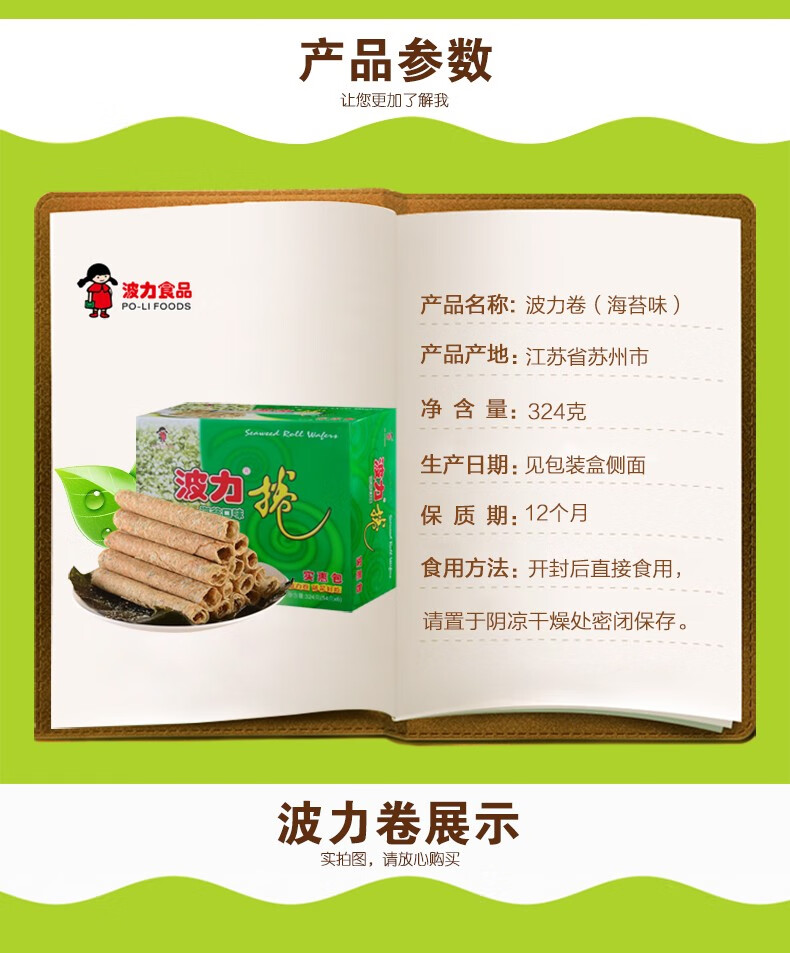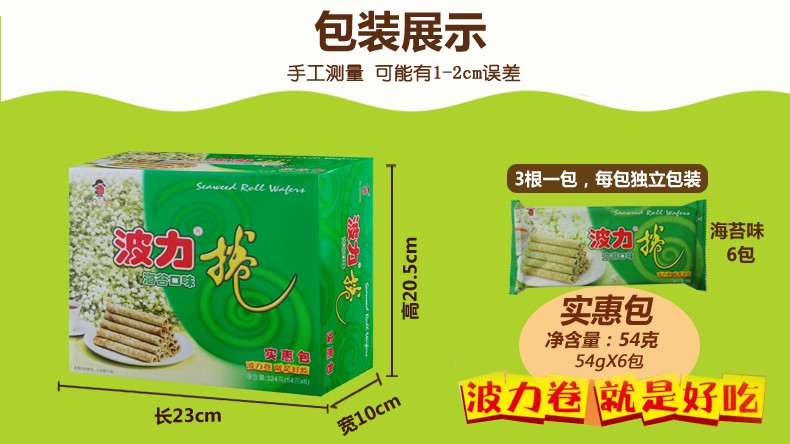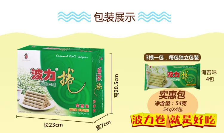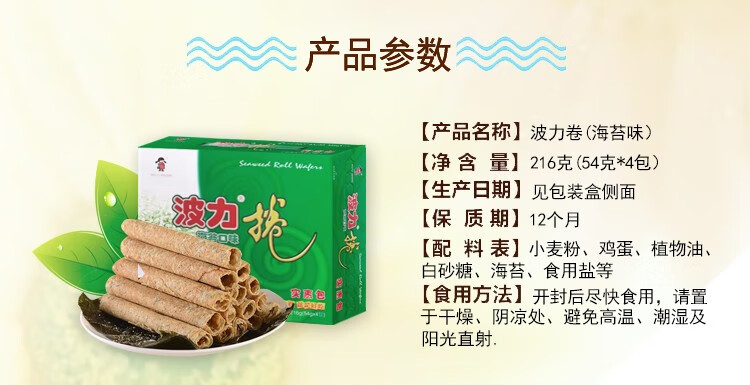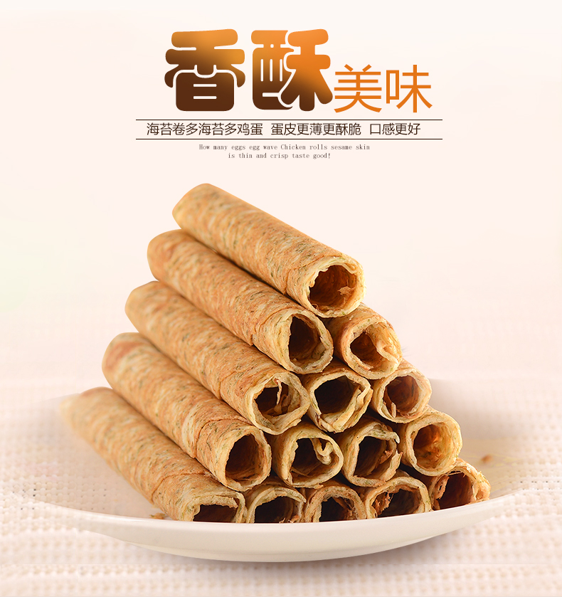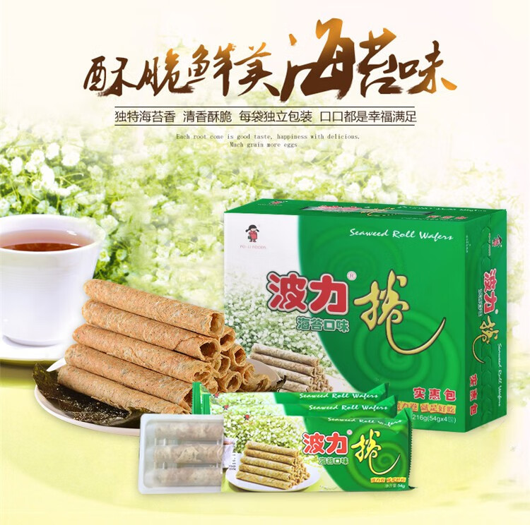 波力海苔蛋卷鸡蛋卷办公室零食代餐饼干小吃糕点海苔味礼盒新年食品 海苔味蛋卷324g(内含6包)