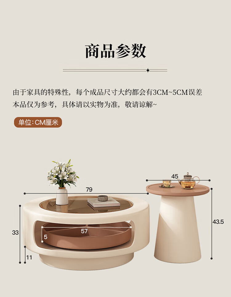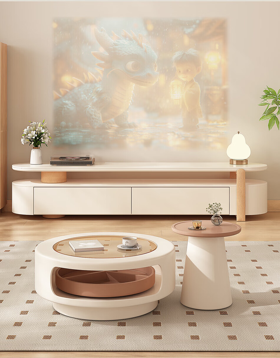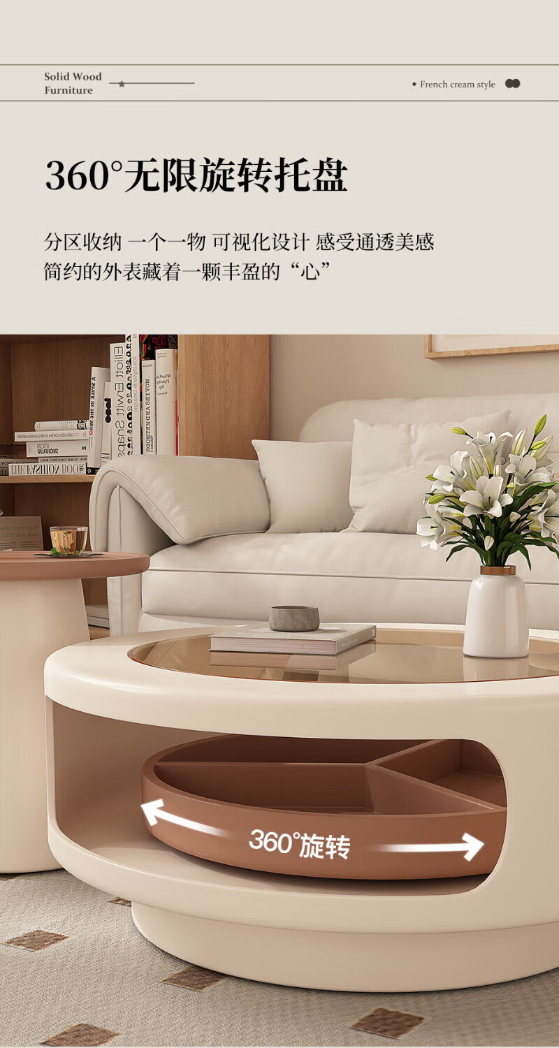 奥维伊琦现代简约岩板茶几客厅家用轻奢2025新款椭圆茶桌网红小户型茶几桌 旋转单茶几