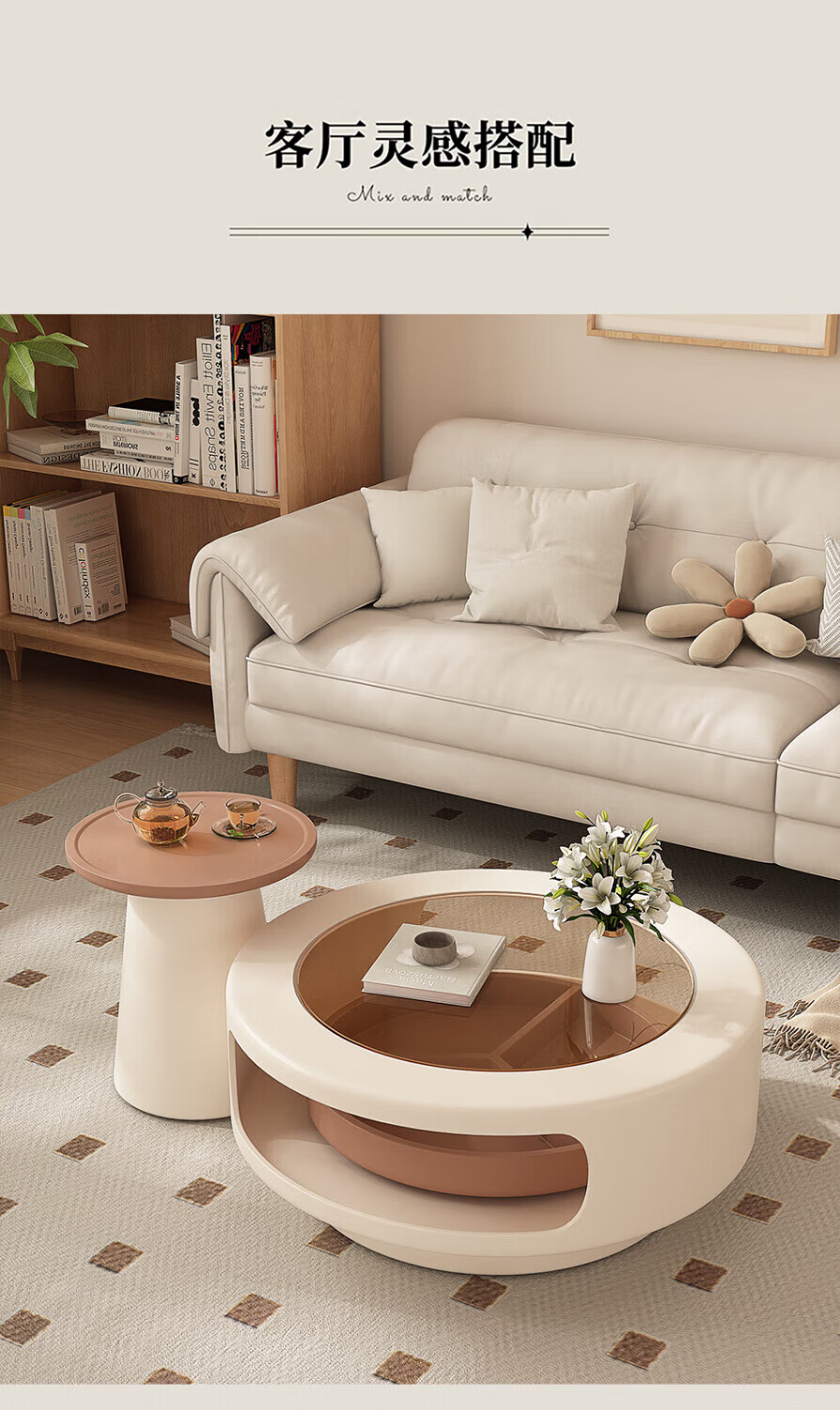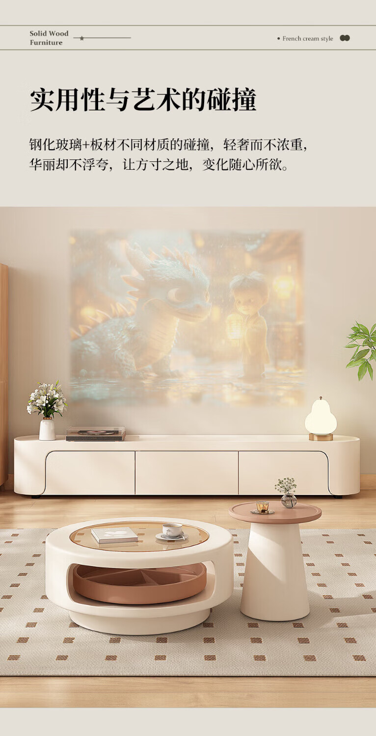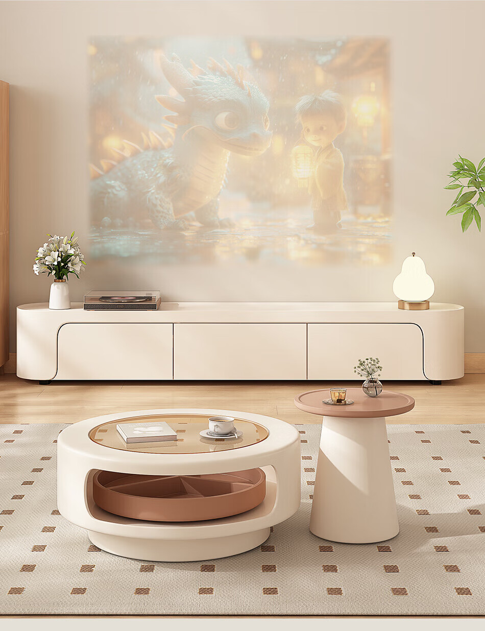 奥维伊琦现代简约岩板茶几客厅家用轻奢2025新款椭圆茶桌网红小户型茶几桌 旋转单茶几