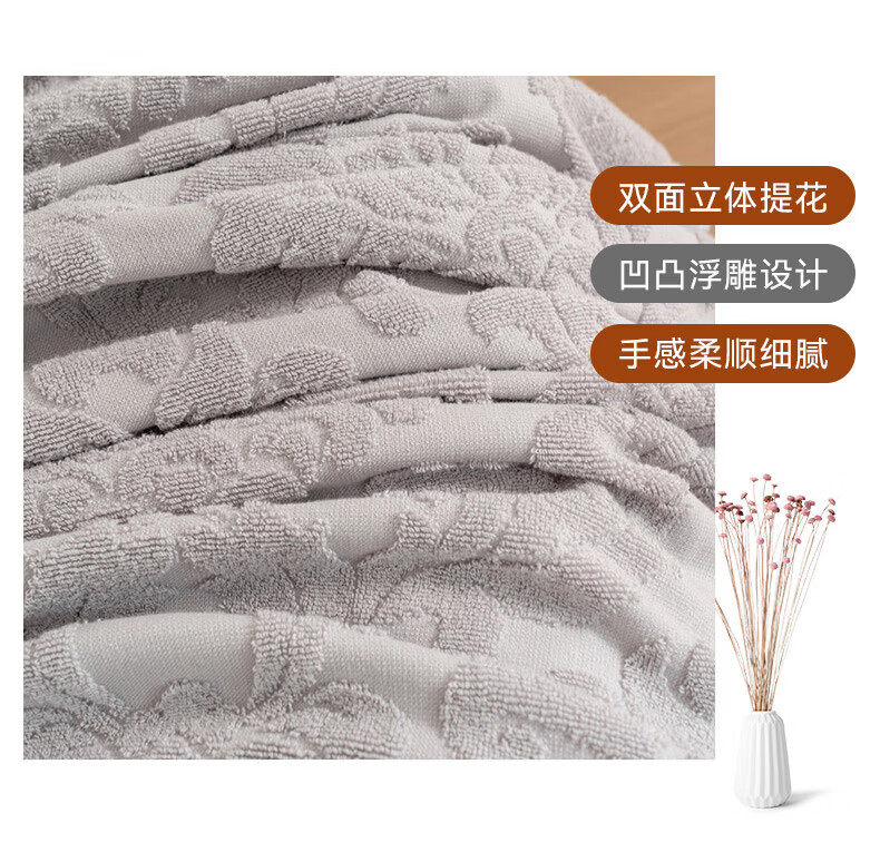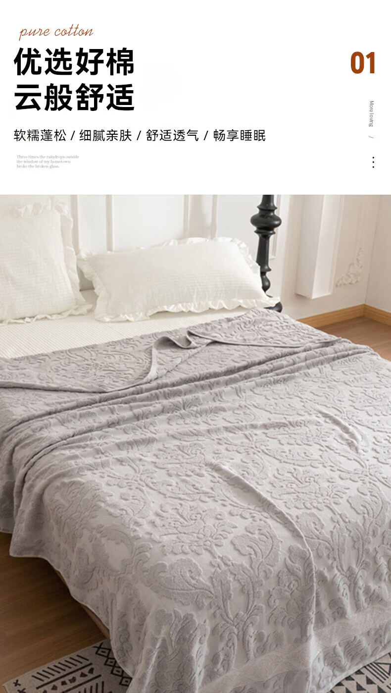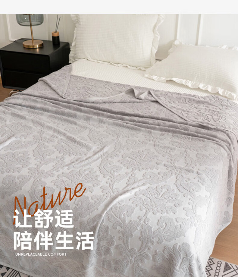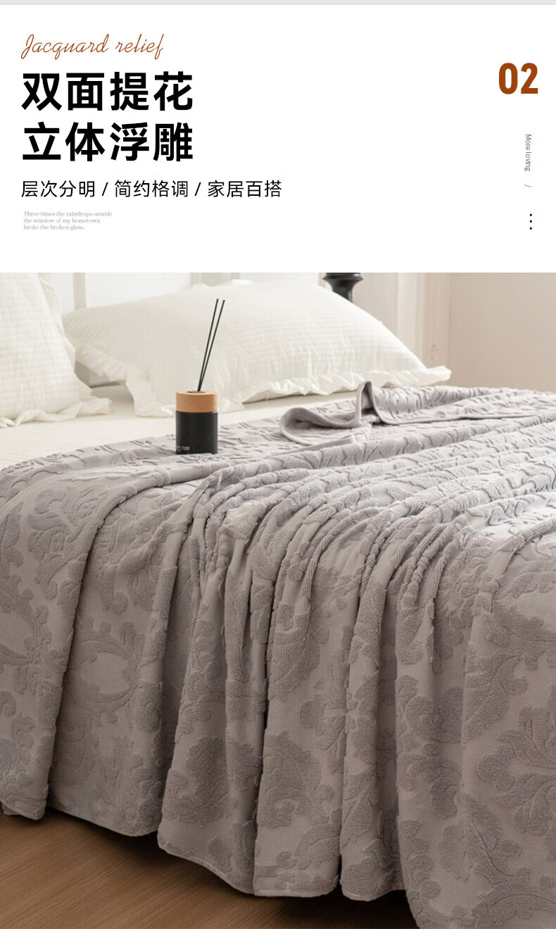 洁丽雅全棉毛巾被纯棉提花沙发毯盖毯毯子被子春秋空调毯老式毛圈暖气被 灰色-浮雕毛圈款 150*200cm【全棉毛巾被】