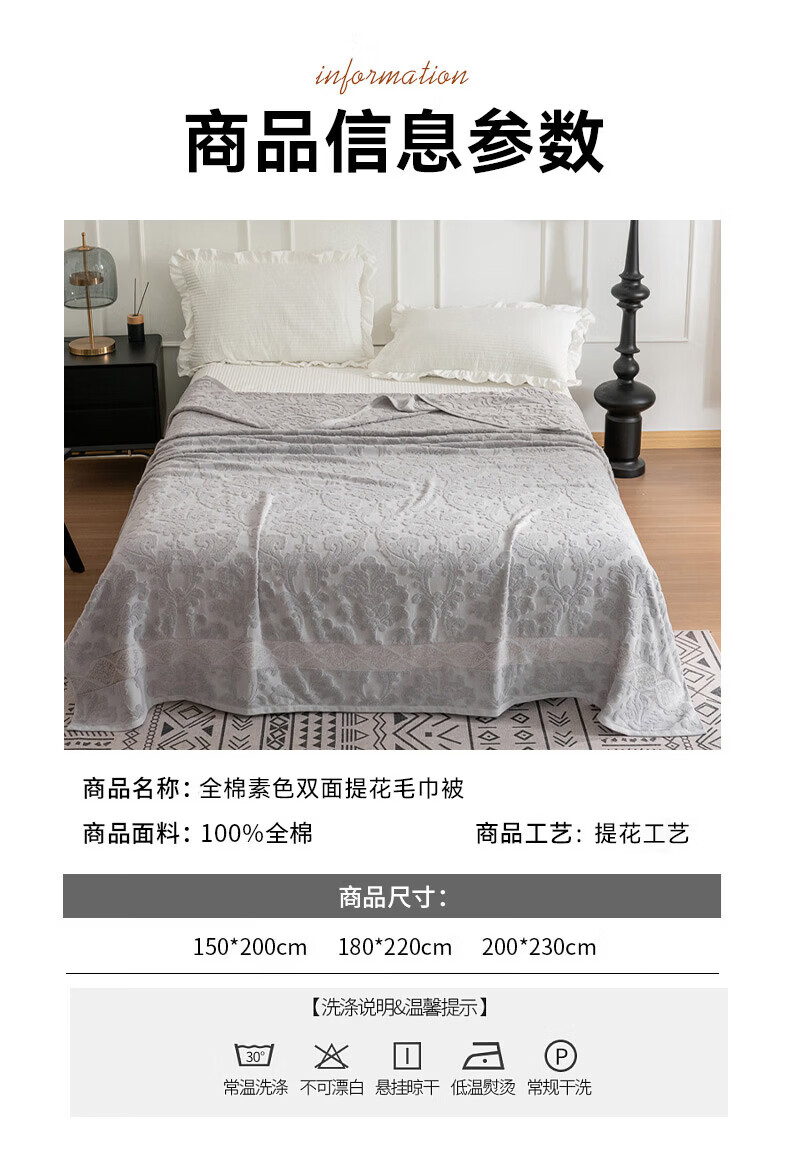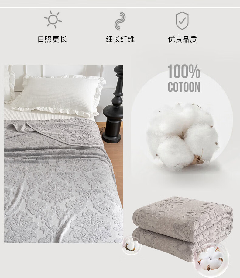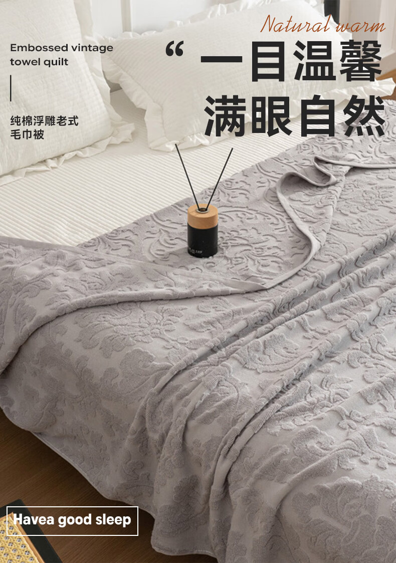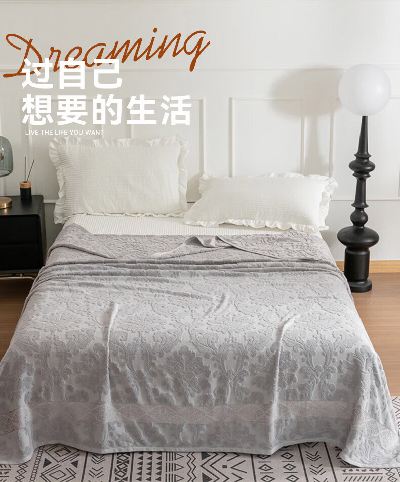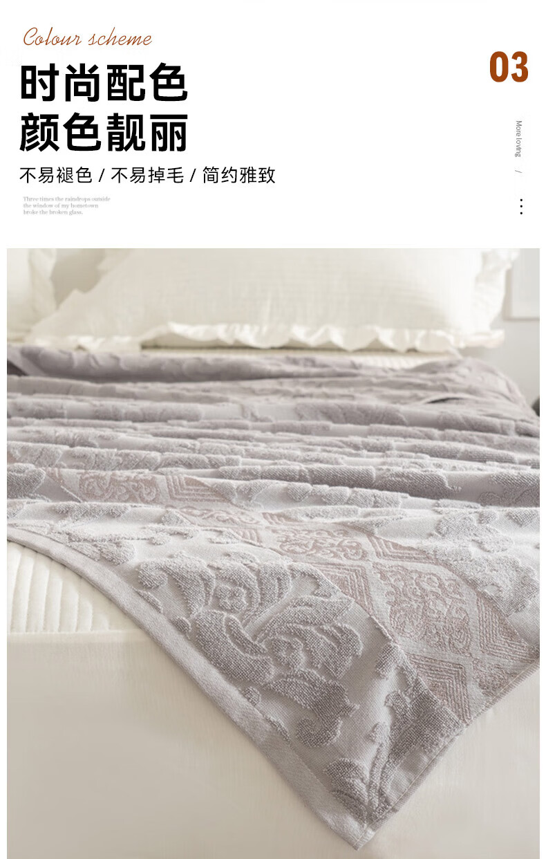 洁丽雅全棉毛巾被纯棉提花沙发毯盖毯毯子被子春秋空调毯老式毛圈暖气被 灰色-浮雕毛圈款 150*200cm【全棉毛巾被】