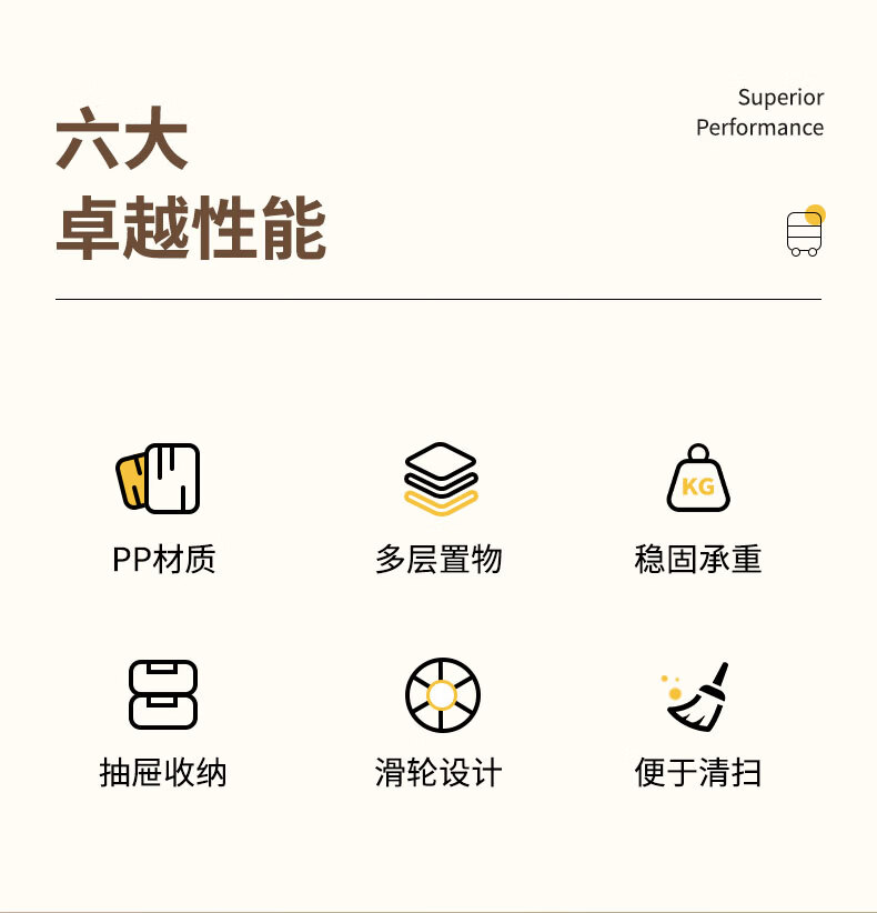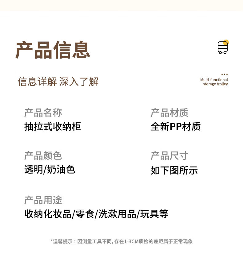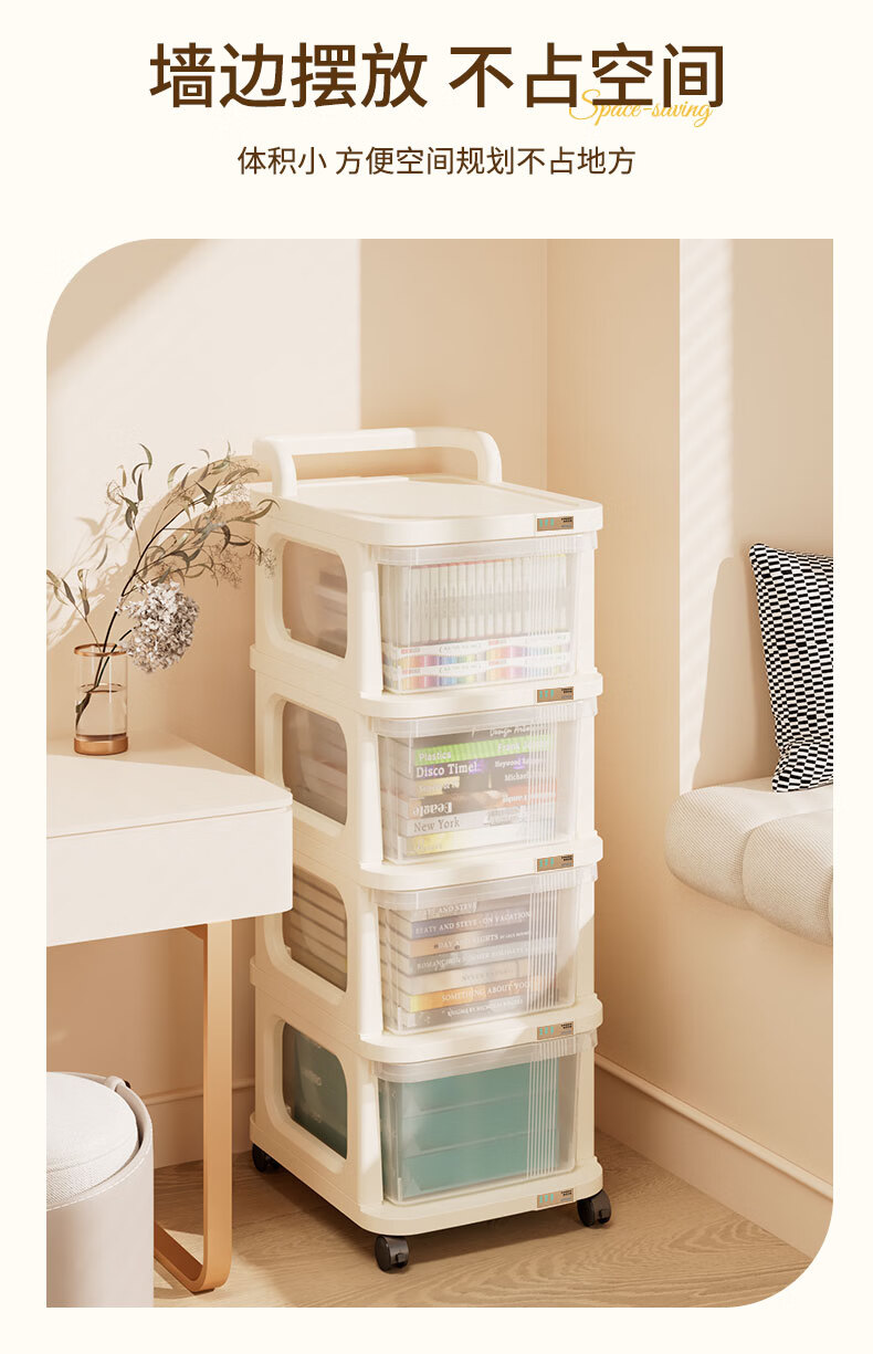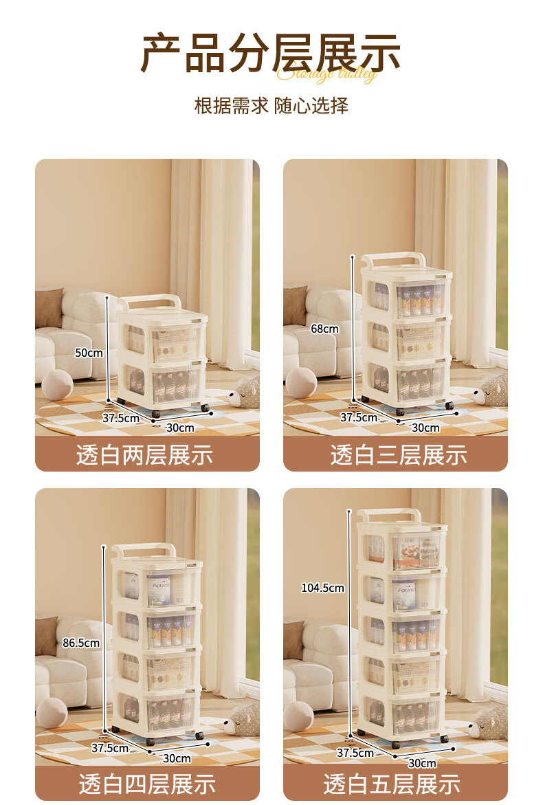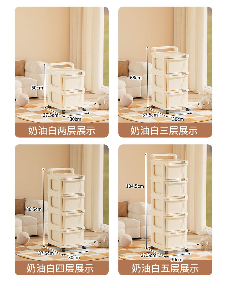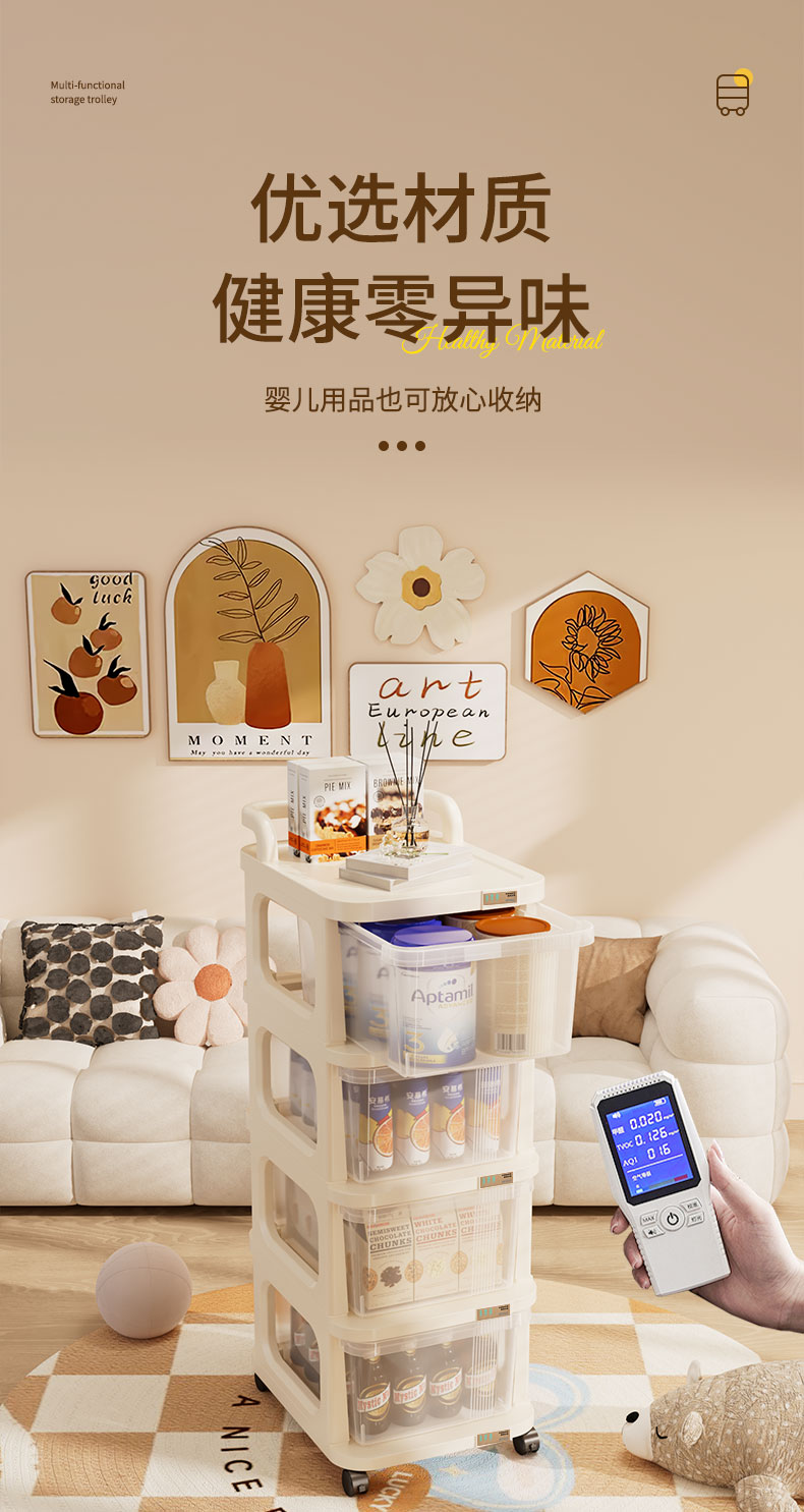 稻草熊可移动小推车整理收纳架家用客厅卧室极简轻奢落地多功能置物架子 奶油白【2层】