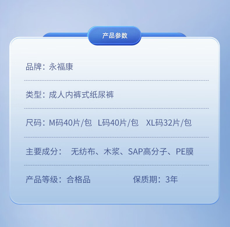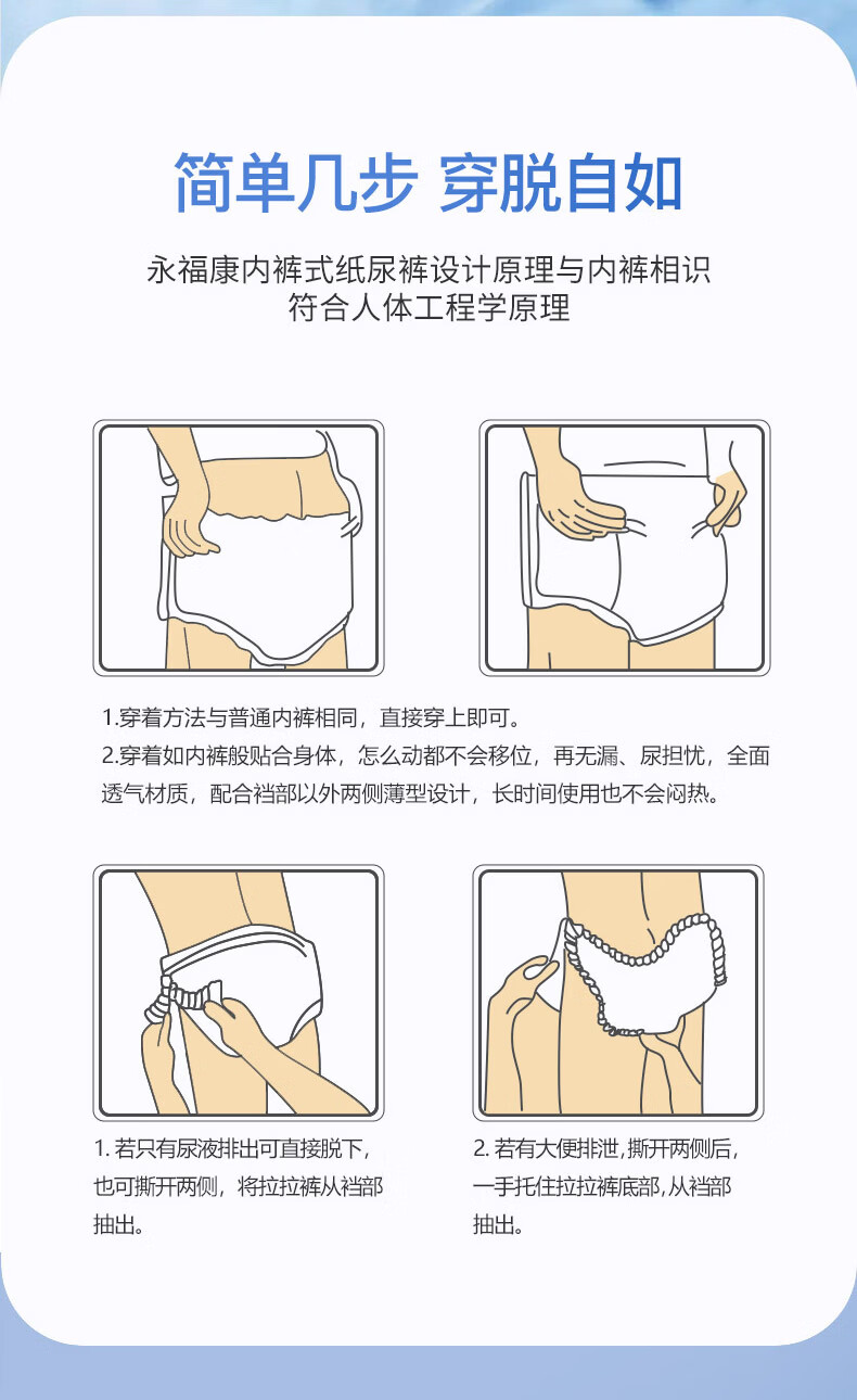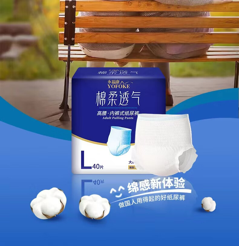 永福康绵柔透气成人拉拉裤L40片 臀围80-120cm 老人孕产妇内裤型纸尿裤