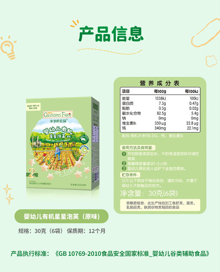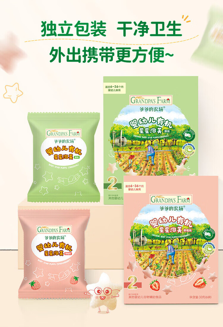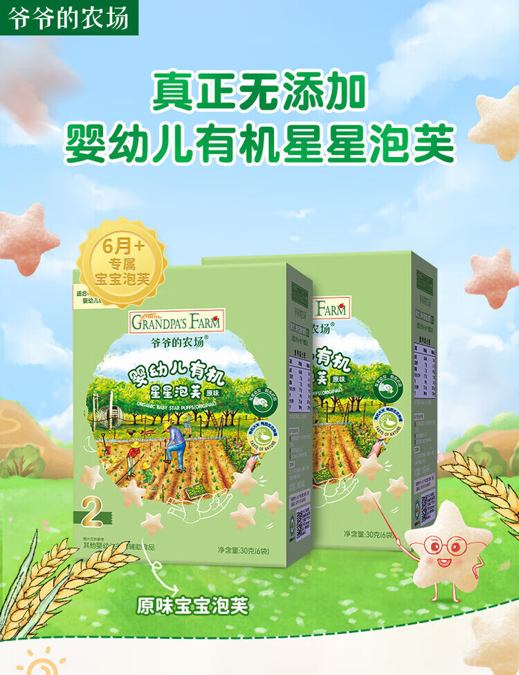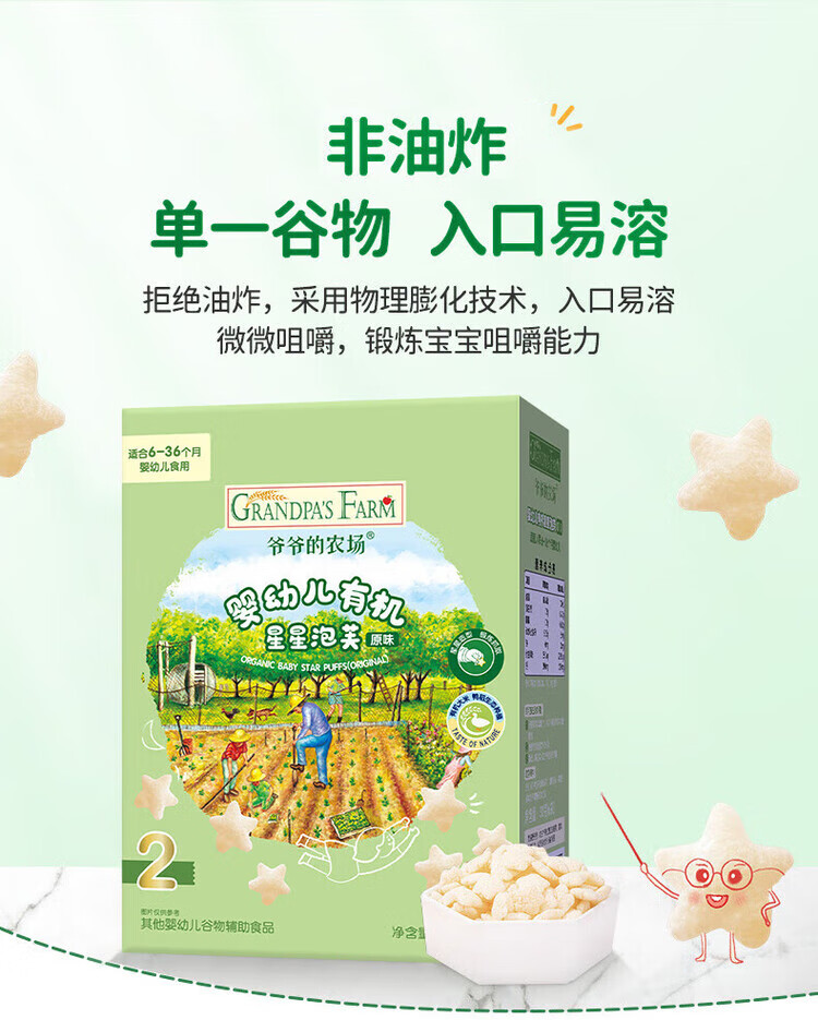 爷爷的农场儿童泡芙零食 有机星星泡芙冻干 宝宝解馋鳕鱼肠辅食零食 【有机婴标】星星泡芙原味