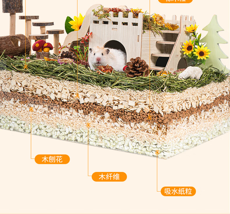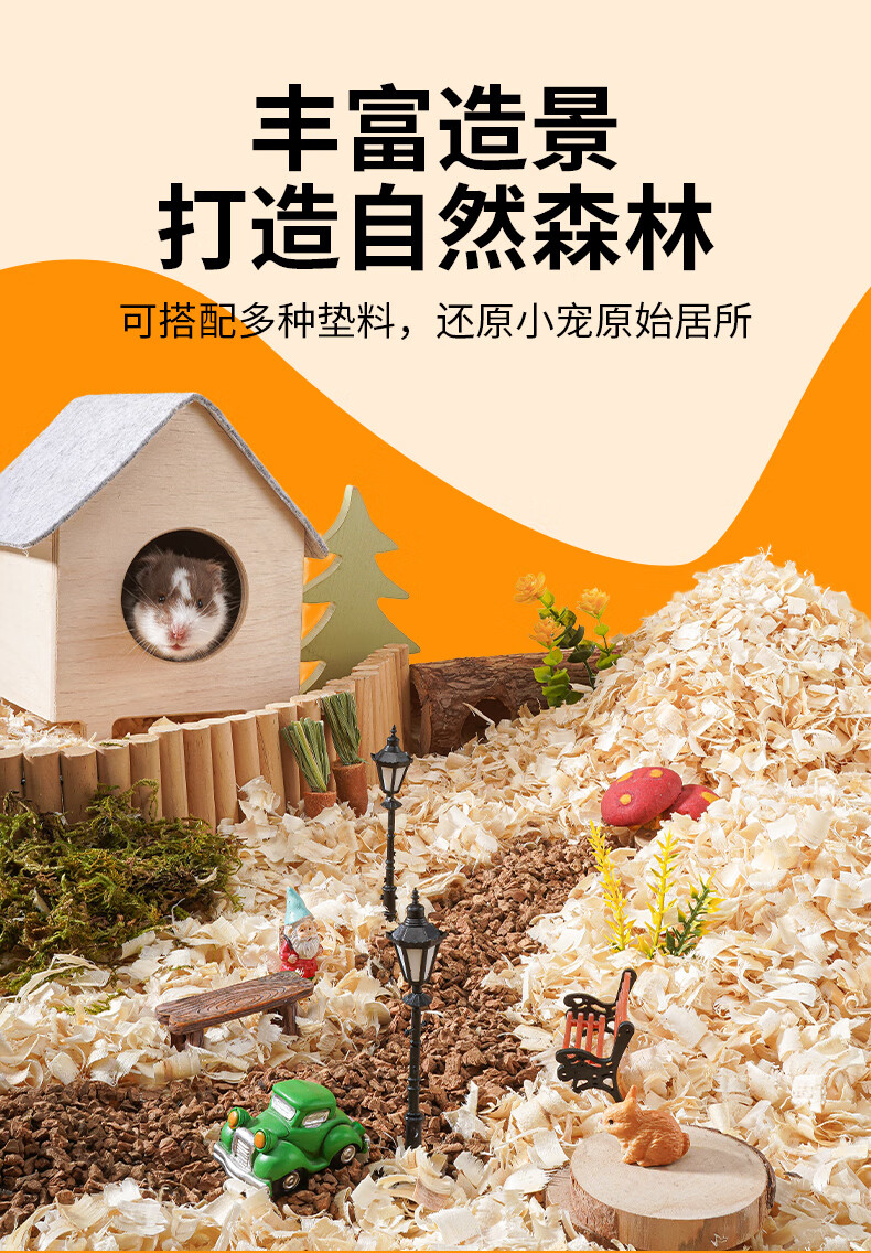 比克熊 白杨木刨花仓鼠木屑垫料蓬松低尘祛味吸尿造景垫材1kg