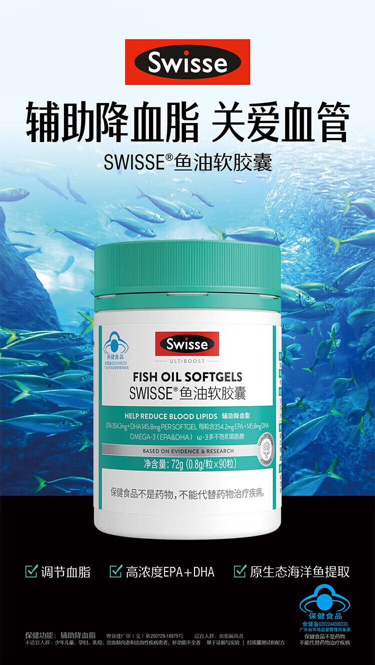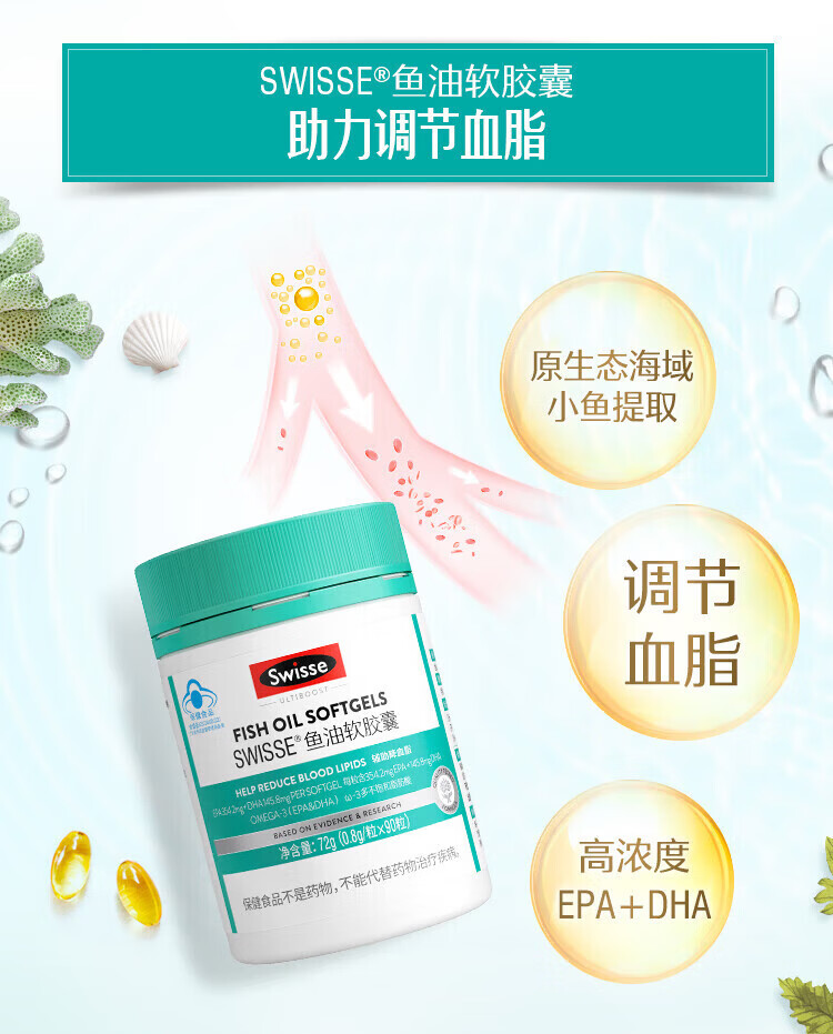 Swisse斯维诗深海鱼油礼盒成人中老年保健品鱼油钙片过年礼盒送长辈礼物 鱼油软胶囊 90粒*1瓶