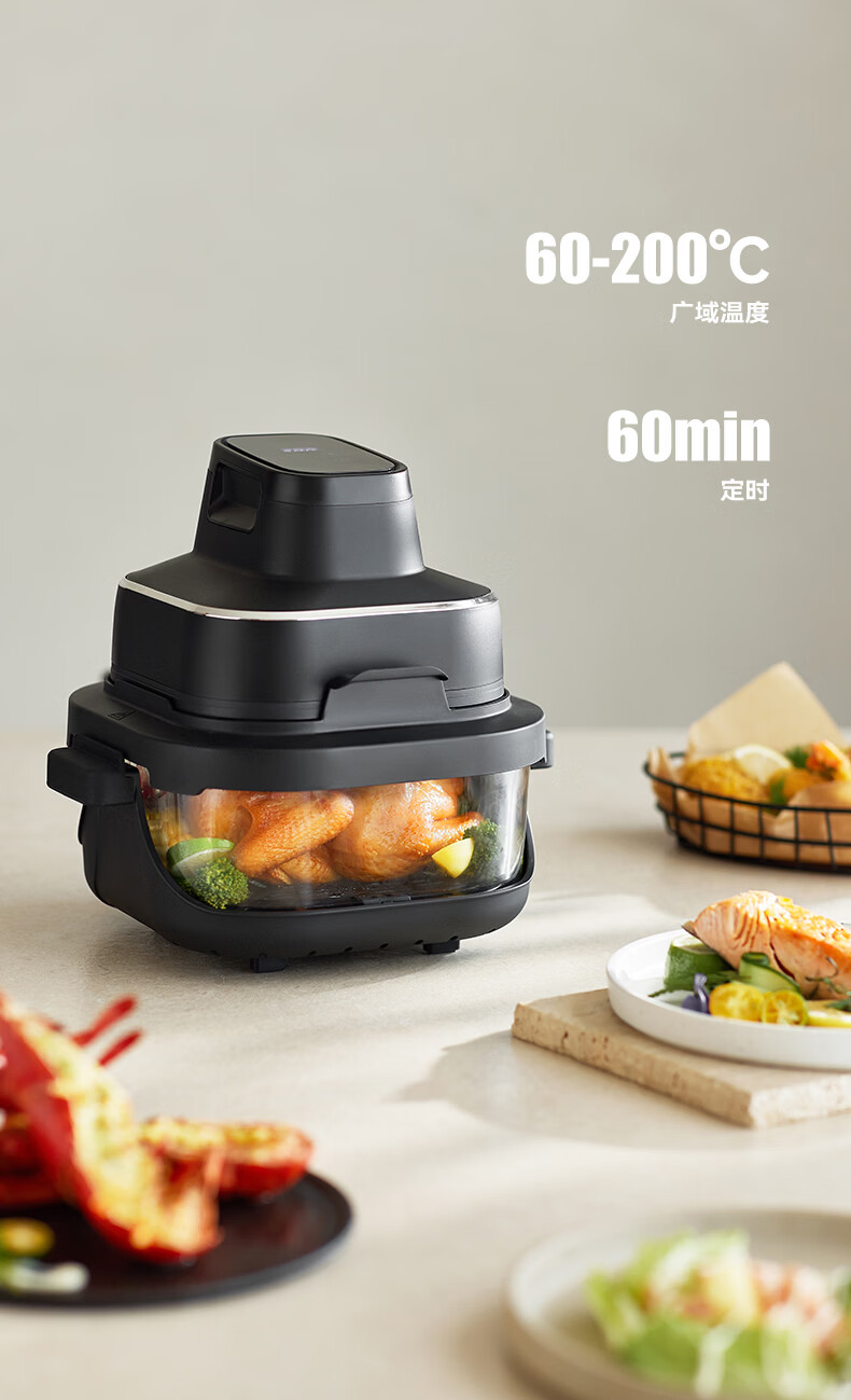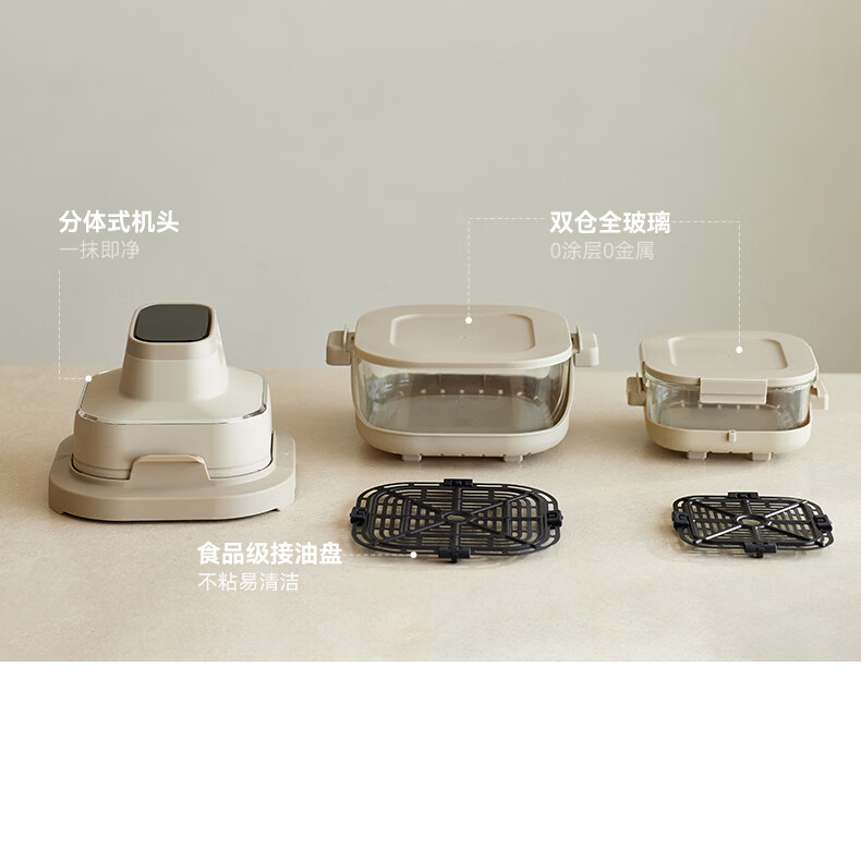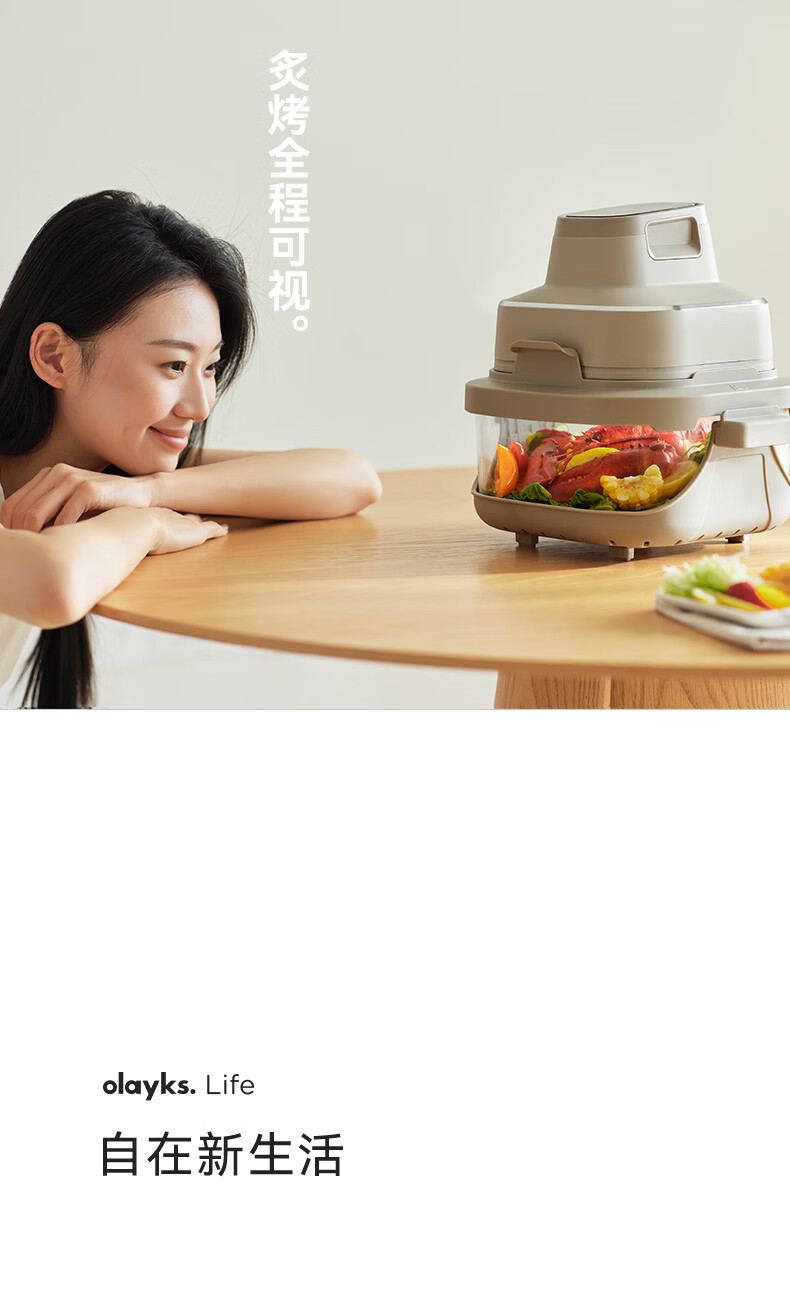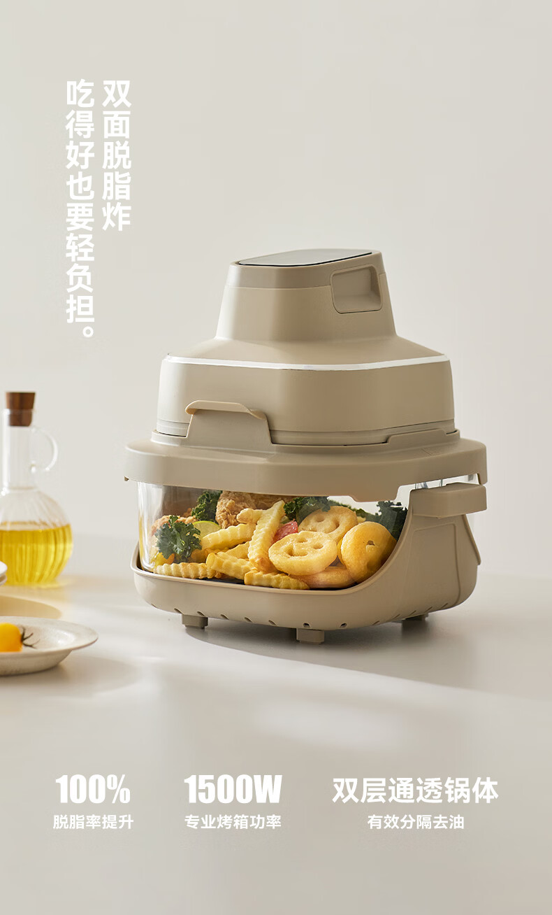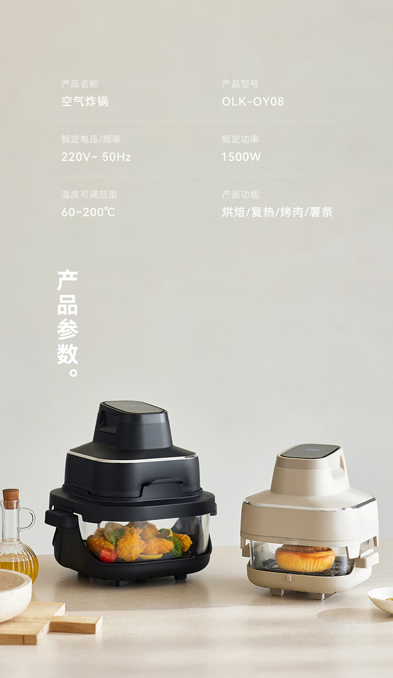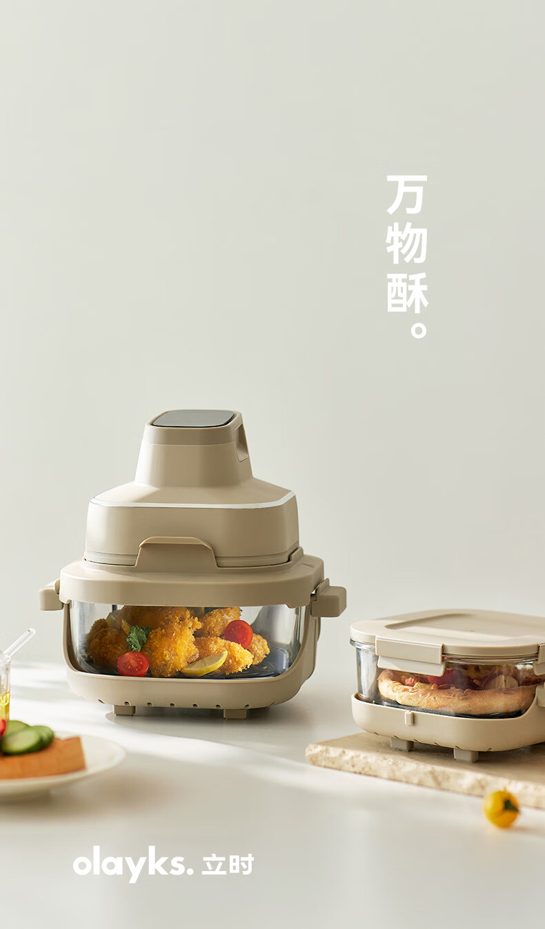 olayks立时 空气炸锅 双层炸锅 家用分体空气炸锅智能触控多功能玻璃无涂层可外带5.5L 大地色