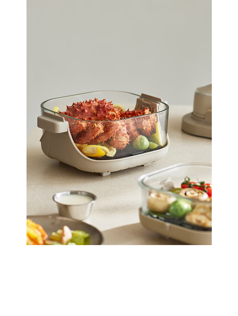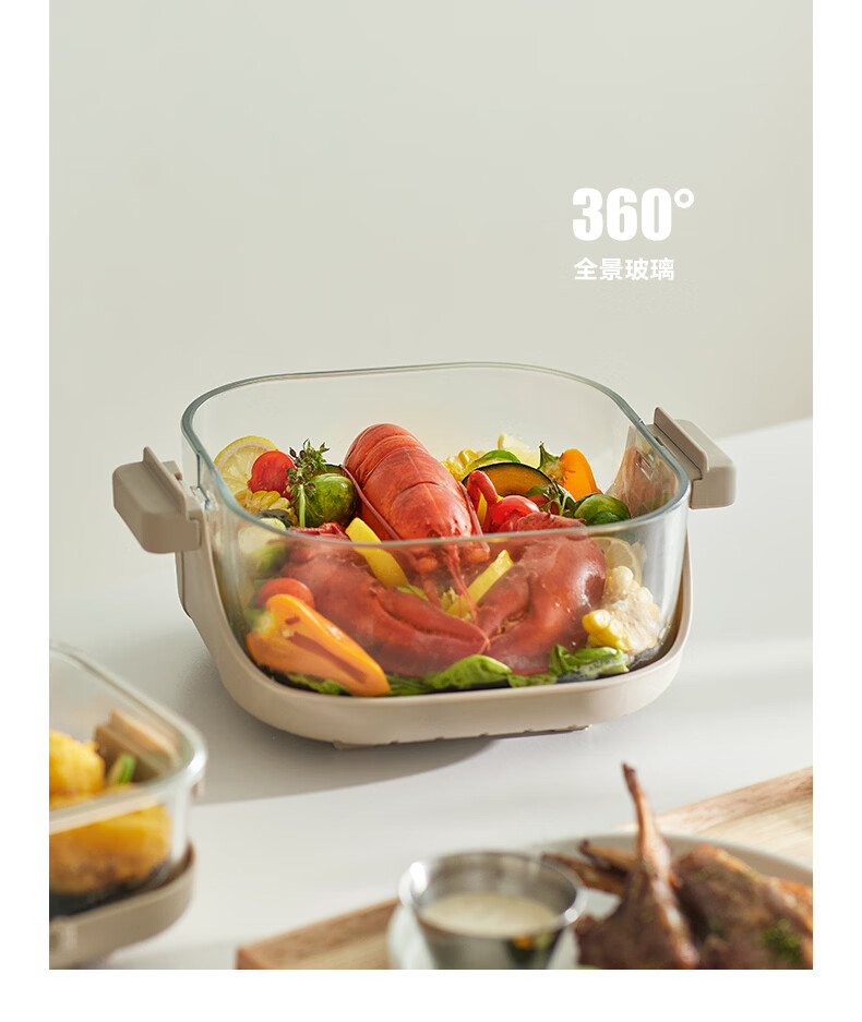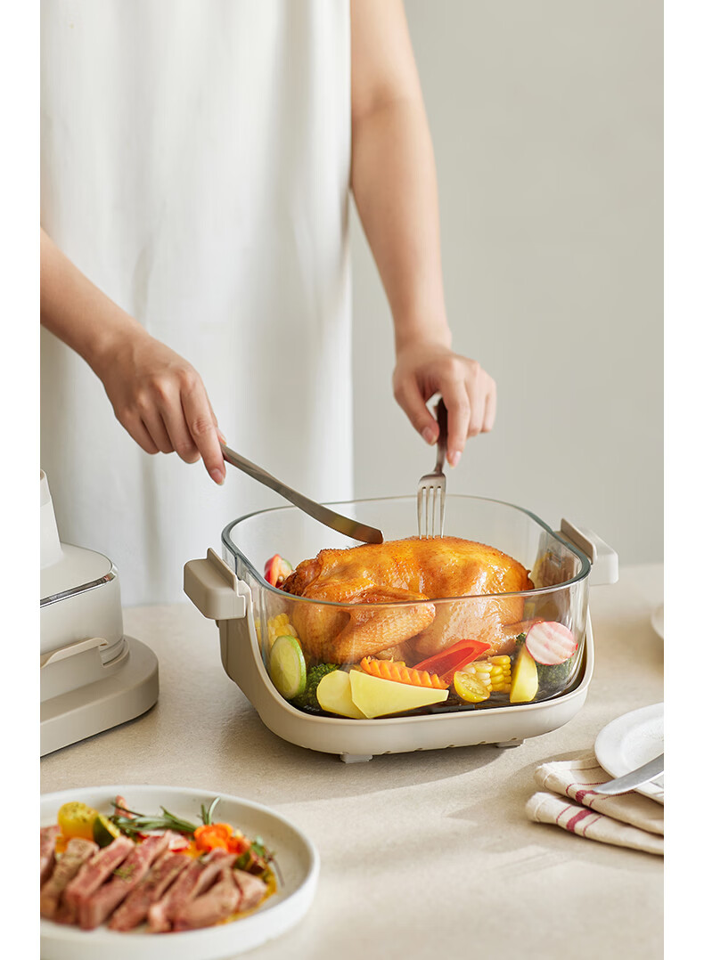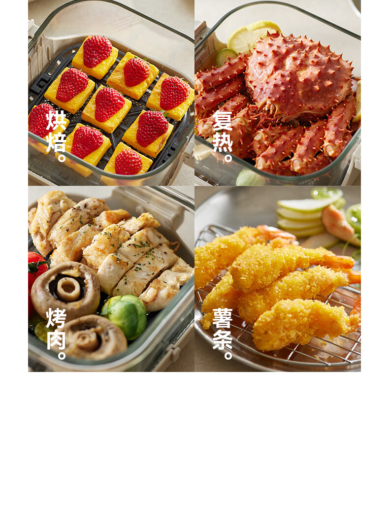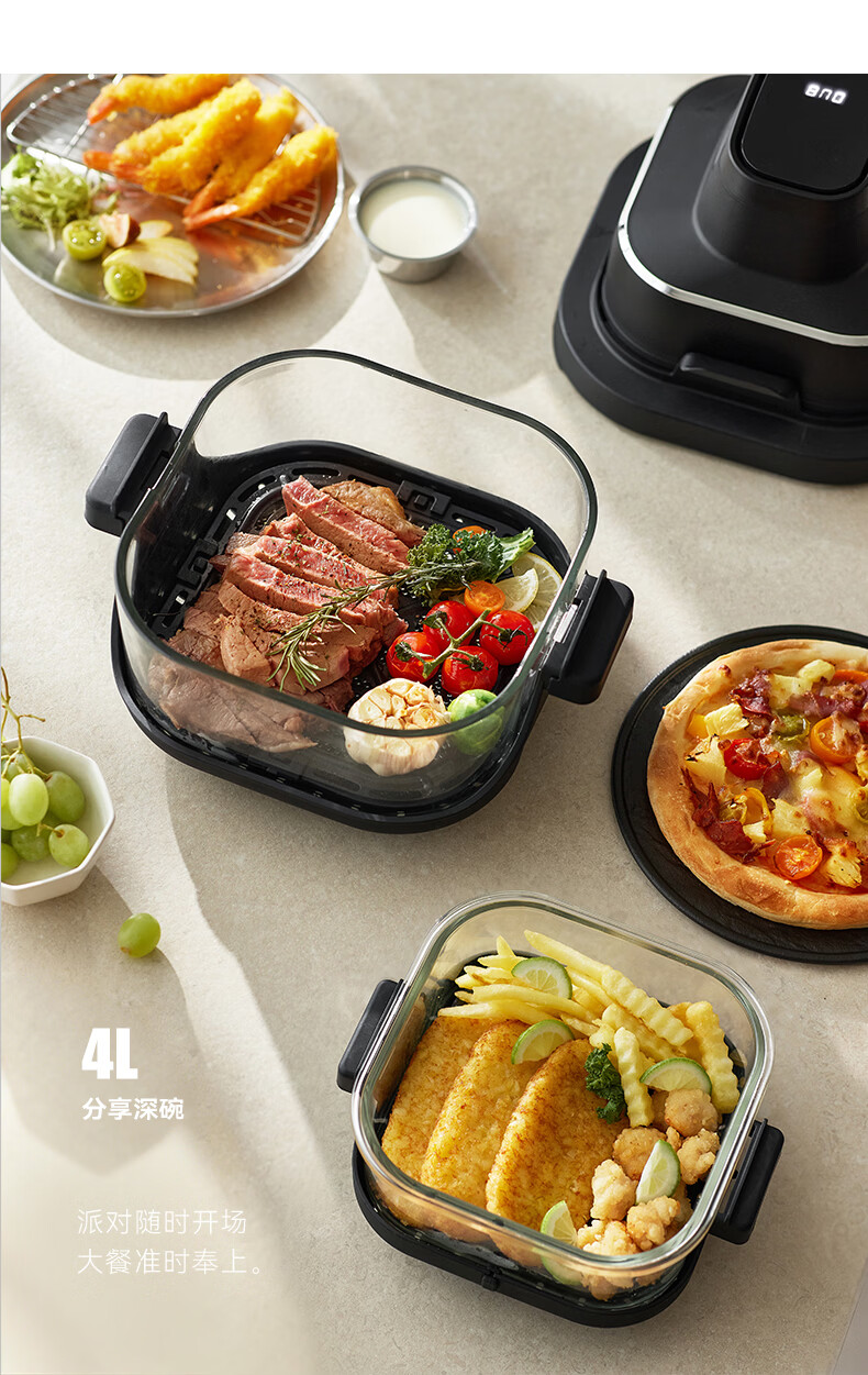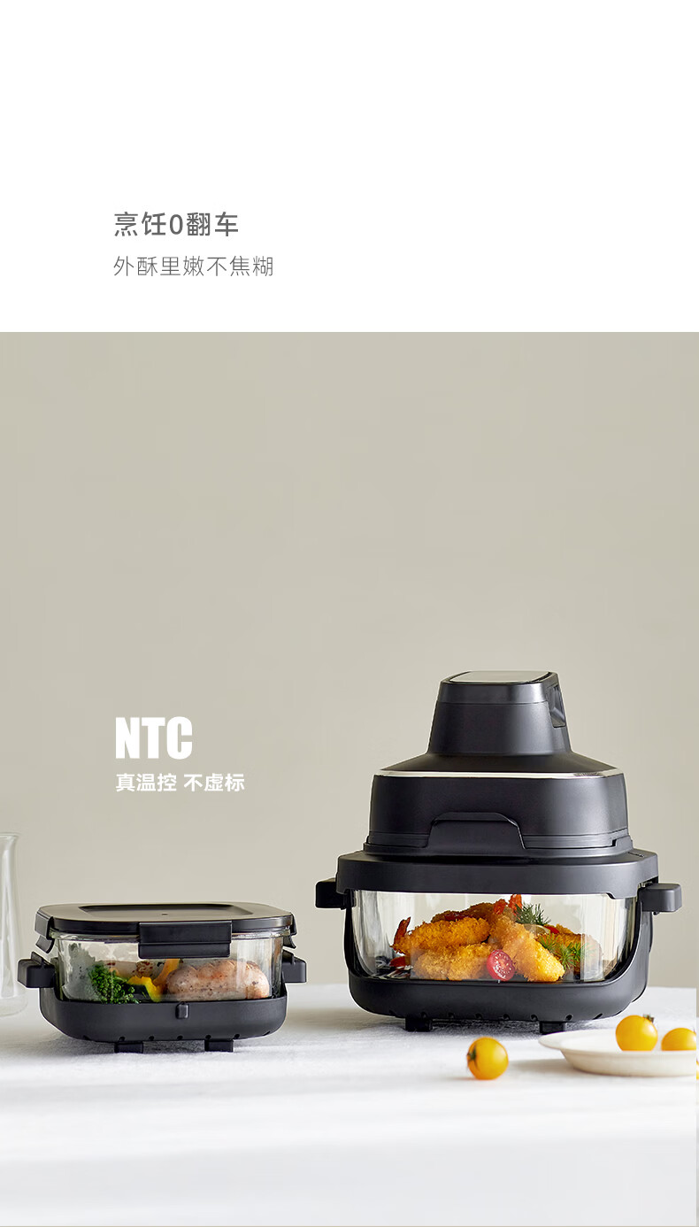 olayks立时 空气炸锅 双层炸锅 家用分体空气炸锅智能触控多功能玻璃无涂层可外带5.5L 大地色