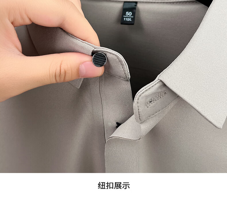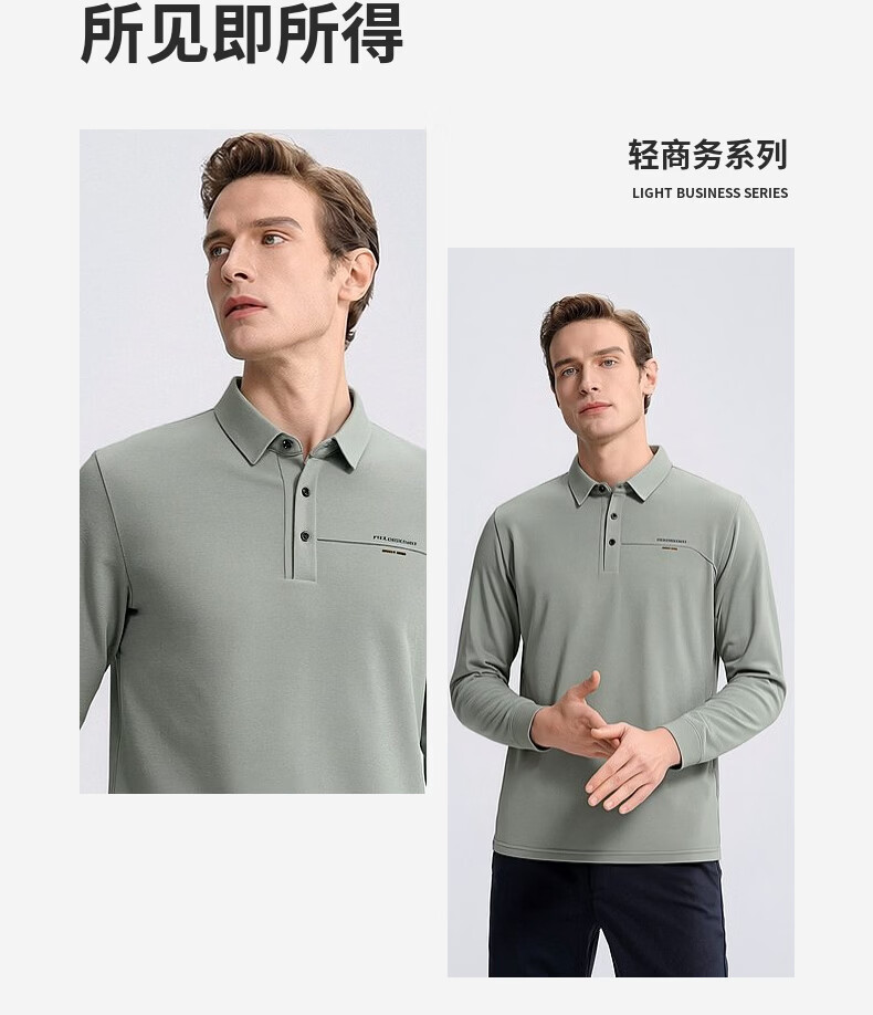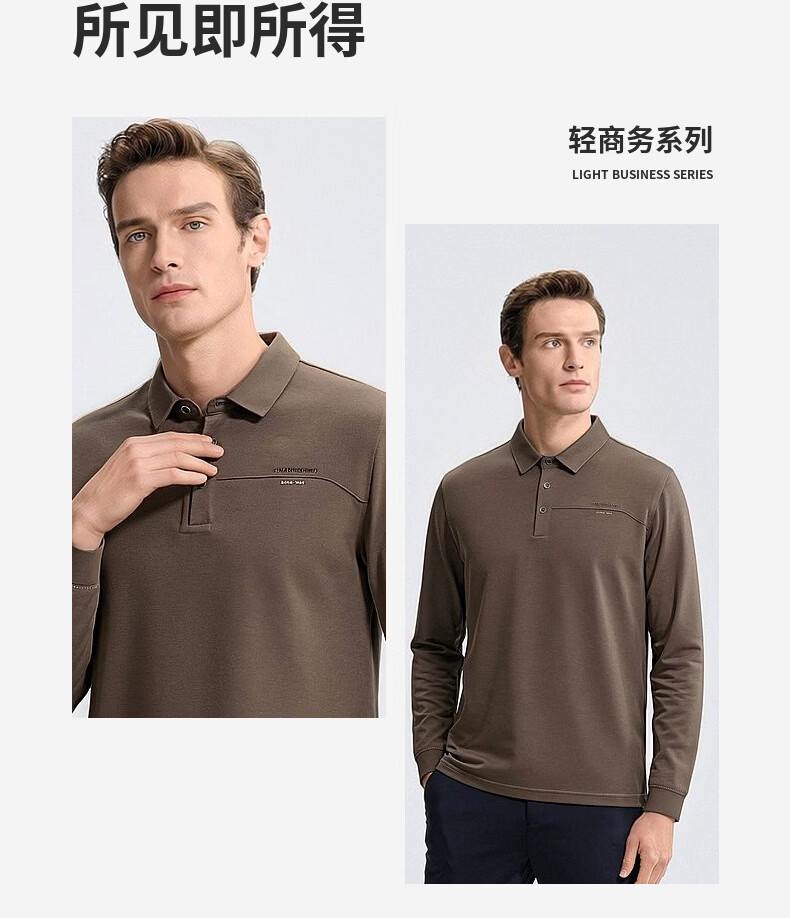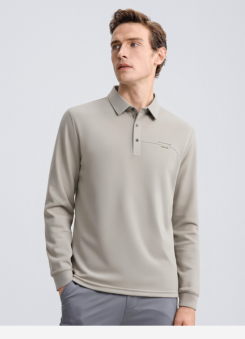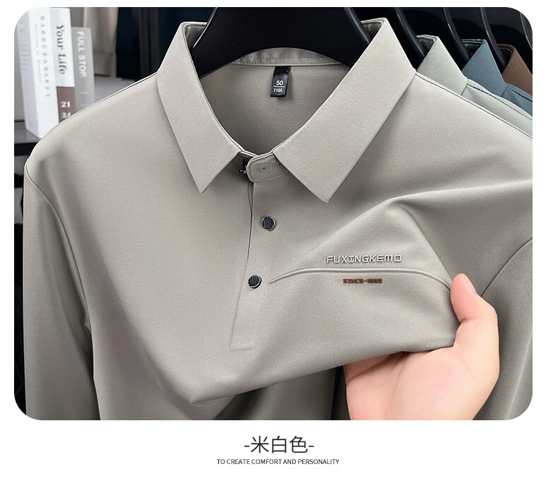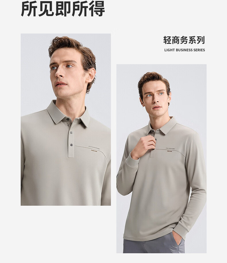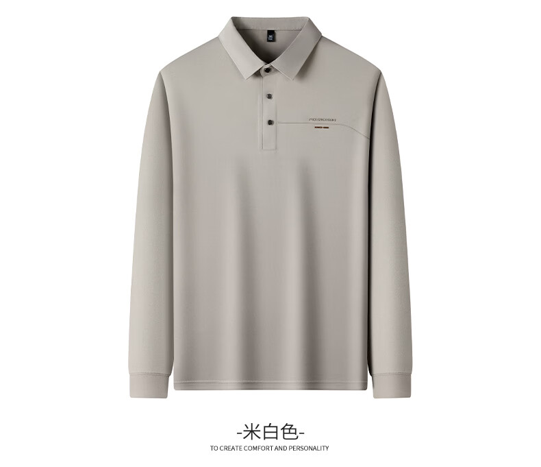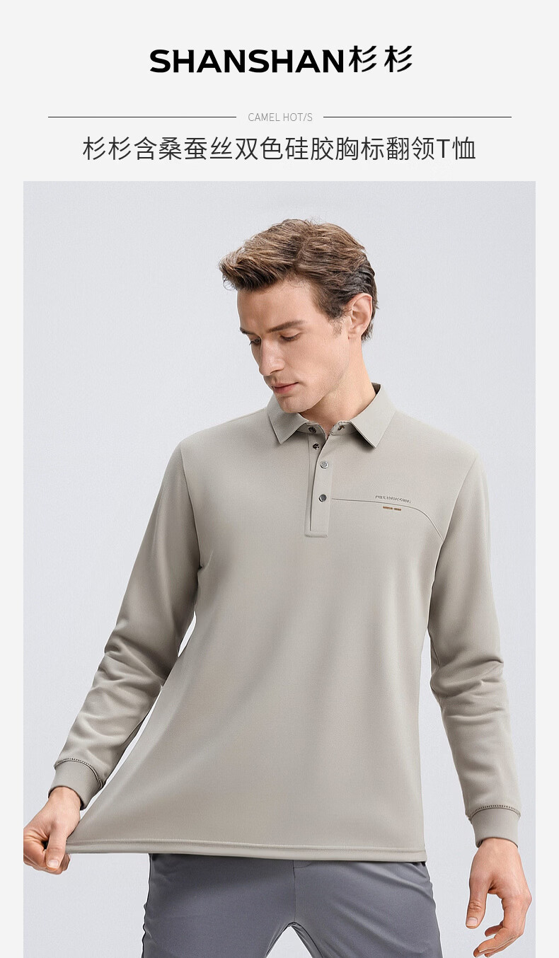 SHANSHAN杉杉【桑蚕丝锦氨弹力】长袖t恤男翻领POLO衫商务休闲易打理春秋 米白色 L /175