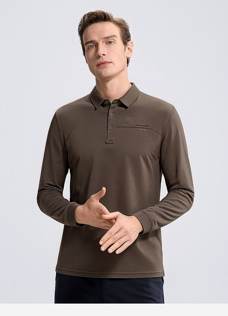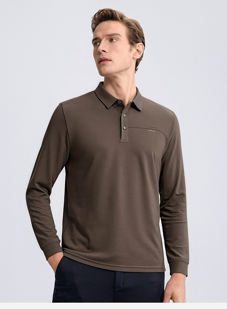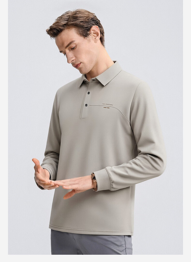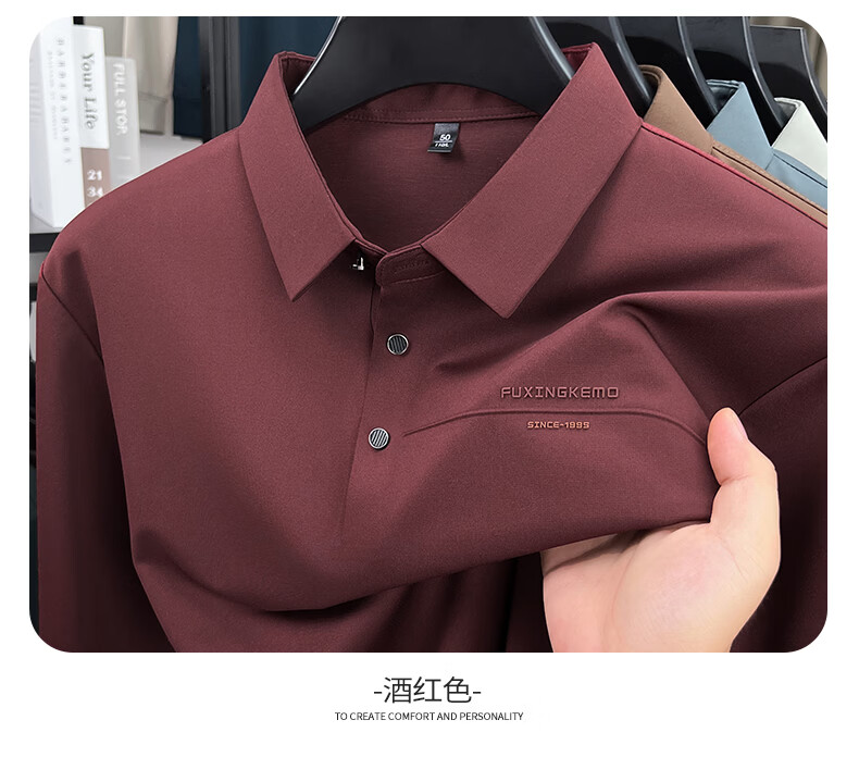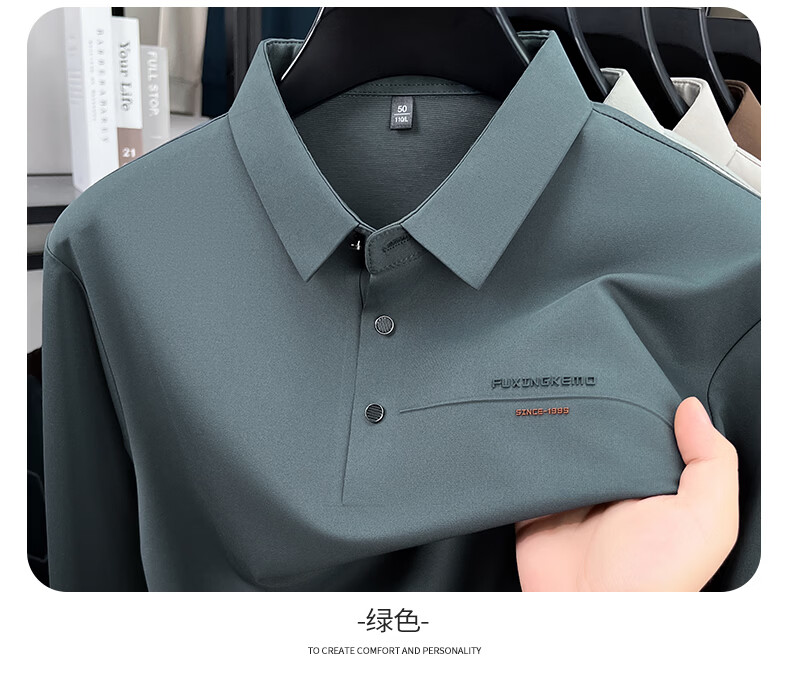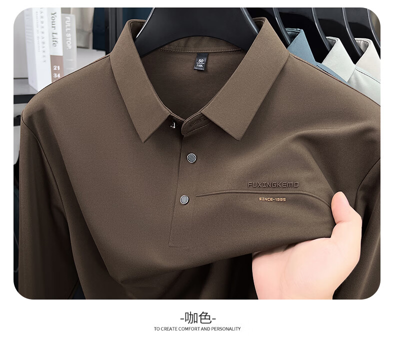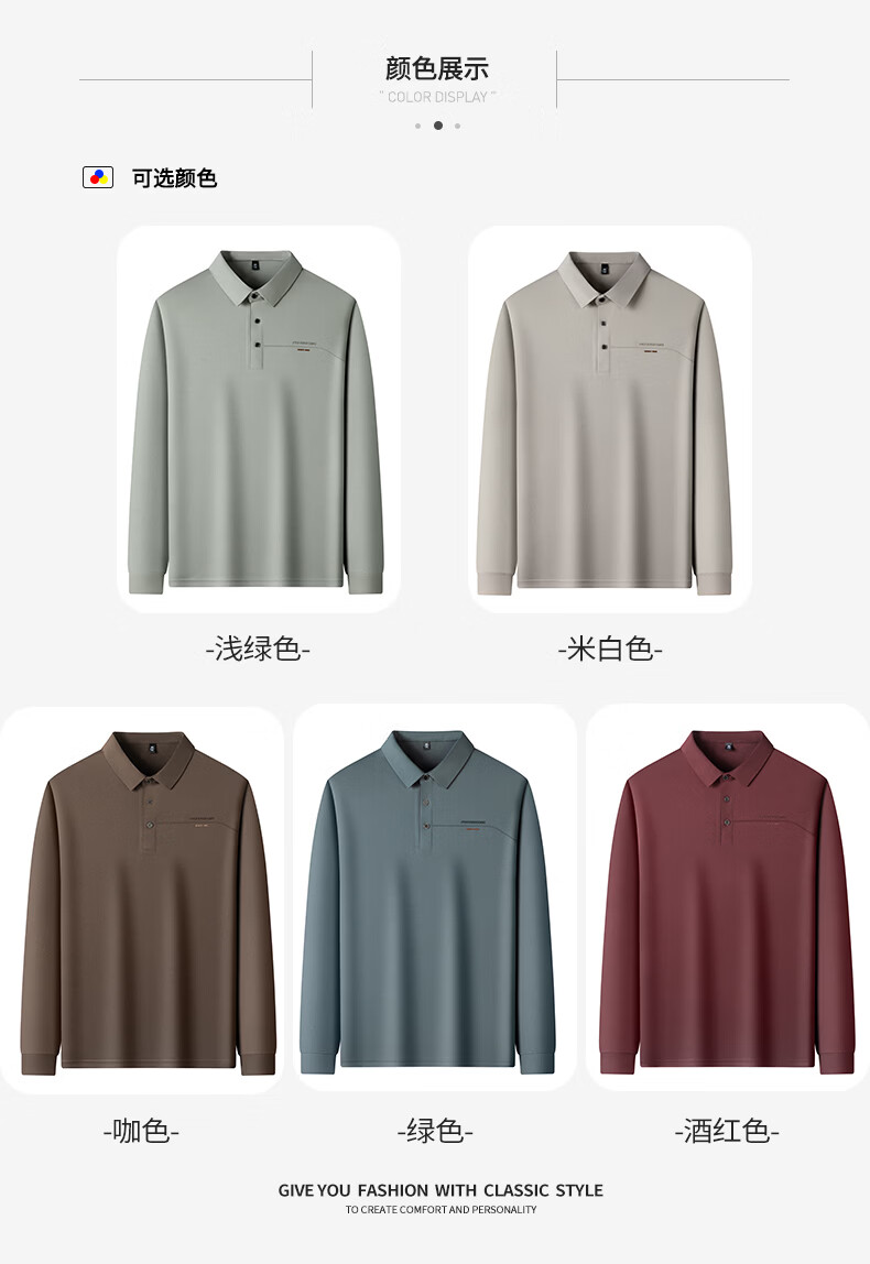 SHANSHAN杉杉【桑蚕丝锦氨弹力】长袖t恤男翻领POLO衫商务休闲易打理春秋 米白色 L /175
