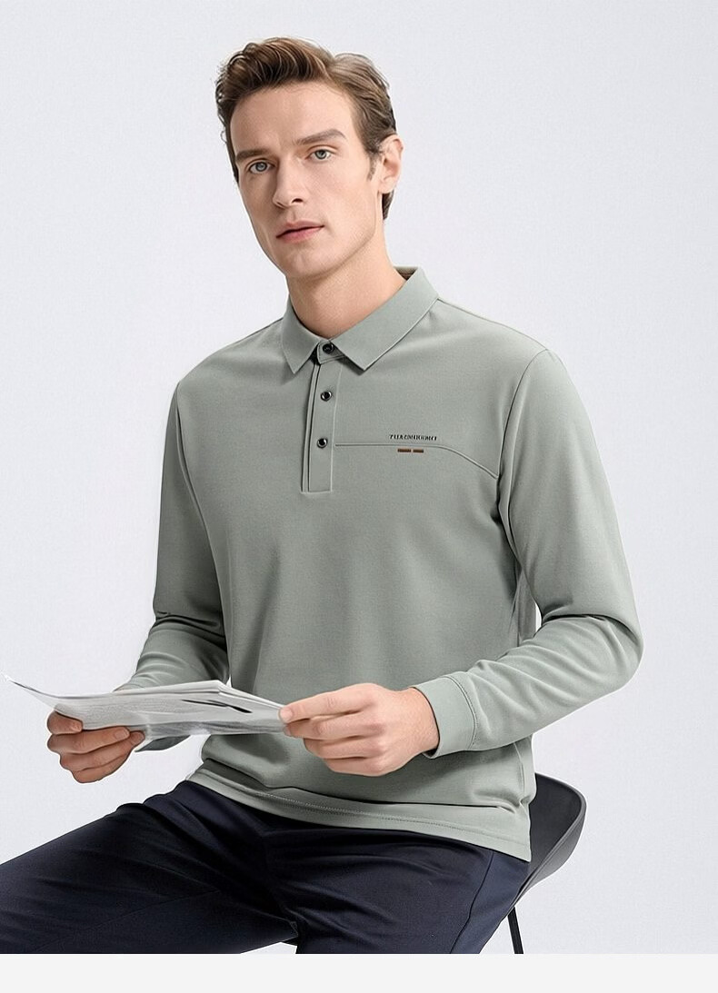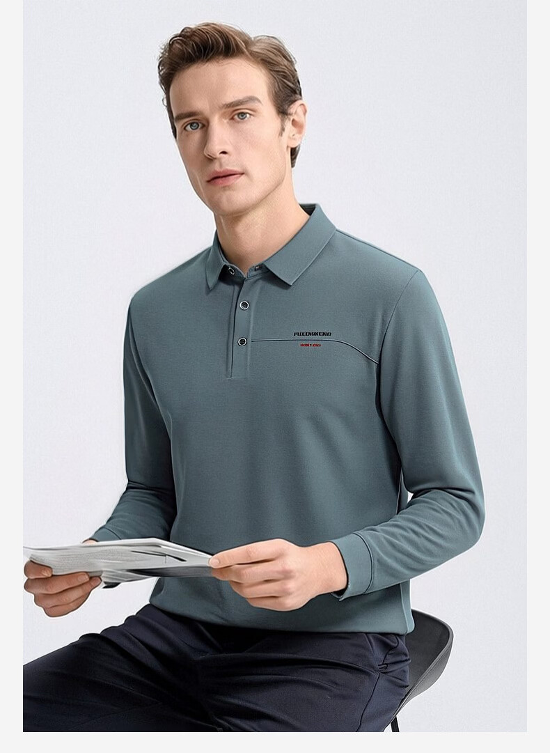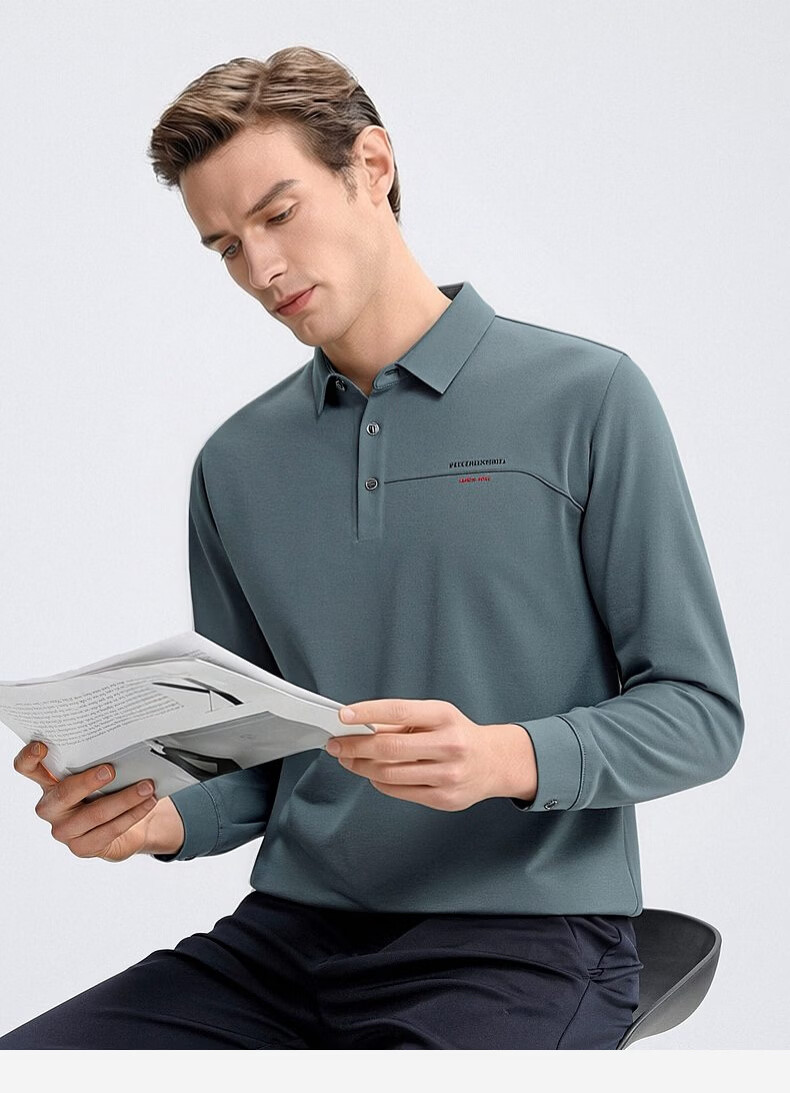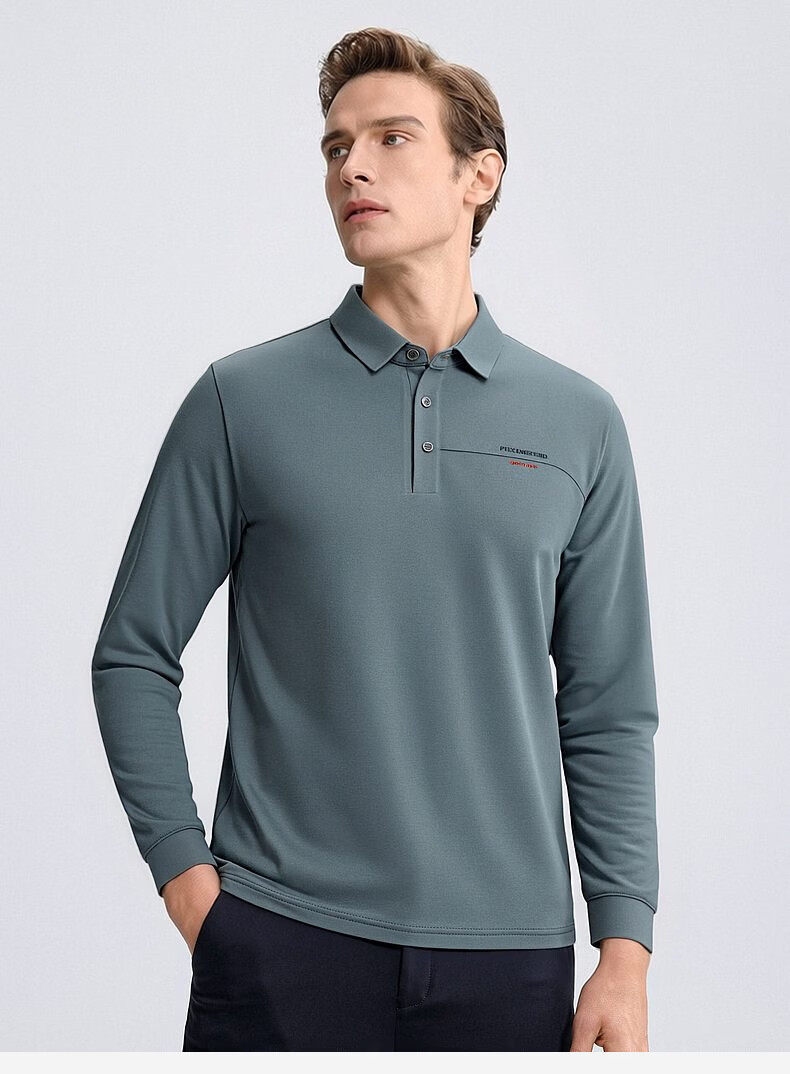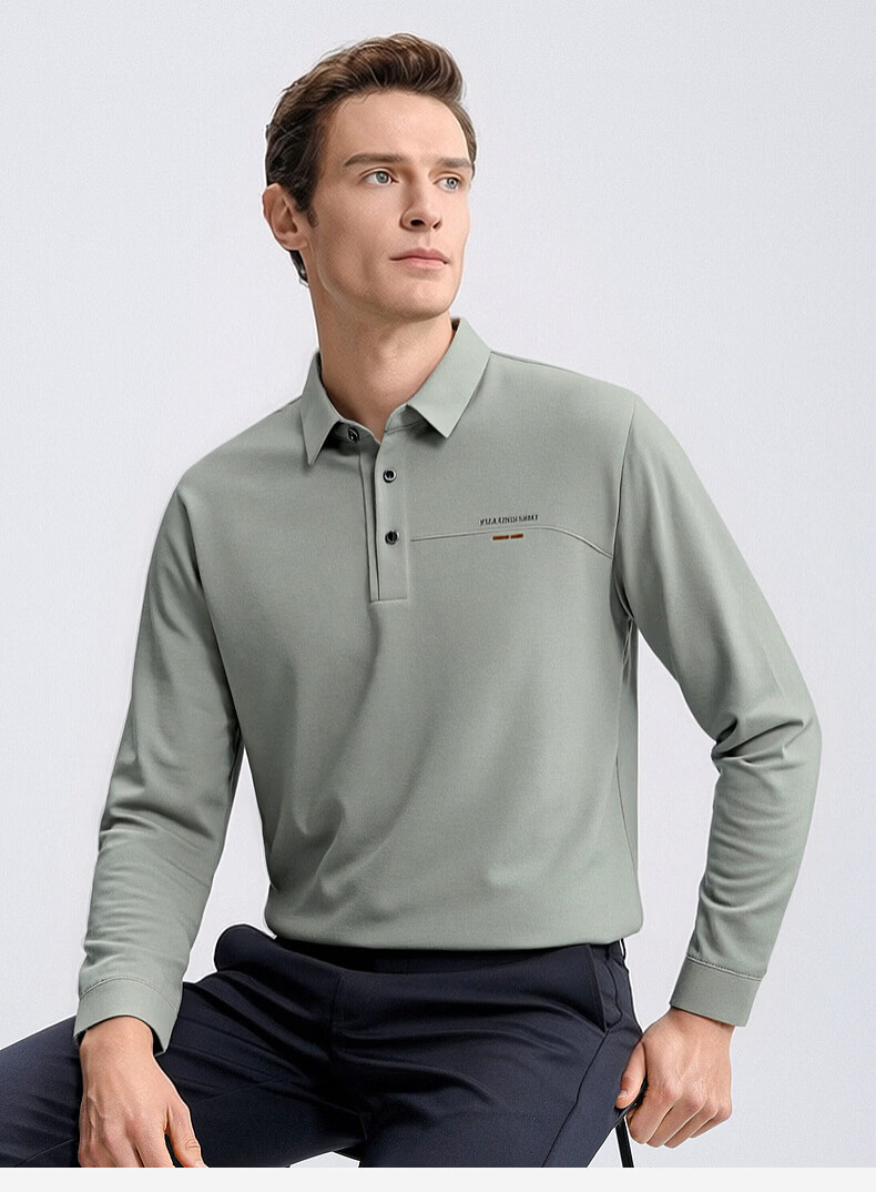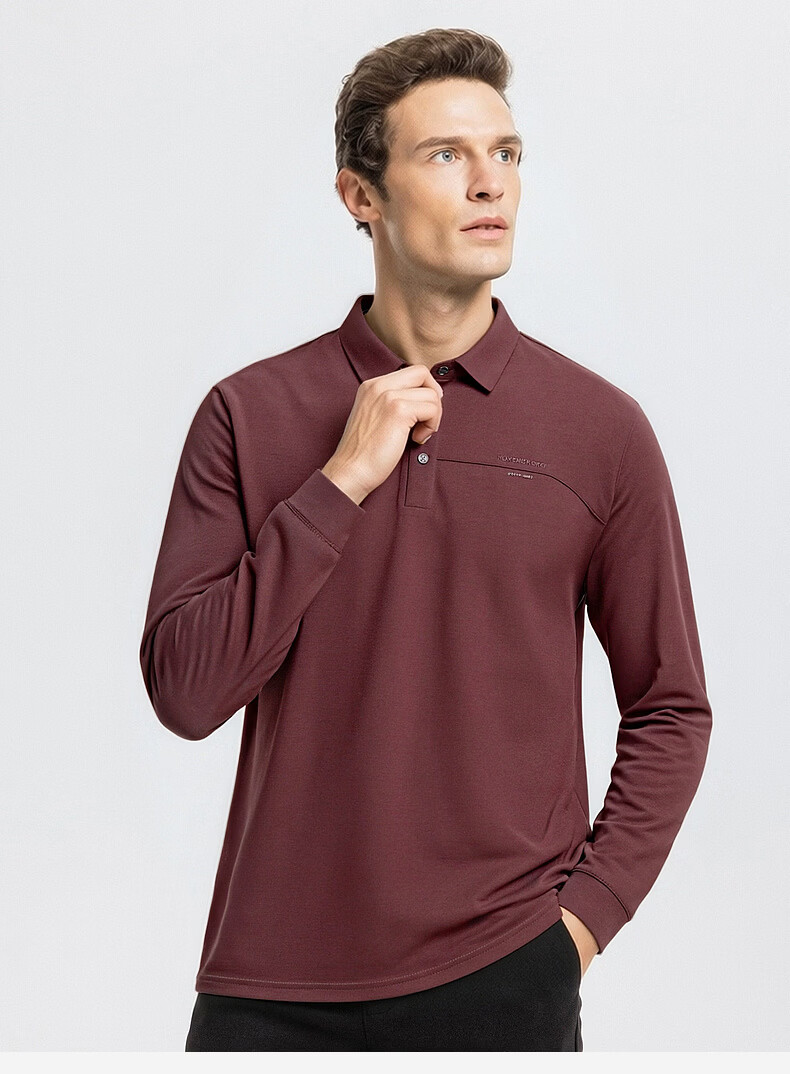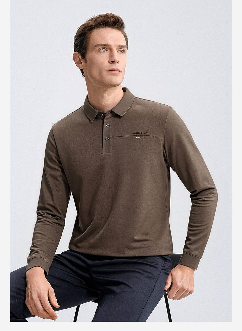 SHANSHAN杉杉【桑蚕丝锦氨弹力】长袖t恤男翻领POLO衫商务休闲易打理春秋 米白色 L /175