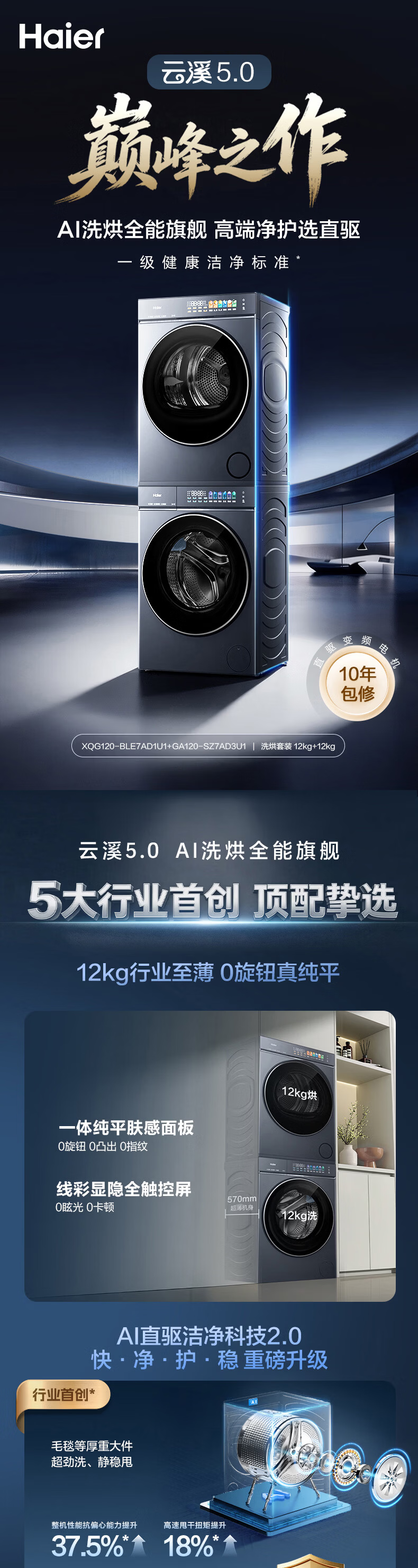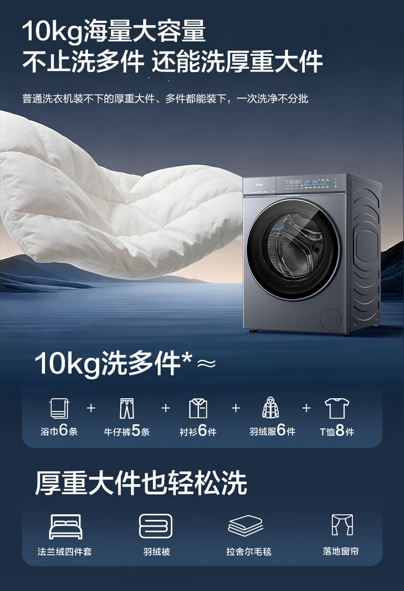 海尔(Haier)云溪5.0滚筒洗烘套装10/12KG全自动滚筒洗衣机+双擎热泵烘干机A直驱双效除菌家电换新补贴15% 【重磅新品】云溪5.0 10KG洗烘套装