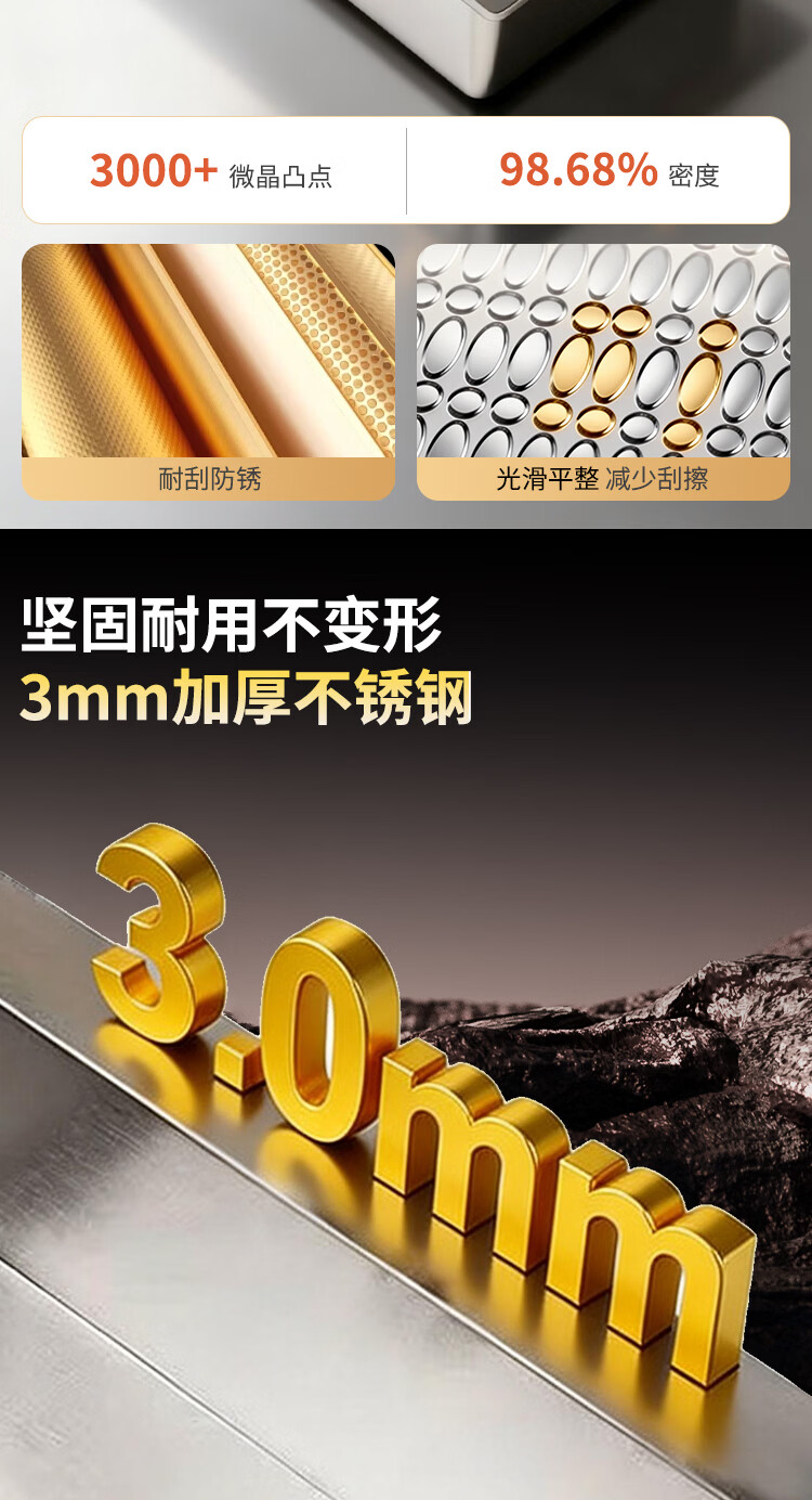 日丰厨神火山压纹纳米水槽大单槽洗菜盆厨房水槽家用加厚304不锈钢 「双重加厚|弹跳过滤」70x46|亮银冰柱水|送304盆中盆