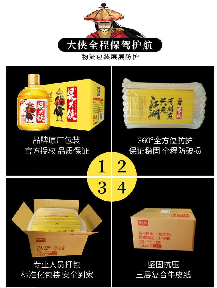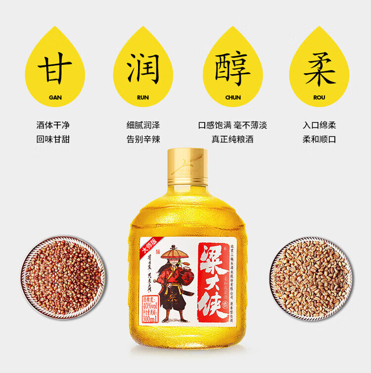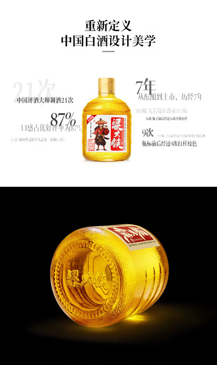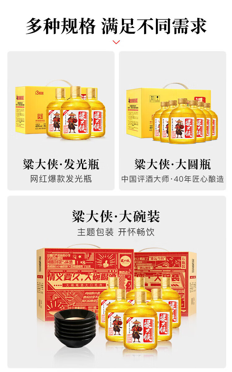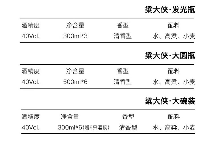 粱大侠发光瓶纯粮酒 梁大侠白酒 40度 300mL 3瓶 粱大侠发光瓶