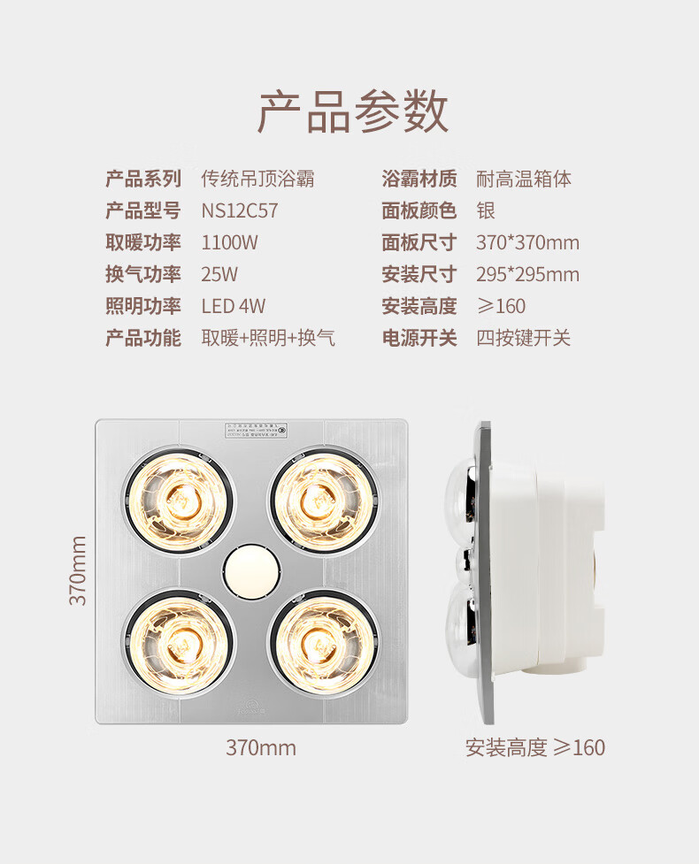 飞雕(FEIDIAO)灯暖浴霸取暖LED照明换气NS12C57普通吊顶