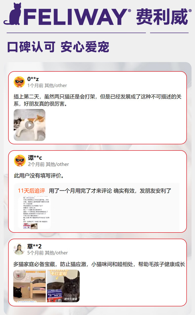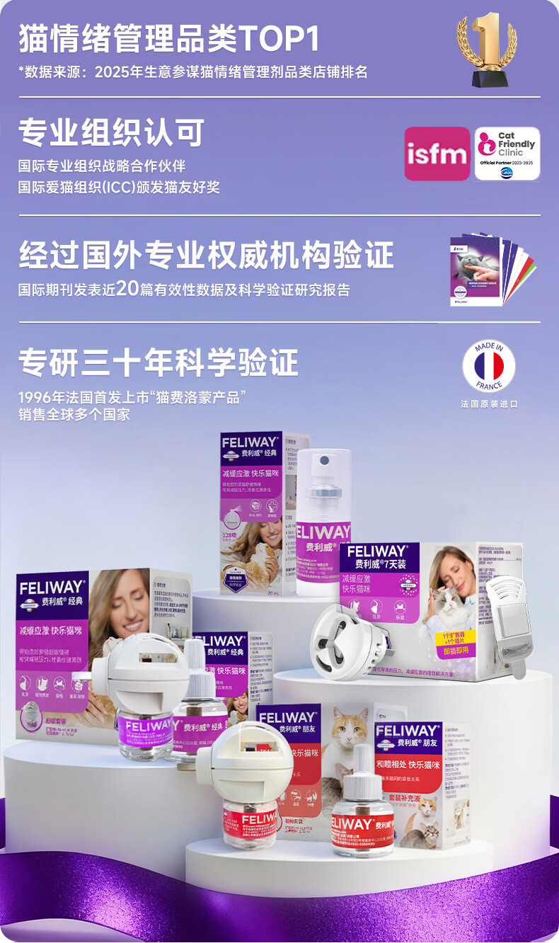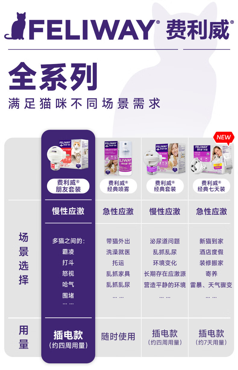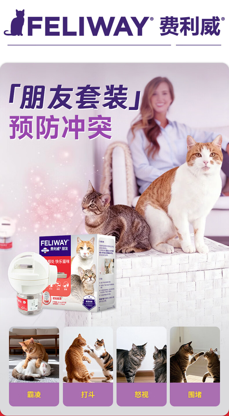 费利威朋友套装费洛蒙猫咪信息素 插电扩散器+补充液防应激打架法国进口