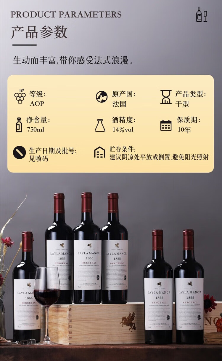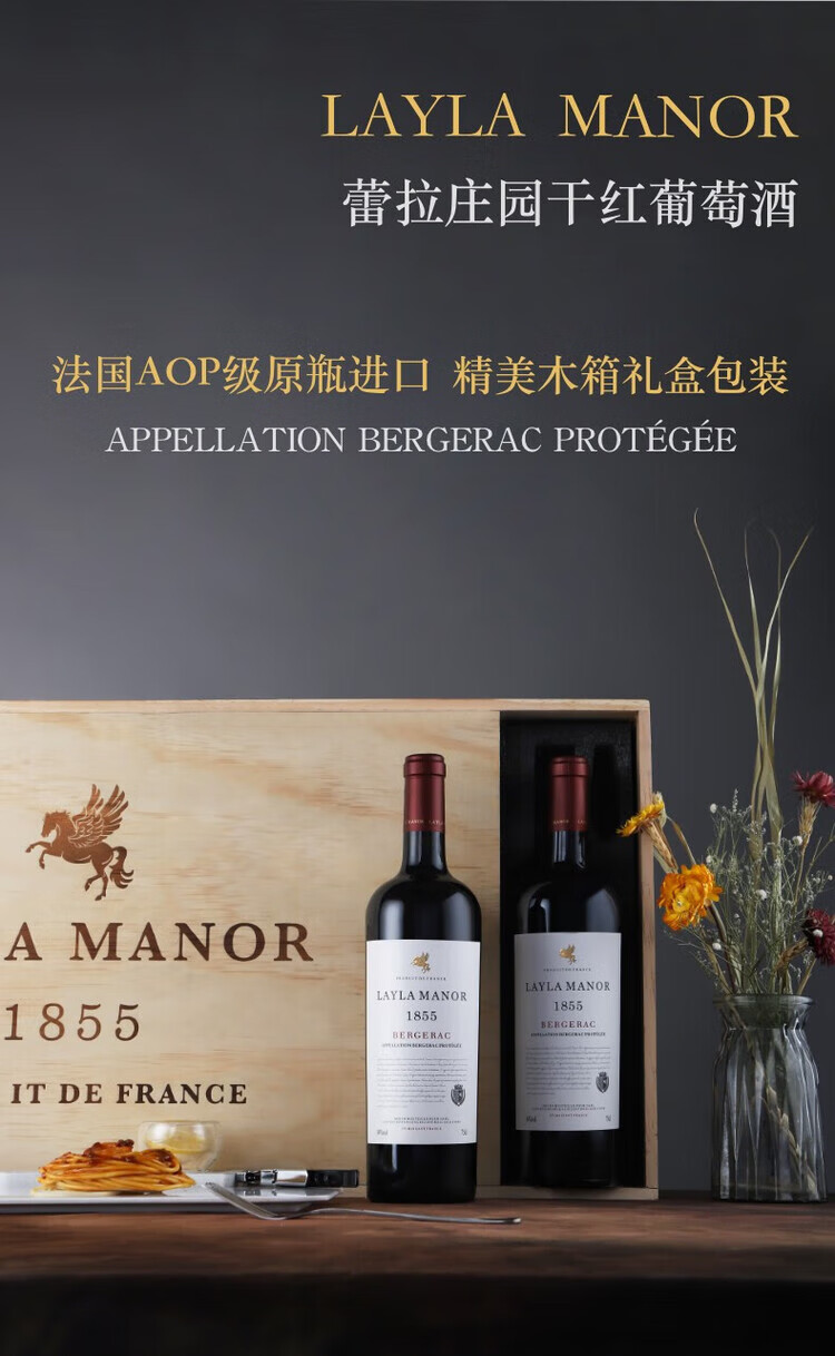 LAYLA【法国蕾拉】进口AOP级14度干红葡萄酒木箱礼盒装750mlX6支