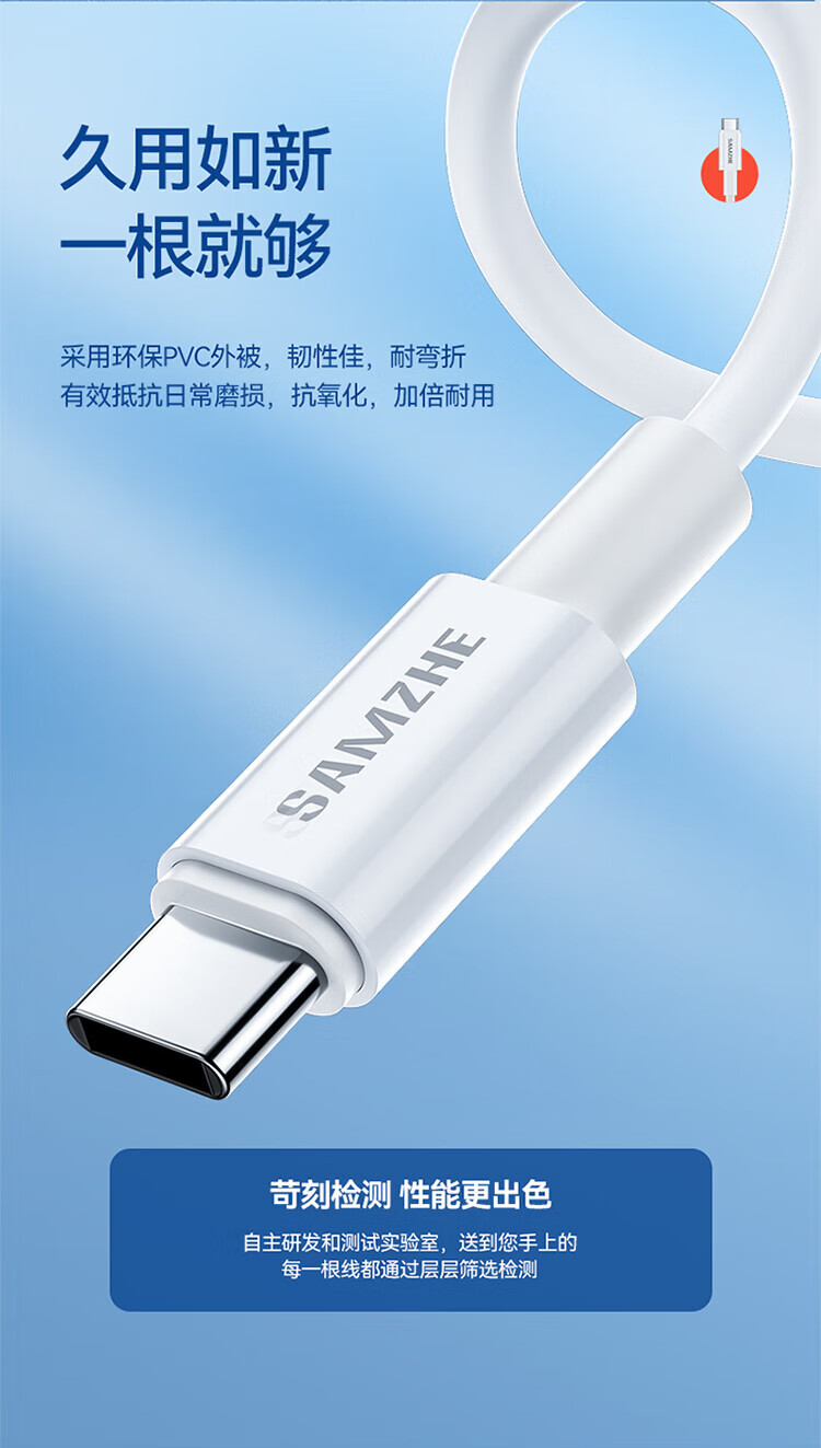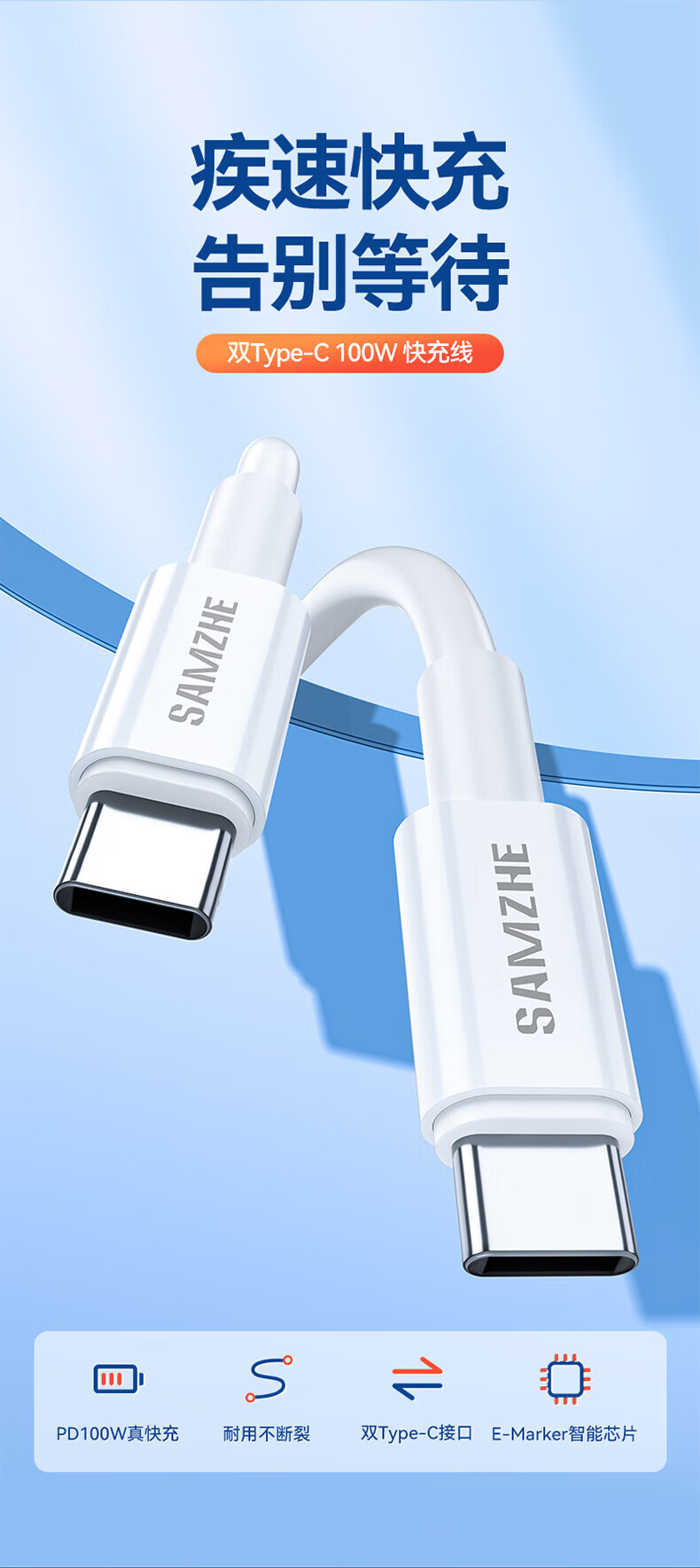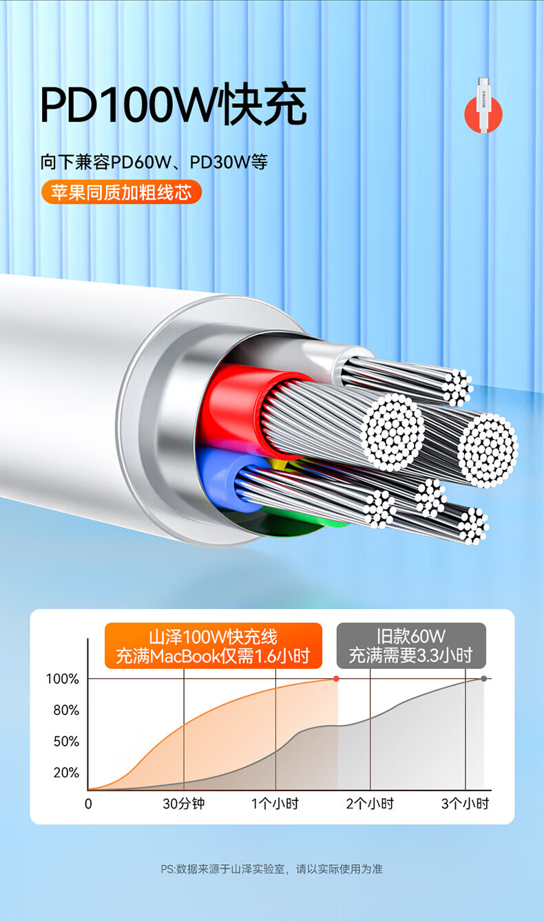山泽USB4 Type-C超级pd快充线 PD100W数据线充电线编织双头 适用华为安卓 iPad笔记本车载线 4.0雷电4 【100W超级快充】USB-C线 1米