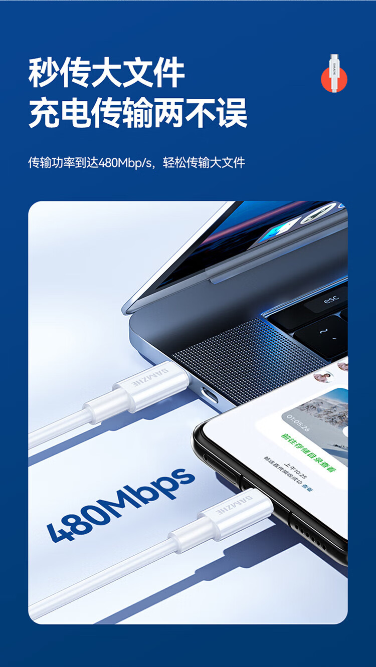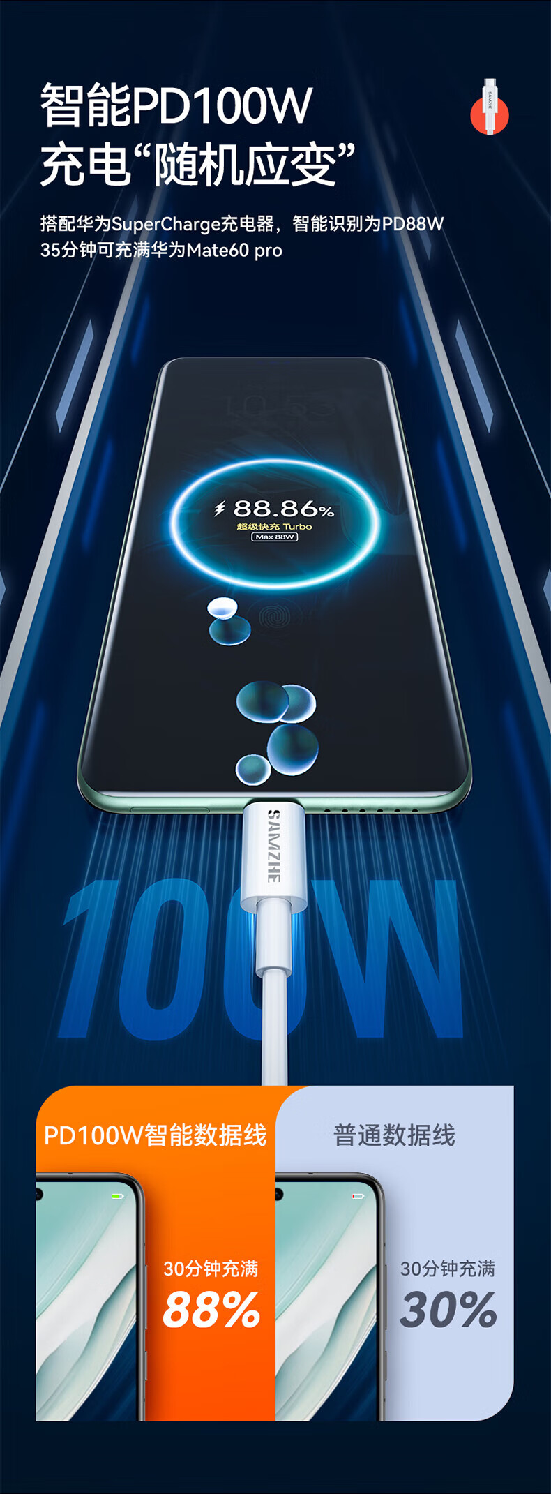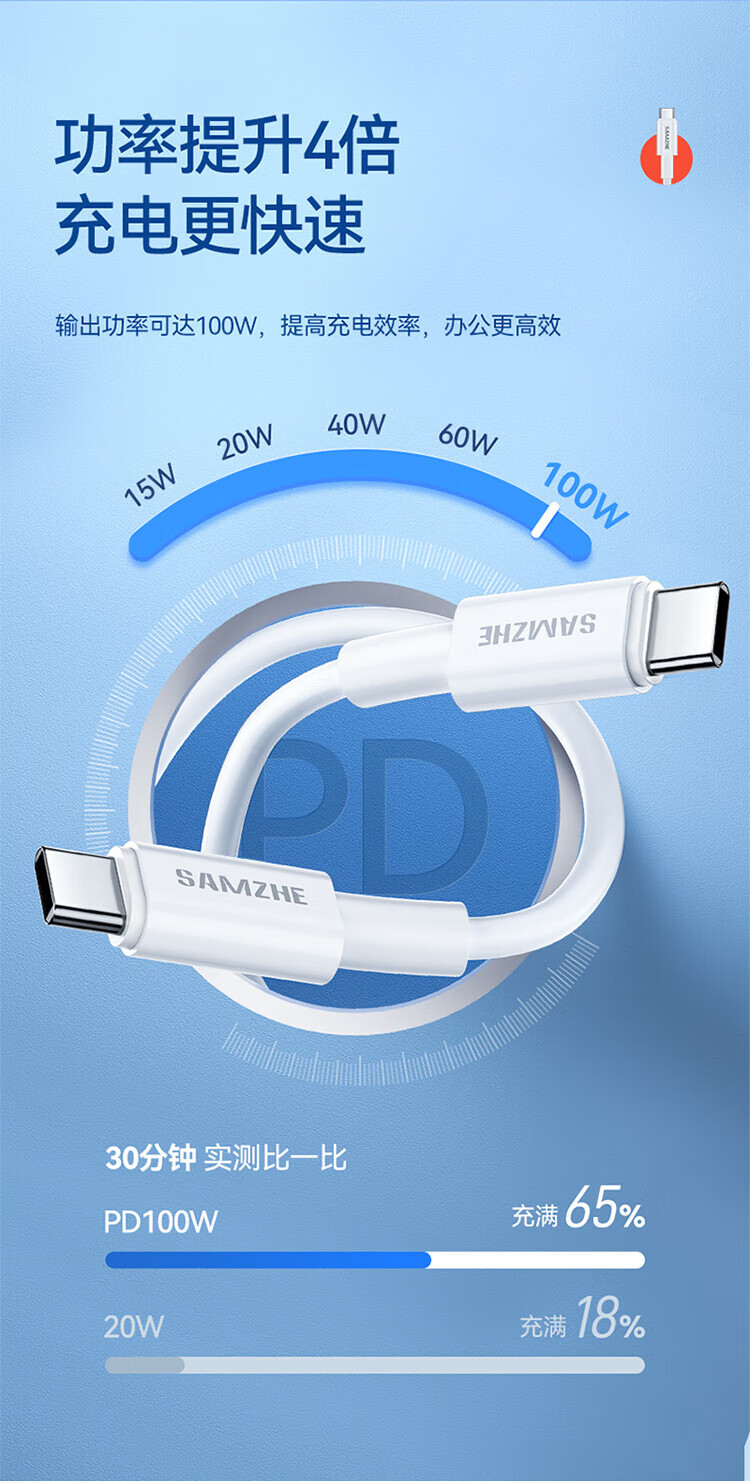 山泽USB4 Type-C超级pd快充线 PD100W数据线充电线编织双头 适用华为安卓 iPad笔记本车载线 4.0雷电4 【100W超级快充】USB-C线 1米