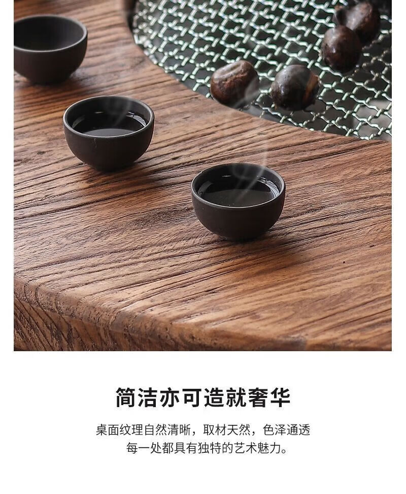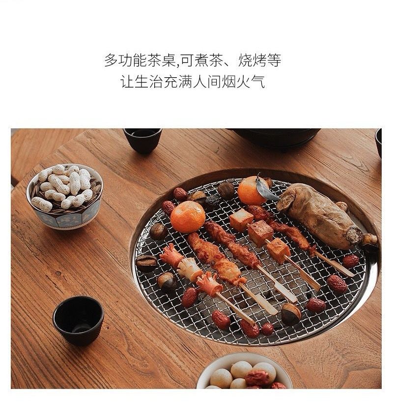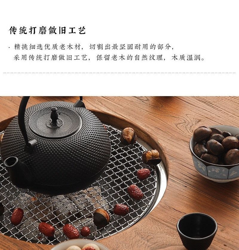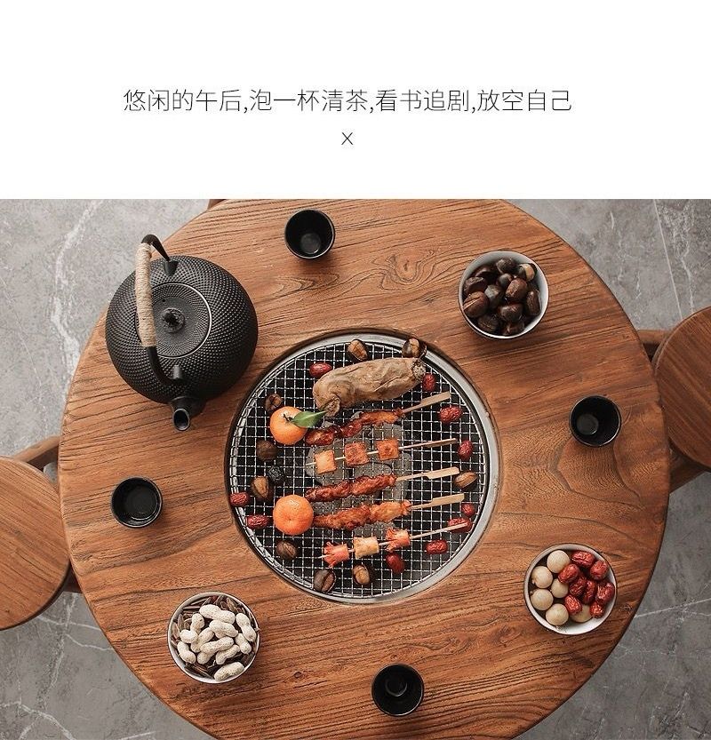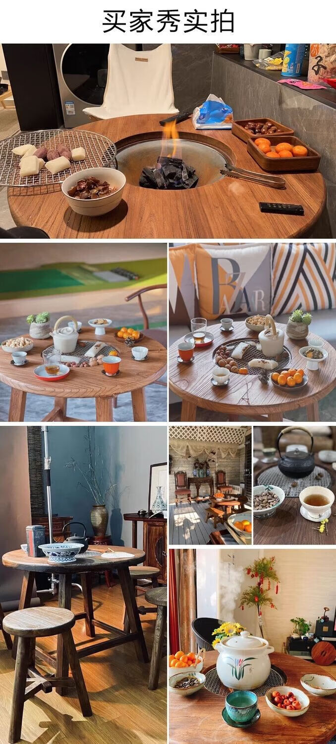 怀赛老榆木高档围炉煮茶冰茶全套桌子阳台庭院圆形实木茶桌烧烤火锅桌 [平台臻选]旗舰款-电陶炉+黄铜 直径80高50[榫卯结构-现货秒发