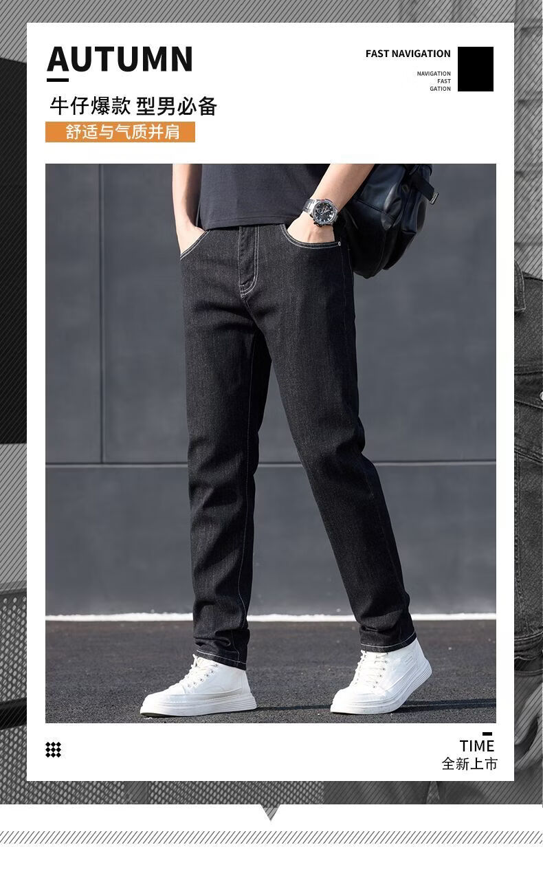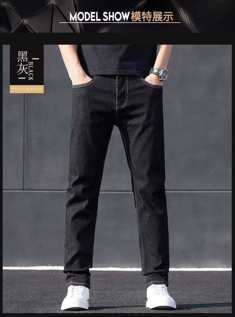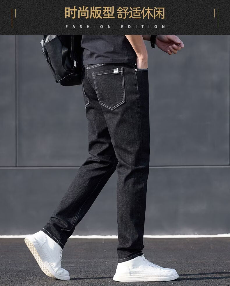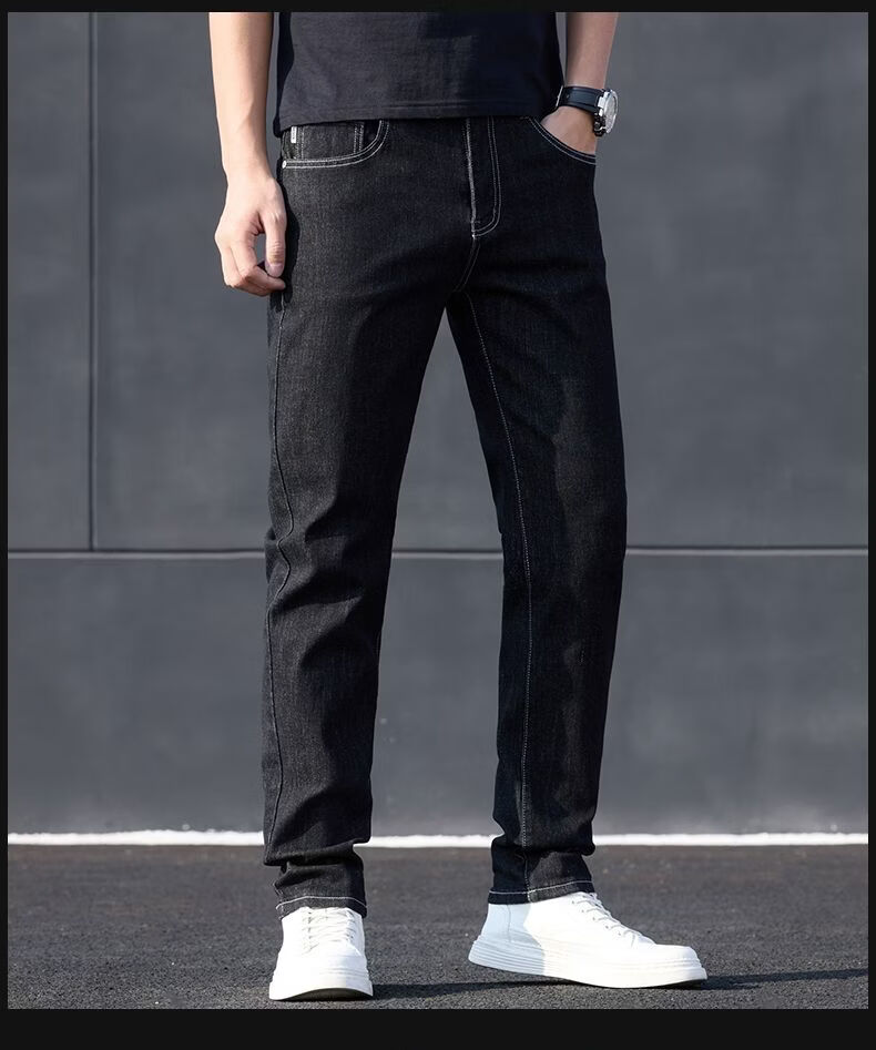真维斯(Jeanswest)2026新款牛仔裤男士宽松弹力长裤修身直筒男裤休闲百搭裤子 黑灰色. 28