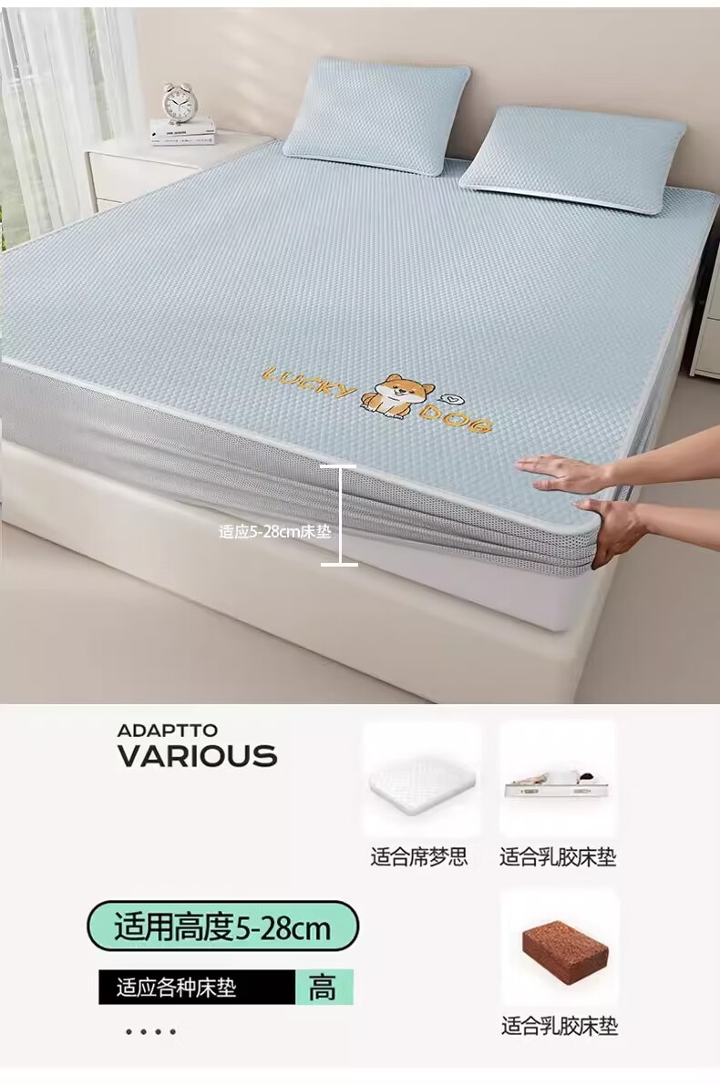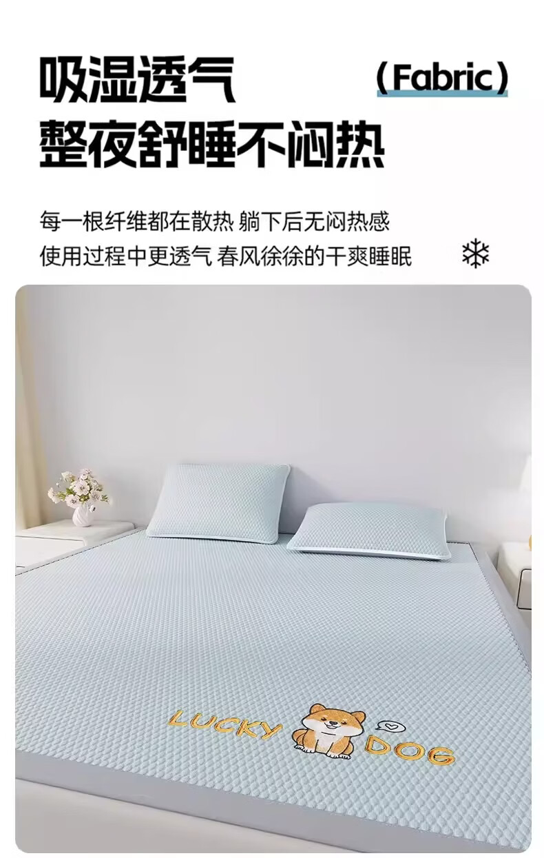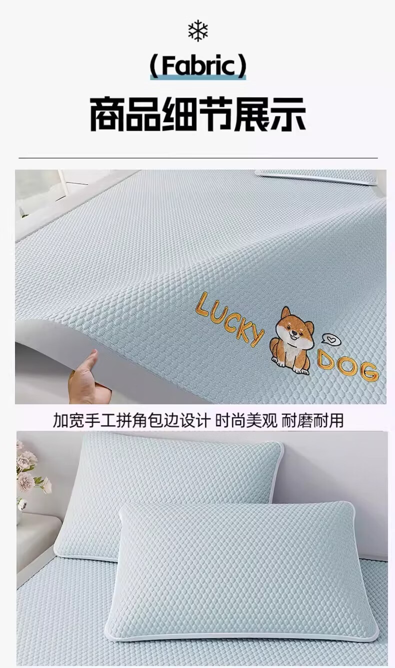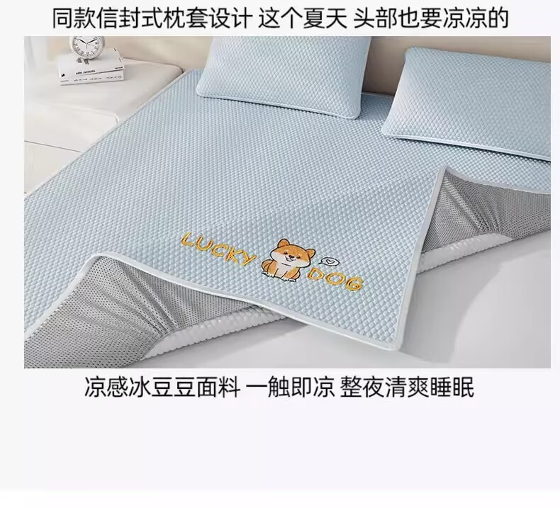 猫人(MiiOW)A类凉感冰豆豆凉席1.5米x2米冰丝席子夏天专用床单母婴儿夏凉席子 床笠款-幸运小狗粉【A类凉感豆豆】 三件套-180x200cm凉席+枕套*2只