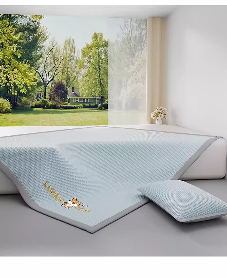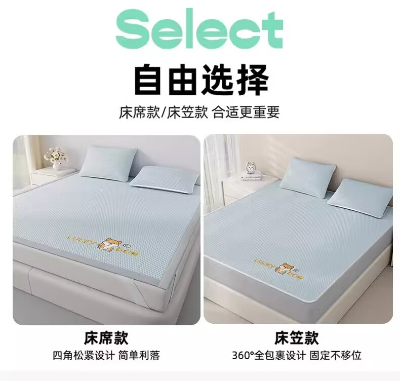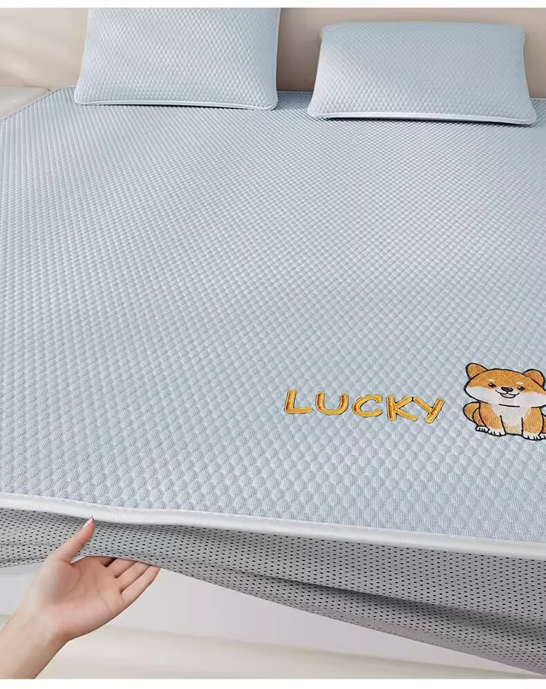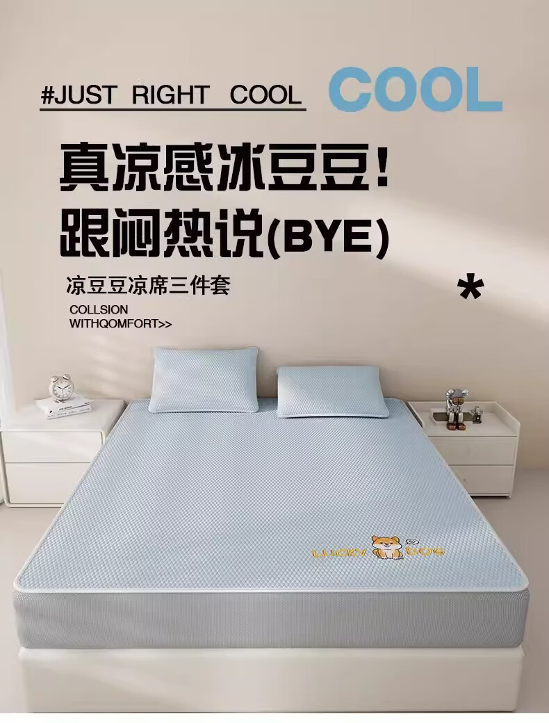 猫人(MiiOW)A类凉感冰豆豆凉席1.5米x2米冰丝席子夏天专用床单母婴儿夏凉席子 床笠款-幸运小狗粉【A类凉感豆豆】 三件套-180x200cm凉席+枕套*2只