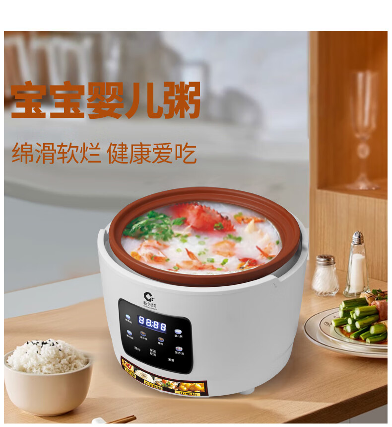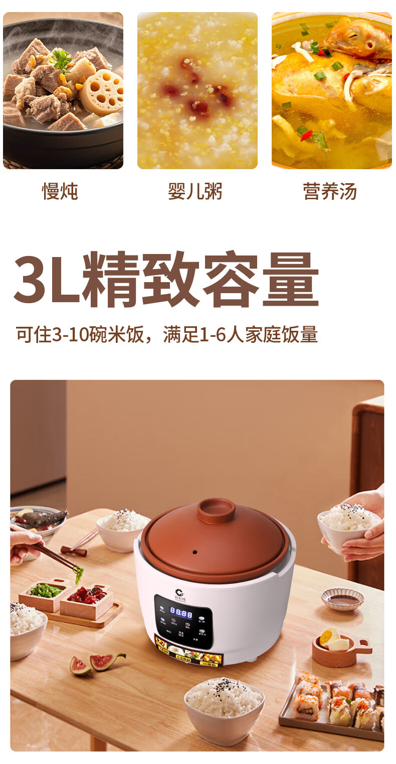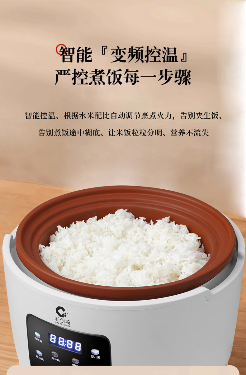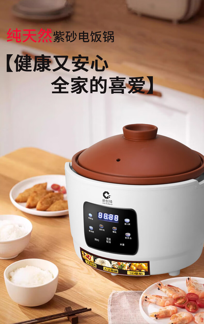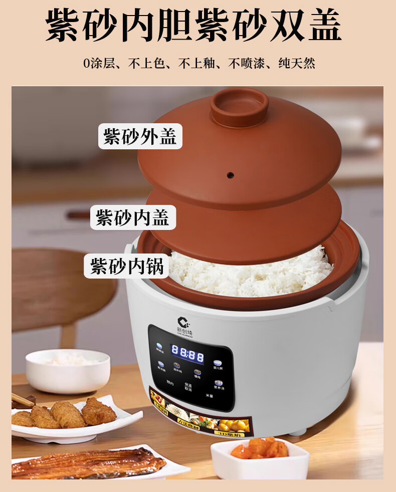 新创埼天然紫砂锅电饭煲多功能3L智能煮饭家用煮粥煲汤煲仔饭无涂层内胆3升电饭锅预约定时 白色彩屏 3L 天然紫砂单套内胆