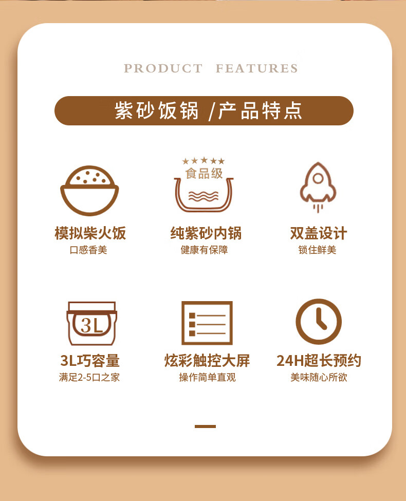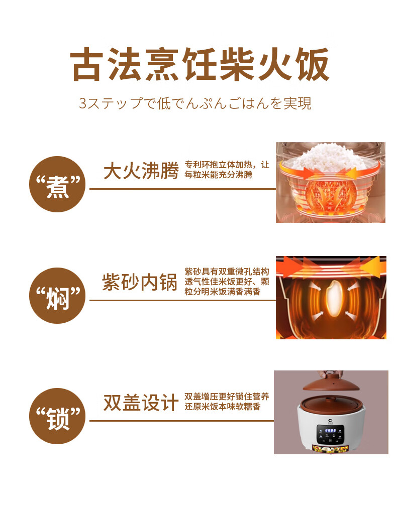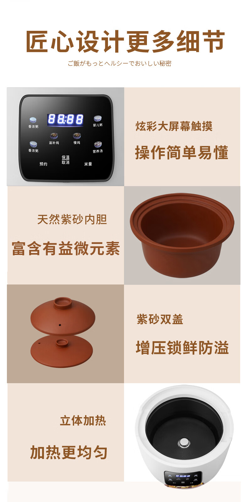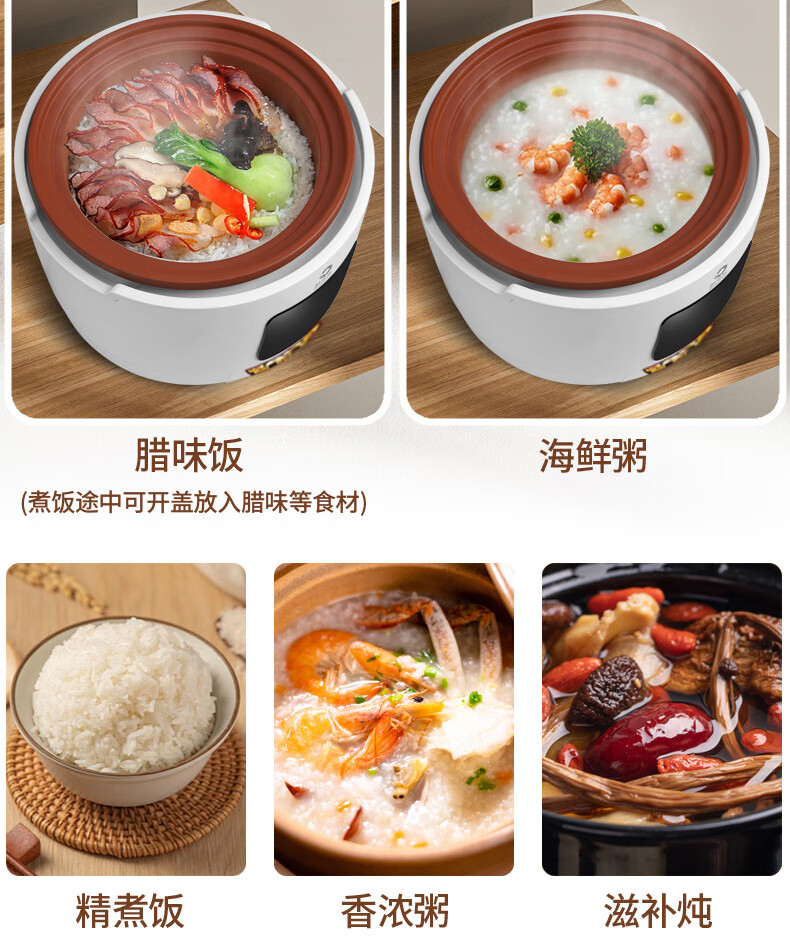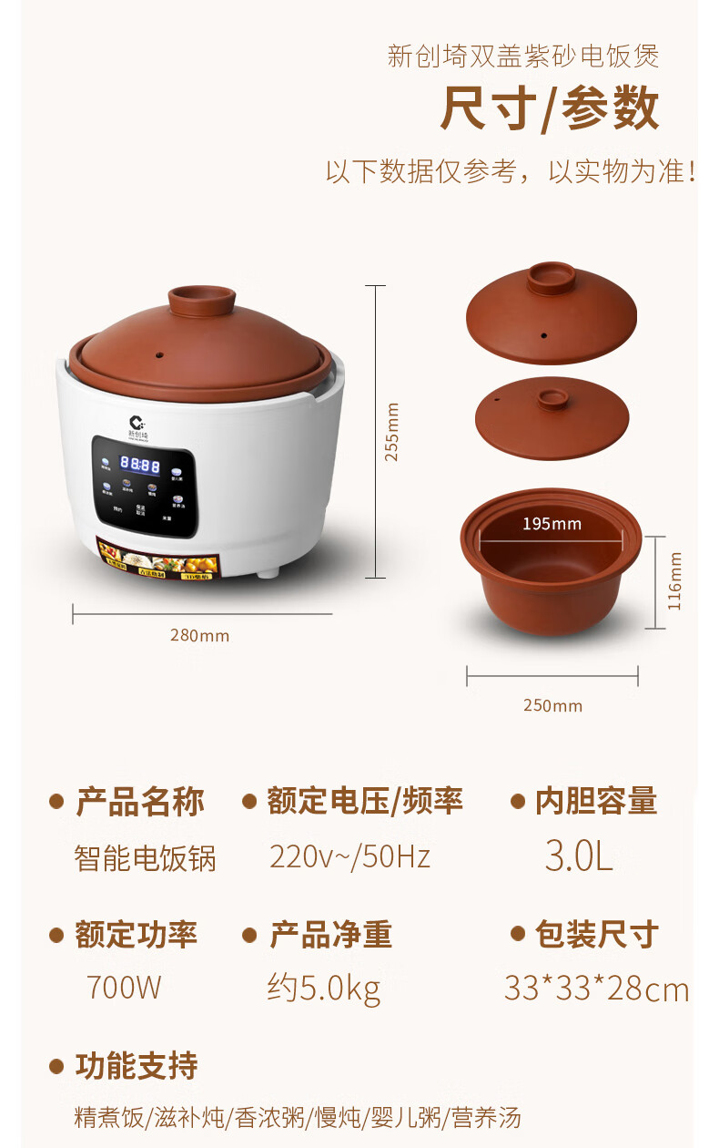 新创埼天然紫砂锅电饭煲多功能3L智能煮饭家用煮粥煲汤煲仔饭无涂层内胆3升电饭锅预约定时 白色彩屏 3L 天然紫砂单套内胆