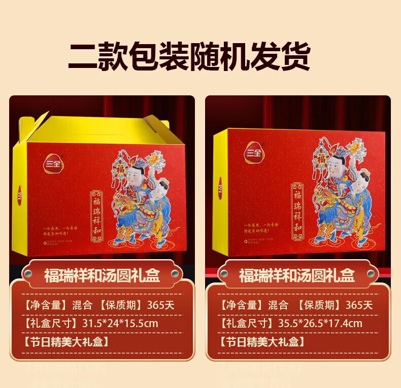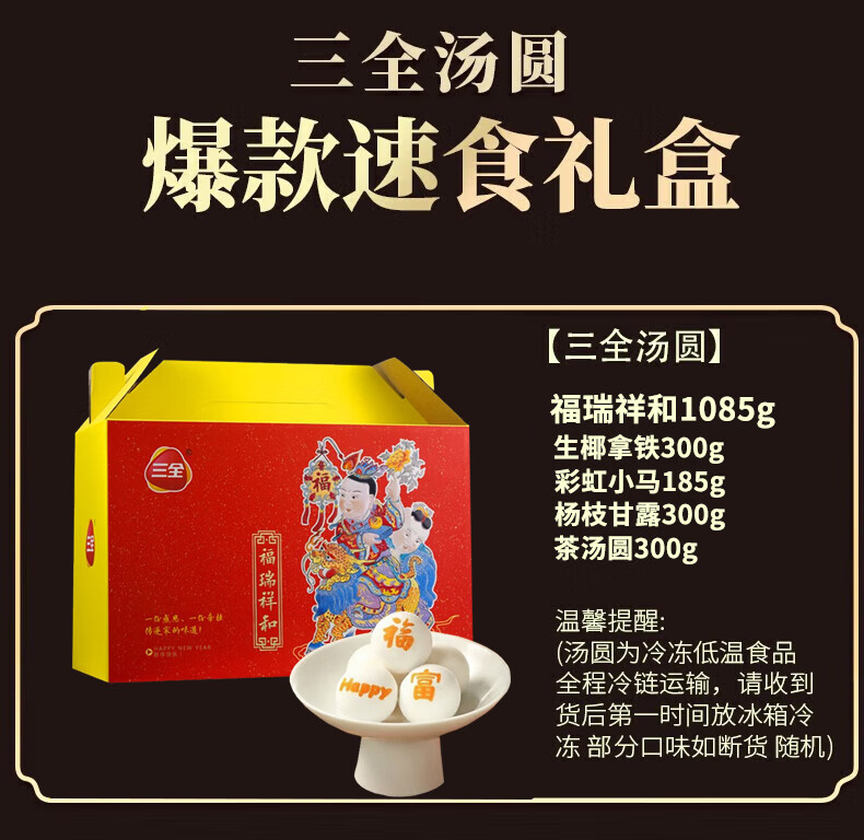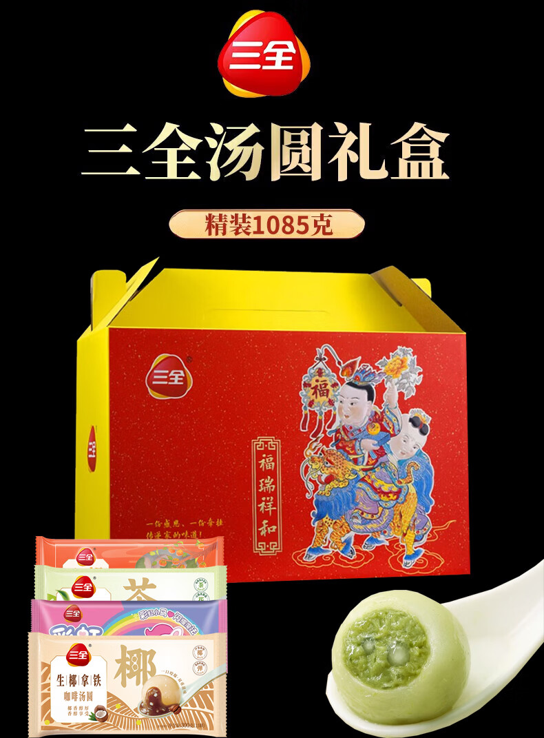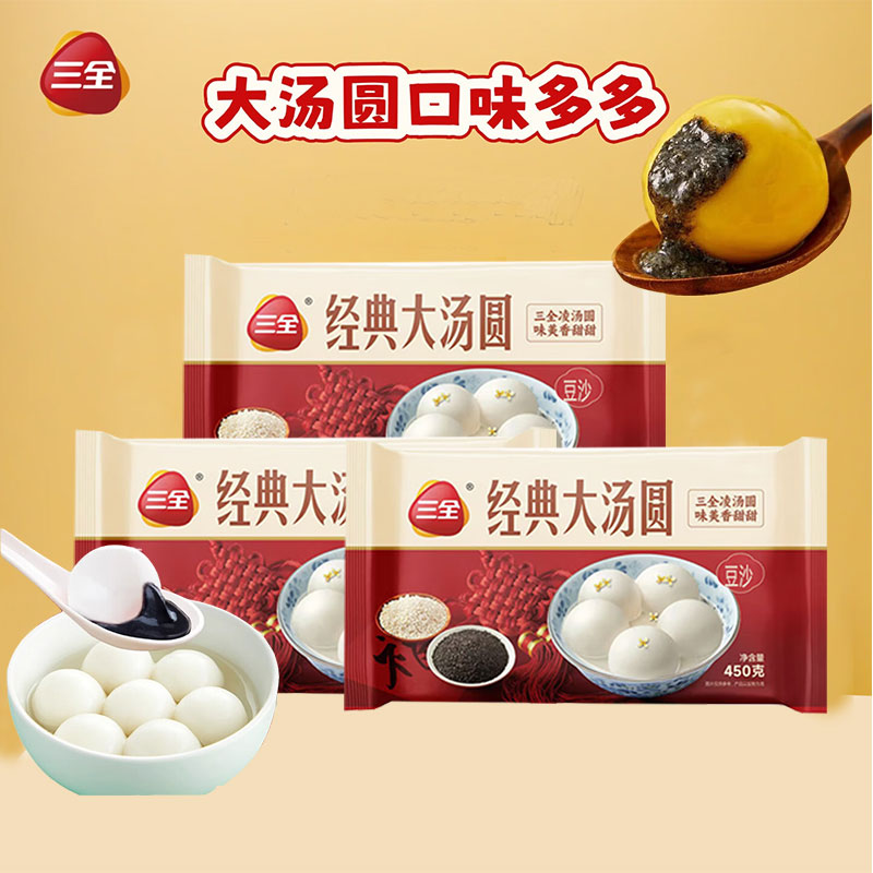 三全汤圆元宵节大黄米黑芝麻豆沙花生果仁多种口味汤圆礼盒 大黄米花生汤圆450g